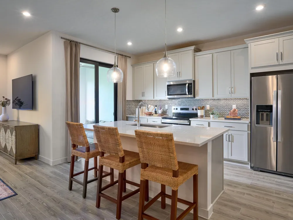 The Ashton is a one-of-a-kind, 1,674 sq. ft. floorplan that is versatile and perfect for everyday living. This townhome will only be found on the interior block of homes, with a porch in front and private covered lanai in the rear. A large kitchen on the side of the home lends itself to a desirable amount of cooking and counter space in addition to cabinetry lining the walls. You'll find in the Ashton the three double windows which make most of our plans at Forest special, enjoying the bright airy feeling that comes in with the natural light. Upstairs, find a good separation of space with an owner's suite and bath in the rear and secondary beds and bath in the front separated by a cozy loft and laundry.