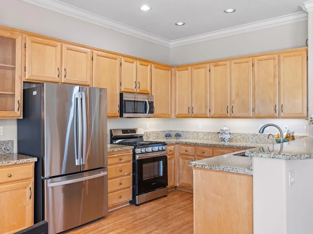 - Dishwasher, Disposal, Free-Standing Gas Range, Free-Standing Refrigerator, Gas Water Heater, Microwave, Self Cleaning Oven