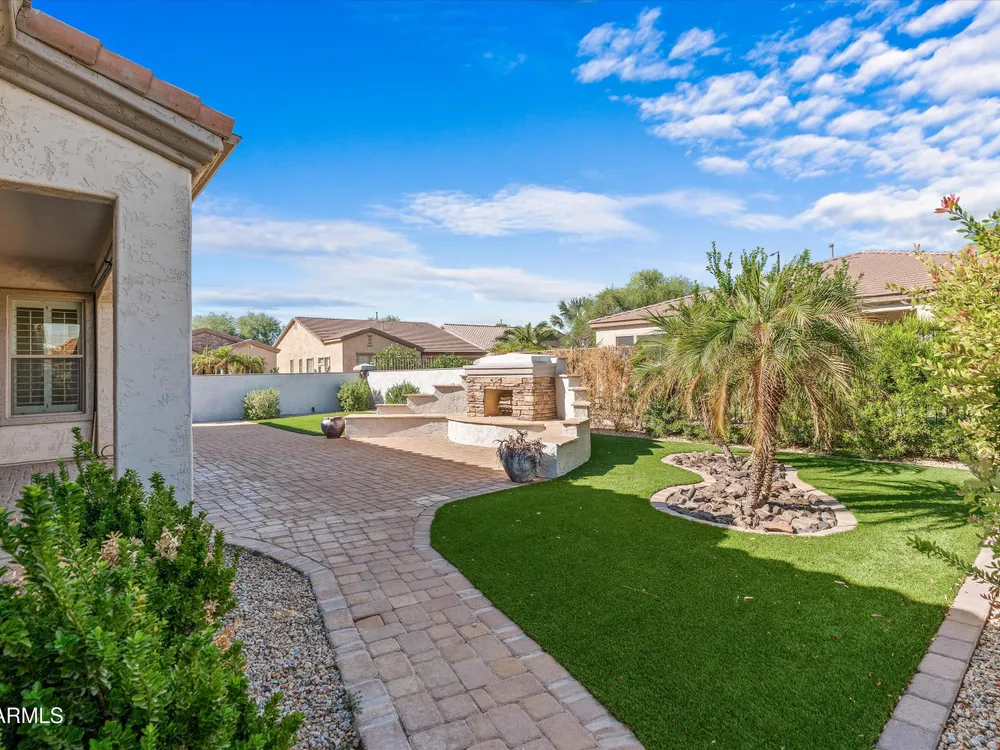 Come see this beautiful home in the 55+ Trilogy at Power Ranch community. Highly sought after Hermosa model with 2405asf, 2 bdrms, den, 2 1/2 baths + 3 car garage situated on a large corner lot! This spacious home features a large great room with gas fpl, dining room, wall of windows with a backyard view. Chef's kitchen with granite counters, island with bar seating, stainless appliances and dining nook. Primary suite features a large walk in closet, 5-piece bathroom incl soaking tub and make up vanity. The beautiful backyard has a nice covered patio for morning coffee and afternoon relaxation. Enjoy magical evenings gazing at the outdoor fireplace. Wonderful amenities, pools, spa, pickleball, tennis, golf, bocce ball, clubs, restaurant, fitness center too. Close to shopping & dining.