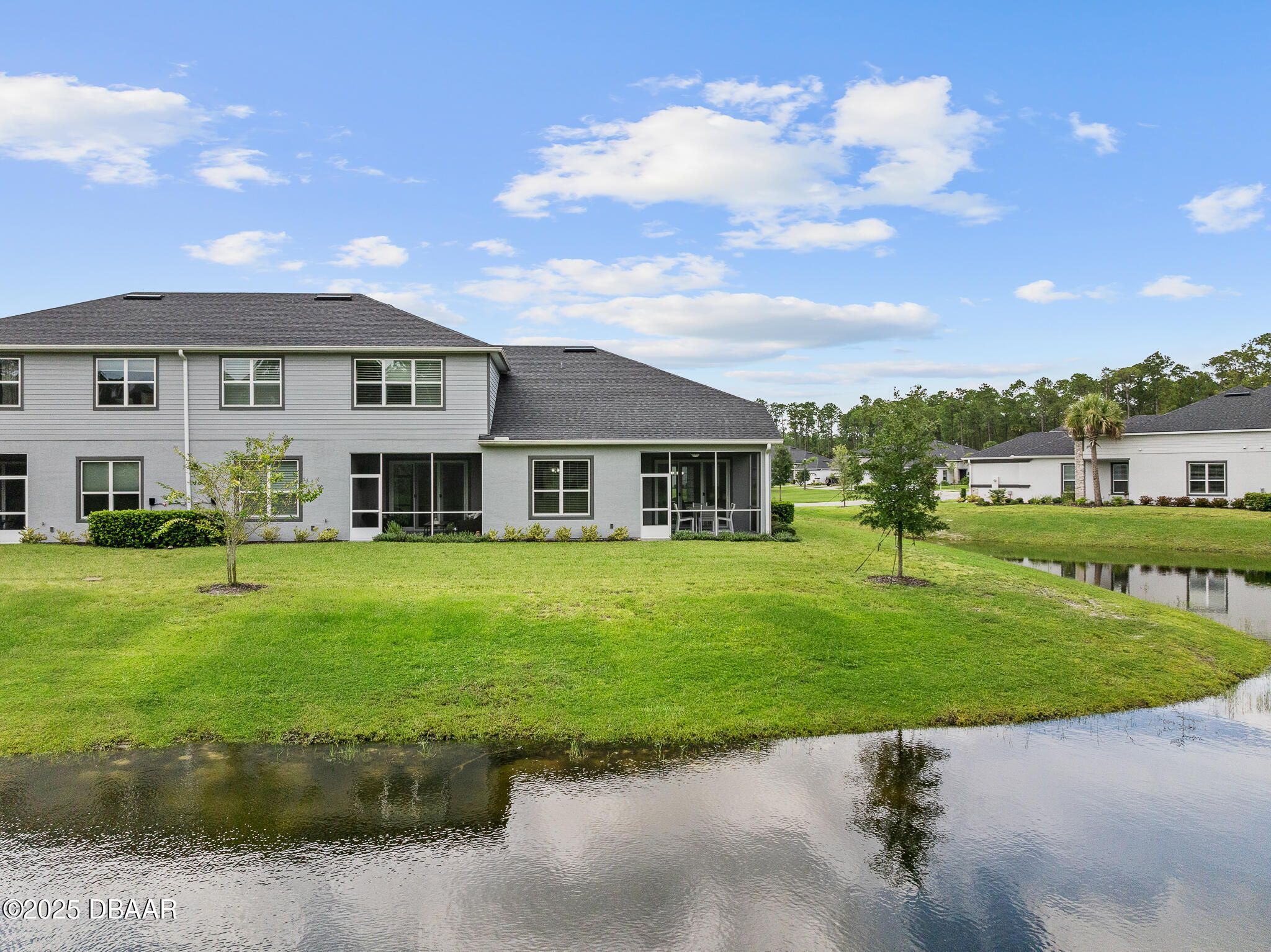 Welcome to your MAINTENANCE-FREE Townhome in the incredible GATED community of Plantation Bay! This 2022-built, IMPECCABLE home greets you with PAVERS walkway and driveway, lush landscaping, and private entry. Upon entering the home, you are welcomed with TILE floors and an OPEN floorplan. Kitchen is outfitted with 42-inch white WOOD cabinets, STAINLESS STEEL appliances, QUARTZ countertops, TILE backsplash, and large PANTRY. Head to your Dining Room finished with TILE floors, light fixture, large window for an abundance of NATURAL LIGHT, and CUSTOM SHADES. Flow into Living Room with TILE floors continued and UPGRADED triple sliders to lanai. After a long day, retreat into your Master Suite accompanied with CARPETED floors, large window with LAKE views, CUSTOM SHADES, and en-suite Master Bath with POCKET door for added privacy. Enjoy the convenience of your separate WALK-IN closets. Master Bath includes a private water closet with an additional pocket door, 2 sinks with QUARTZ vanity, and large TILE walk-in shower. Enjoy your morning coffee on your private, screened-in, covered LANAI overlooking LAKE views. On your SOUTHEAST-facing lanai, enjoy your early-morning SUNRISES! At the opposite end of the home is Bedroom 2 outfitted with CUSTOM SHADES, and CARPETED floors. Just across the hallway is Bathroom 2 featuring TILE floors, TILE shower with tub, and linen closet in hallway. Located right off the entry foyer is your private Den which could easily be utilized as a 2nd Guest Bedroom featuring a BUILT-IN Murphy bed and desk. Den/2nd Guest Bedroom is also outfitted with CUSTOM double-doors for added privacy. This Townhome also boasts a LARGE Laundry Room featuring high-end LG washer and dryer along with shelving above for added convenience and storage. From the Laundry Room, enter your FULL-SIZE 2 Car Garage. This home is complete with a TRANSFERRABLE BUILDER'S WARRANTY! All maintenance-free in GATED, golf cart friendly community of Plantation Bay. Optional country club memberships available ranging from 45 holes of golf, brand new 30-million-dollar Founders Clubhouse, 9 tennis courts, 10 pickleball courts, resort style & lap pools, fitness/spa center, additional Prestwick Clubhouse, activities calendar, plus so much more. Buyers of this home to receive a SUBSTANTIAL discount on initiation fee at the club. Ask listing agent for details. This maintenance-free home is in absolutely INCREDIBLE condition with high-end finishes, tasteful UPGRADES, and in a very QUIET location. Come see it for yourself TODAY!