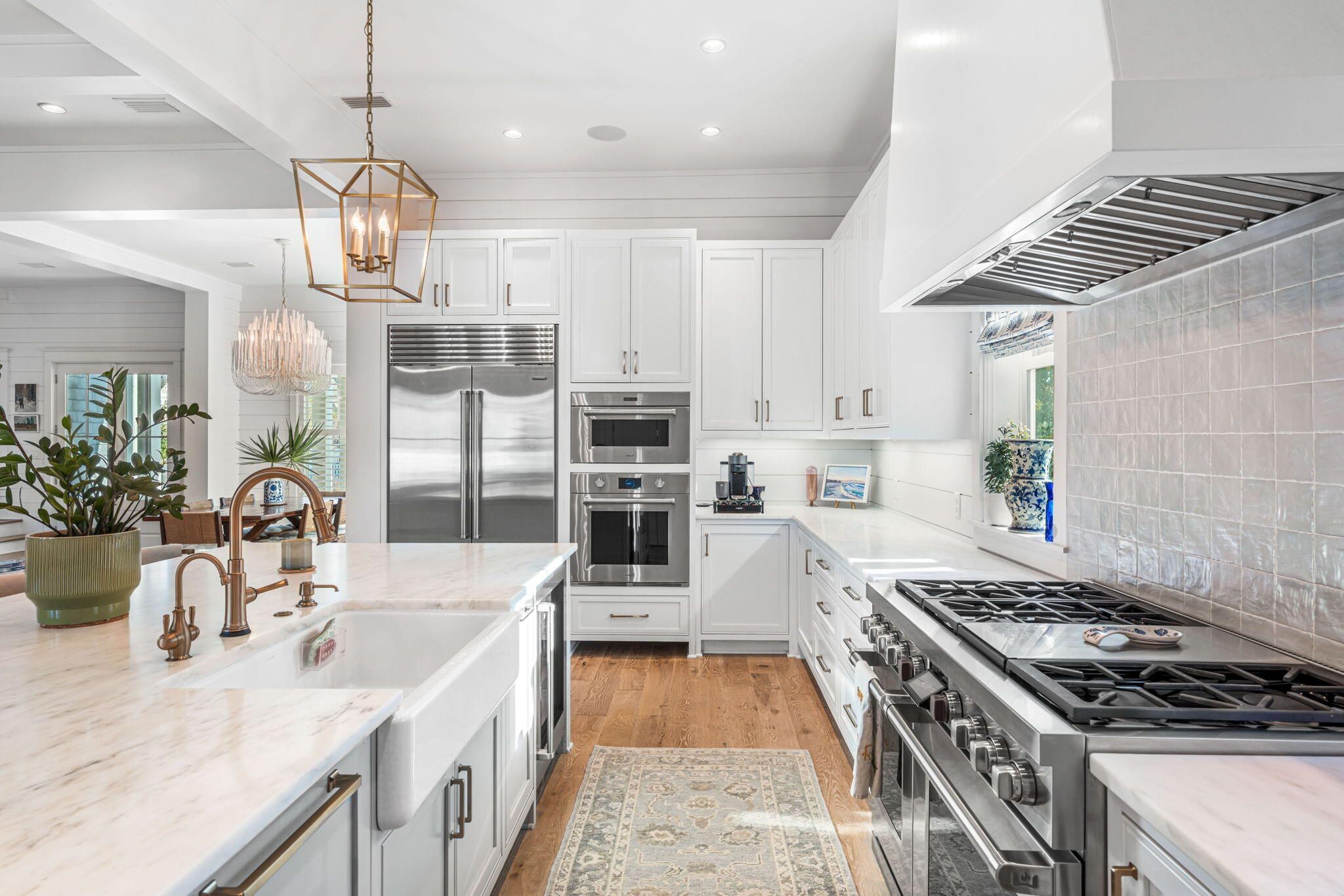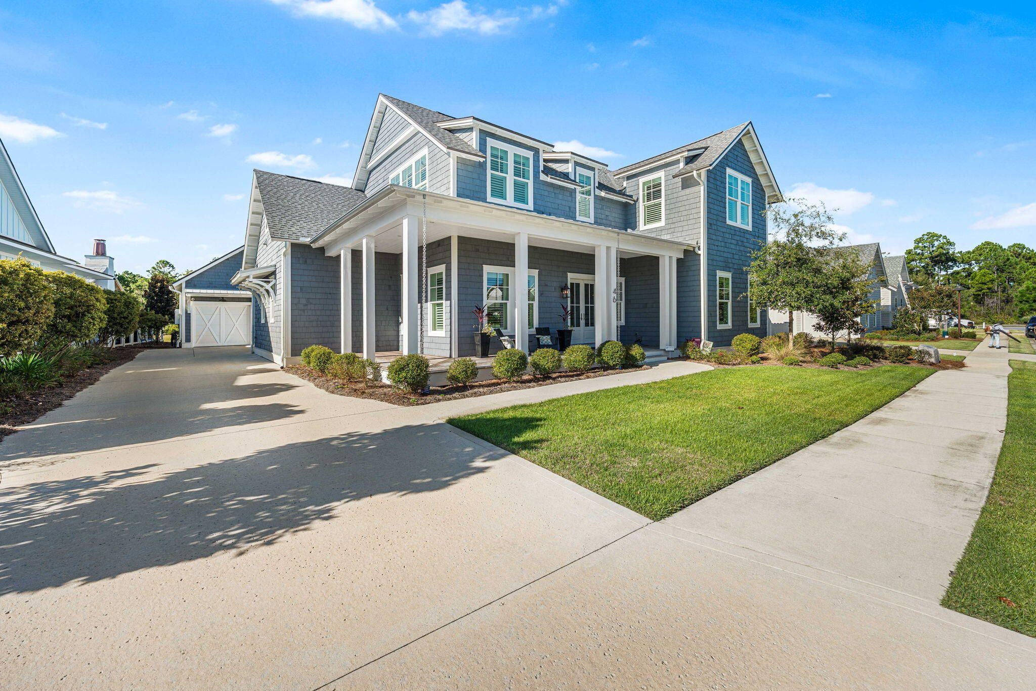 This lovely coastal residence combines effortless charm with sophisticated design in the highly sought-after Watersound Origins community. Crafted by Dune Construction this exceptional home sits on a premium lot in the prestigious Stillwater neighborhood, offering both privacy and elegance and was designed for flexible, luxurious living. The open-concept main level welcomes you with lofty 11-foot ceilings, wood beams, hardwood floors, and shiplap accents. A wall of windows creates a bright, inviting space in natural light, while the gas fireplace anchors the space in warmth and style. The gourmet kitchen is a chef's dream, featuring Wolf and Sub-Zero appliances, marble countertops, custom cabinetry, and a large center island for casual dining. Flowing seamlessly into the dining and