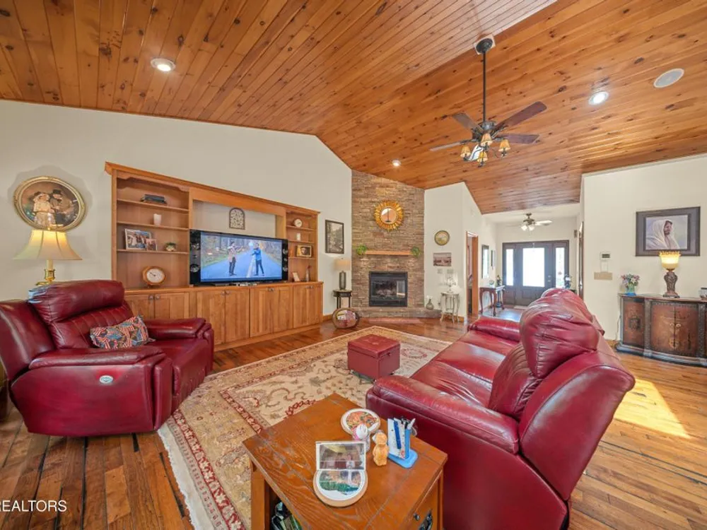 ''Welcome Home'' This 2093 sq ft split floor plan home is nestled along Fairfield Glade Resort's The Brae #1 hole, golf course. It is the perfect blend of comfort and style. As you enter, you are greeted to a spacious open-concept living, dining, and kitchen area showcased with a floor to ceiling stone fireplace, featuring a tongue and groove pine vaulted ceiling. The unique hardwood flooring flows seamlessly through the home. The sunroom invites you in with its large windows overlooking the golf course. Step outside onto the composite decking, ideal for entertaining or simply to soak up the view of Hole #1 of The Brae featuring its own large pond with a fountain in the middle. The custom designed layout boasts a spacious 1090 sq ft 3 car garage, providing room for just about anything. ''Come On Home'' Buyers to verify information before making an informed offer.