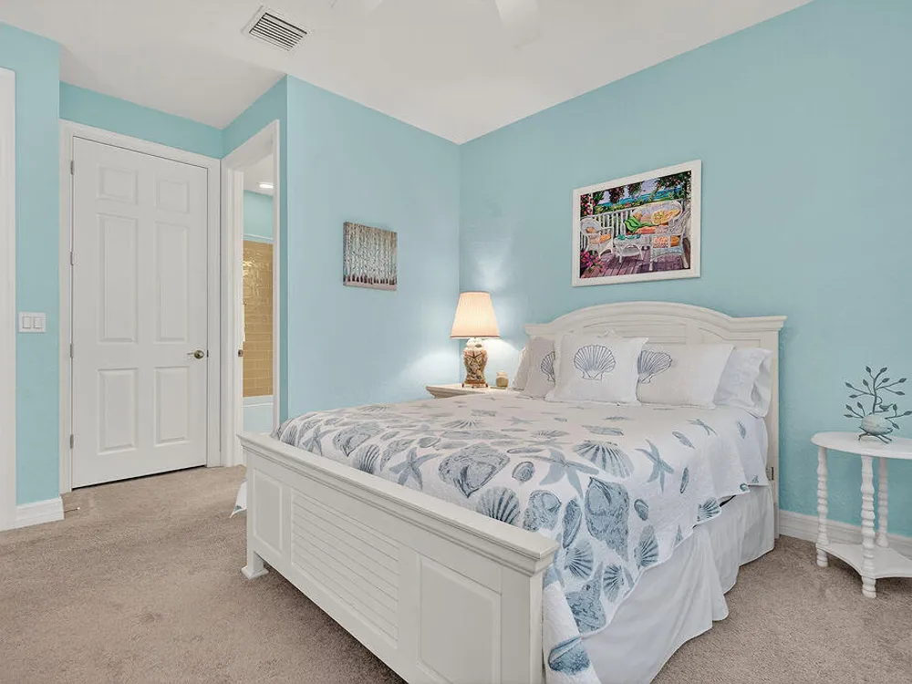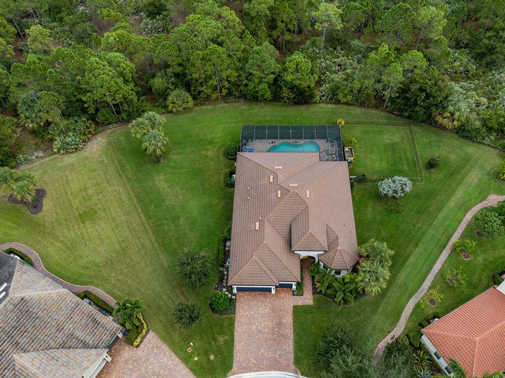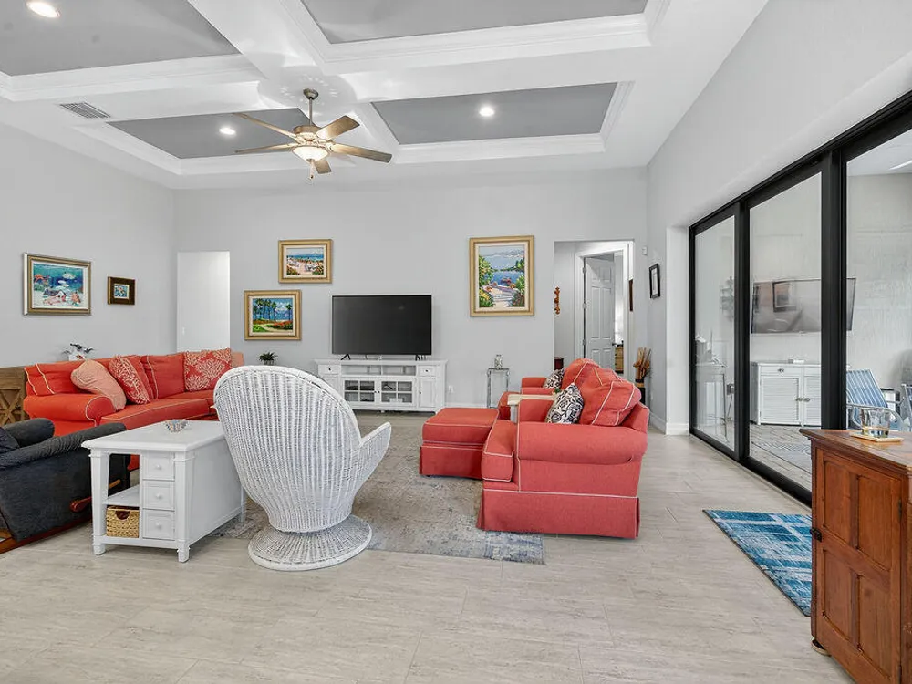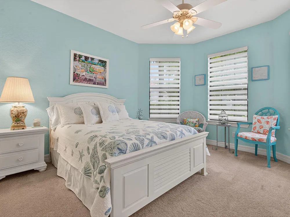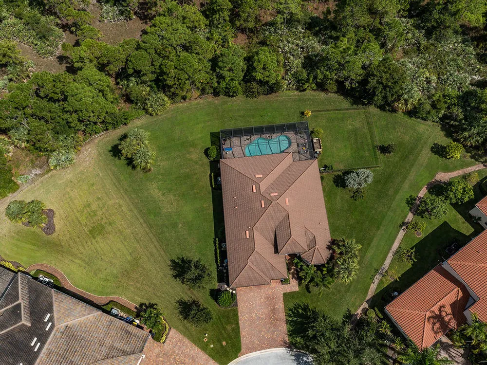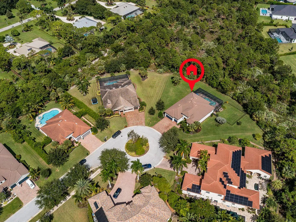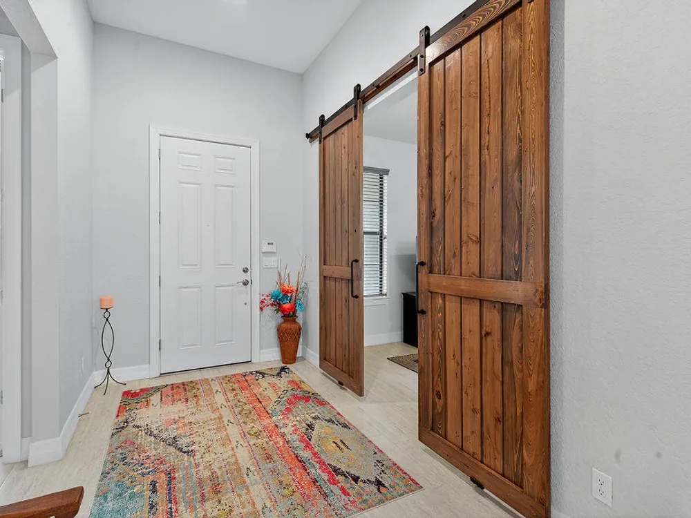 Welcome to Copperleaf - One of Palm City's Most Sought-After Communities!This beautifully maintained coastal themed Pulte Pinnacle model offers the perfect blend of luxury, comfort, and functionality--all on one spacious level. Nestled on a pie-shaped oversized lot, this 3-bedroom, 3-bath home (including 2 ensuite baths) features a split floorplan with a dedicated home office adorned with custom barn doors, ideal for work or quiet retreat.The heart of the home is the open-concept, upgraded kitchen, boasting taller cabinets, an expanded center island, and ample space for entertaining. Impact windows throughout offer peace of mind, while allowing natural light to pour in.Step outside to your private, screened pool area with crosswind heat pump. The serene