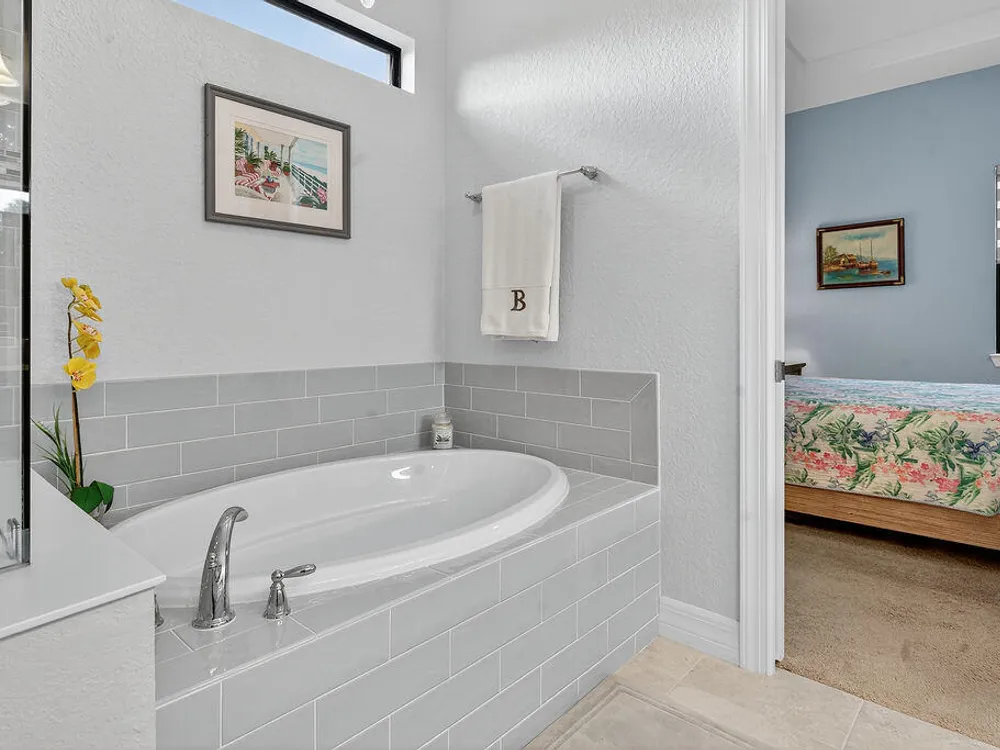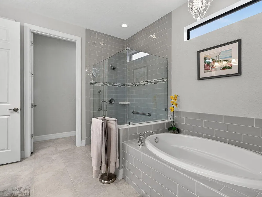 - Cathedral Ceiling(s), Entry Level Living Area, Entrance Foyer, Kitchen Island, Pull Down Attic Stairs, Garden Tub/Roman Tub, Split Bedrooms, High Ceilings, Walk-In Closet(s), Attic, Home Office, Great Room, Living/Dining Room, Impact Glass, Dual Sinks, Separate Shower, Bathtub