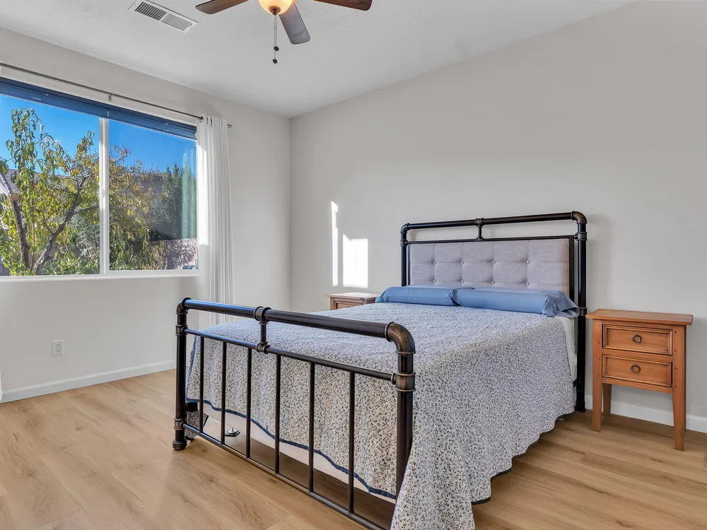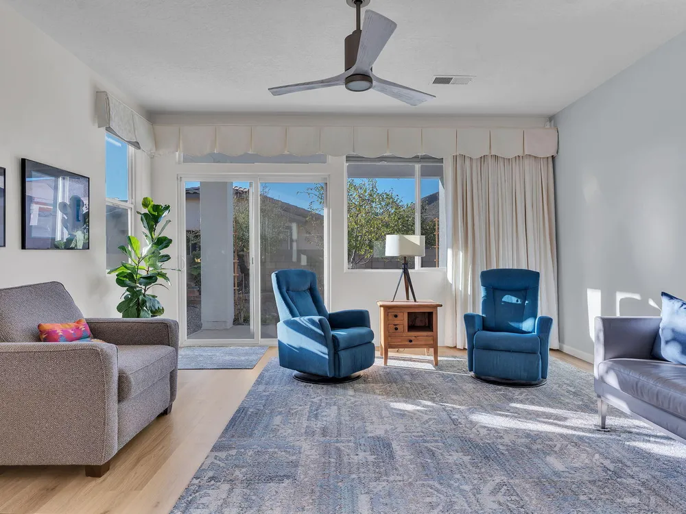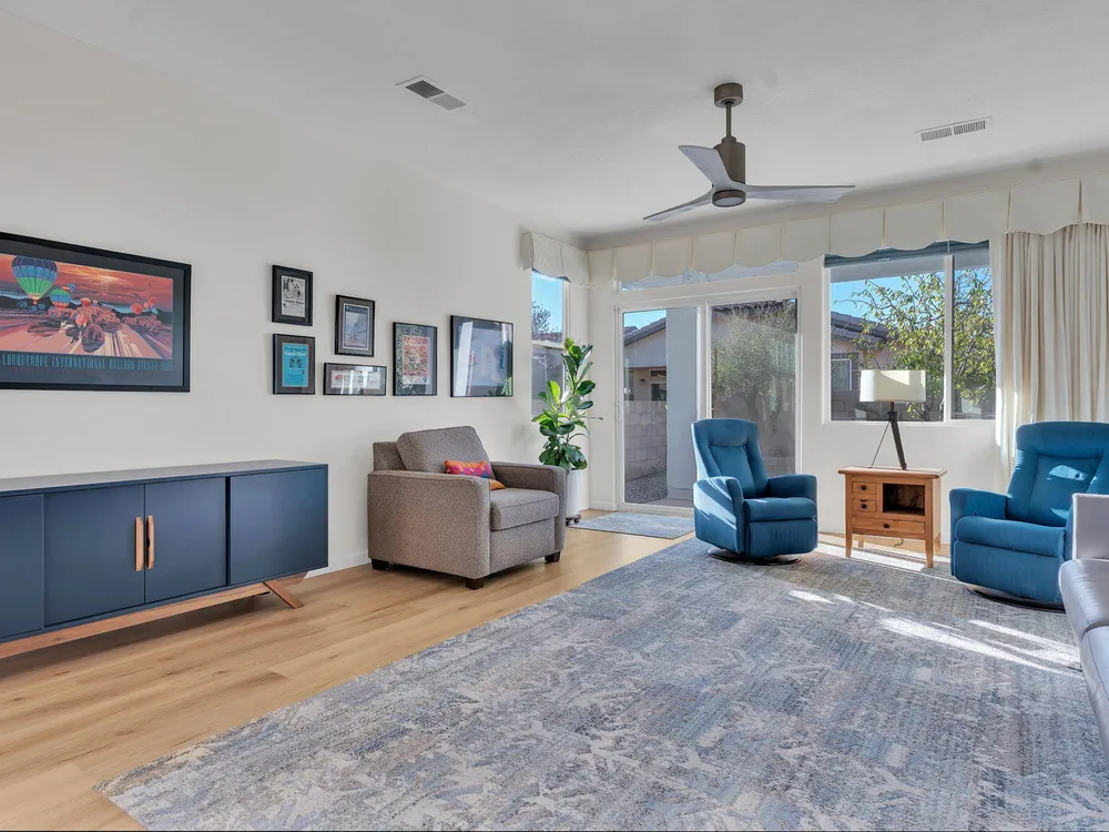 Nestled within the highly desirable 55+ community of Jubilee, this exceptional 2 bedroom, 2 bathroom home offers 1,556 square feet of well designed living space, combining comfort, quality, and efficiency. This home has been meticulously maintained and enhanced with numerous upgrades to ensure long term value and peace of mind. Notable improvements include a three-year-old roof and a hot water heater installed in 2020. Elegant newer flooring enhances the interior, creating a bright and inviting atmosphere throughout the main living areas. This home also includes a fully owned solar system, installed in 2022, with battery backup which delivers clean power, savings, and peace of mind for smart, sustainable living. Enjoy zero electric bills and protection from rising energy costs with this