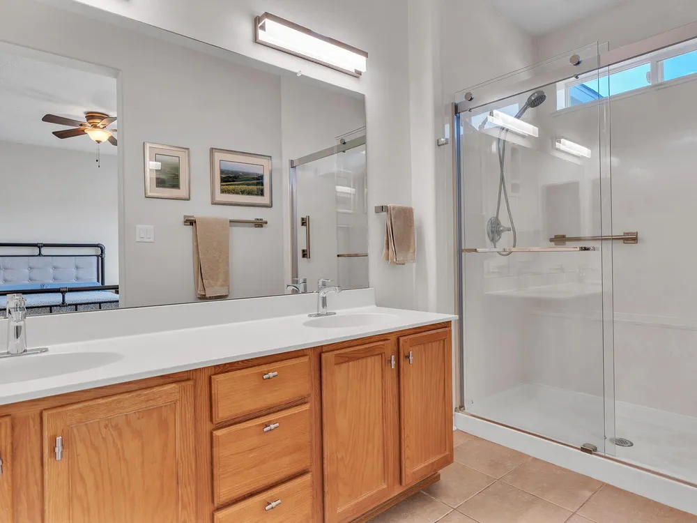 - Breakfast Area, Ceiling Fan(s), Dual Sinks, Living/Dining Room, Main Level Primary, Separate Shower, Walk-In Closet(s)