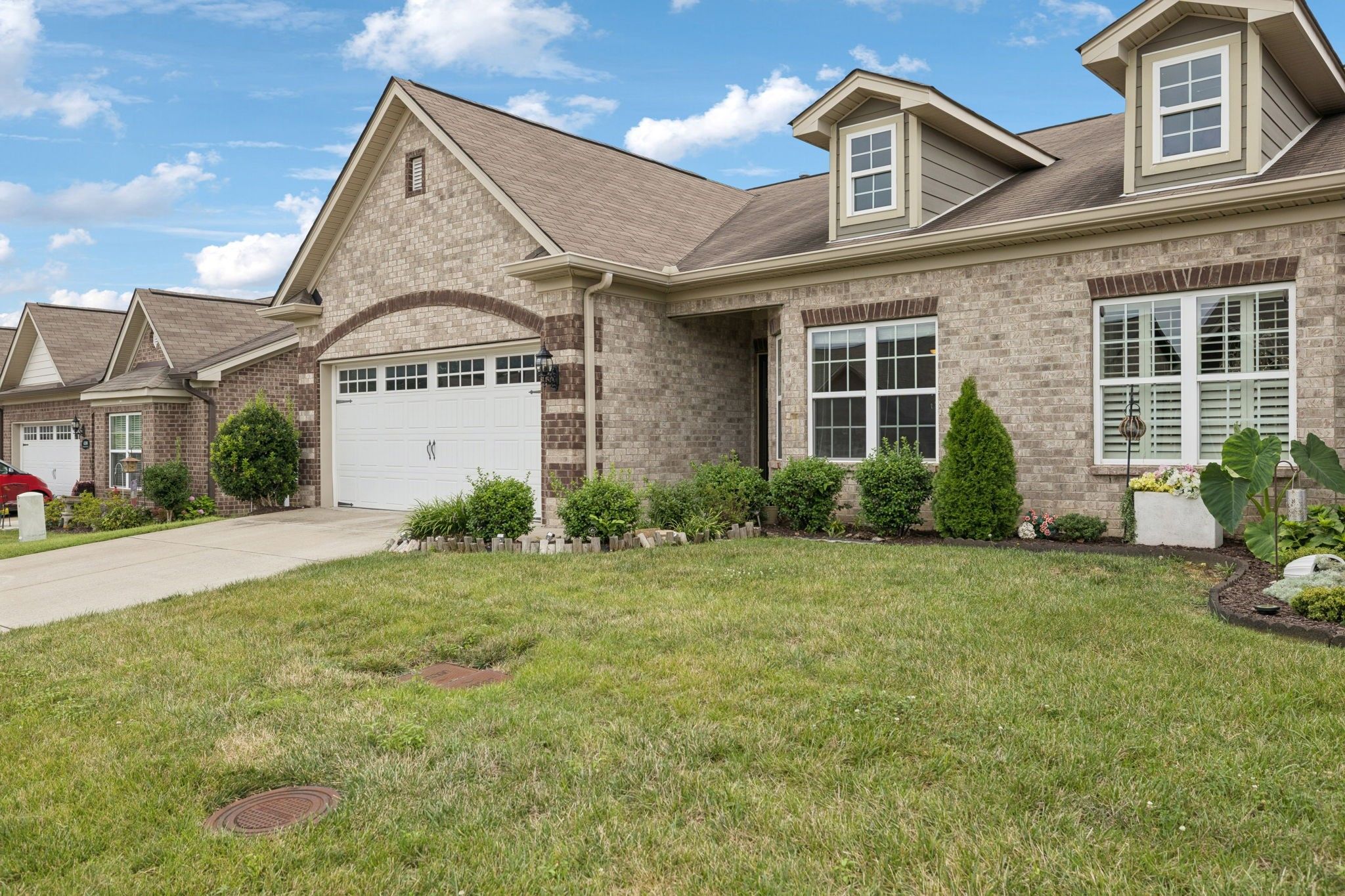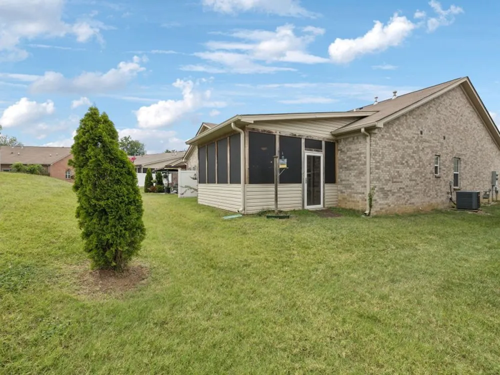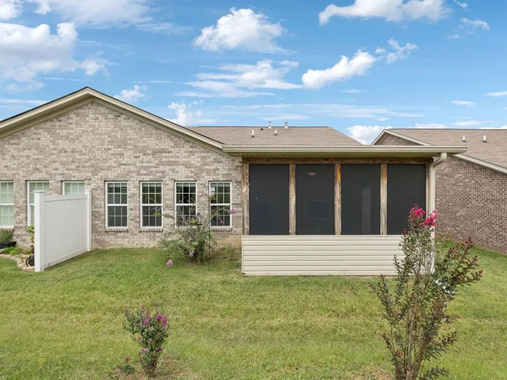 Welcome to easy living in the highly desirable The Cottages at Providence, a 55+ community just minutes from everything! This beautifully maintained all brick home offers 2 bedrooms and 2 full bathrooms, hardwood floors throughout, granite countertops, an electric cooktop, and a convenient pantry in the kitchen. Enjoy high ceilings, an open floor plan that includes a spacious sunroom filled with natural light and French doors. Directly off the sunroom is a screened porch for relaxing outdoors. The primary suite includes a large closet. Window coverings on all the windows provide comfort and style throughout. Additional features include a two-car garage, storm door, ceiling fans and plenty of storage. Community amenities include a resort style pool, playground area and walking trails. Located just 4 minutes to Providence Shopping Center and 5 minutes to I-40, this home offers the perfect blend of convenience and low maintenance living!