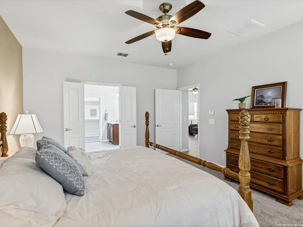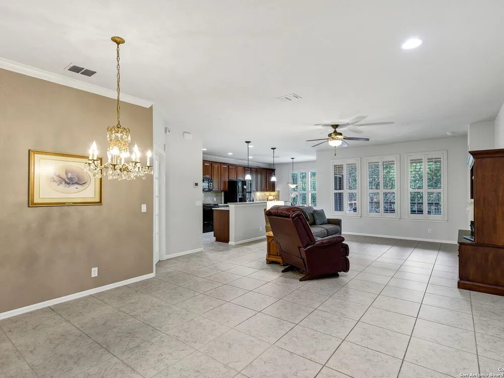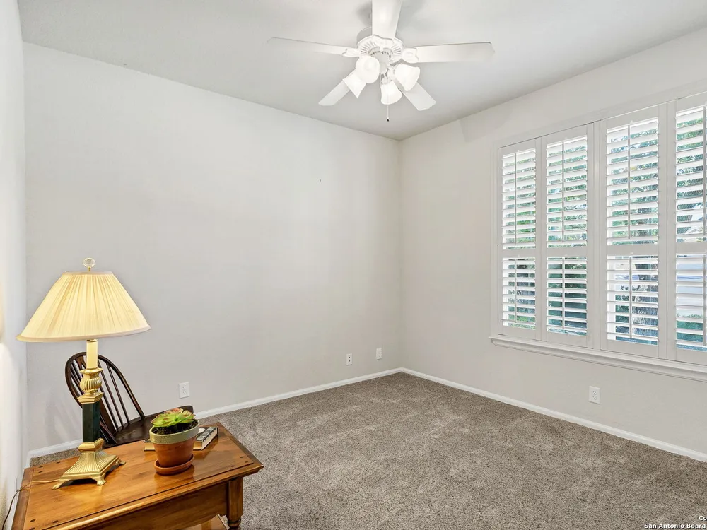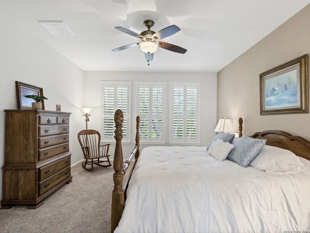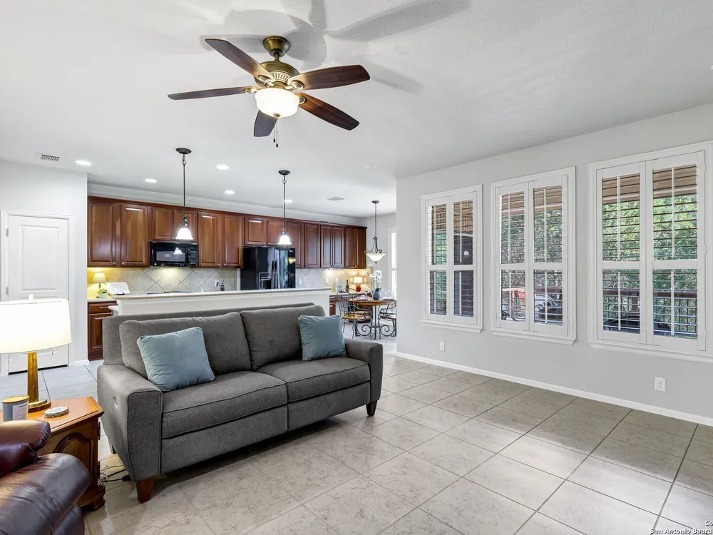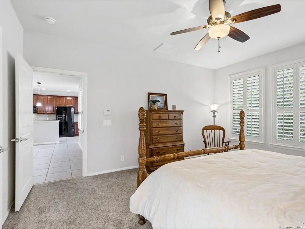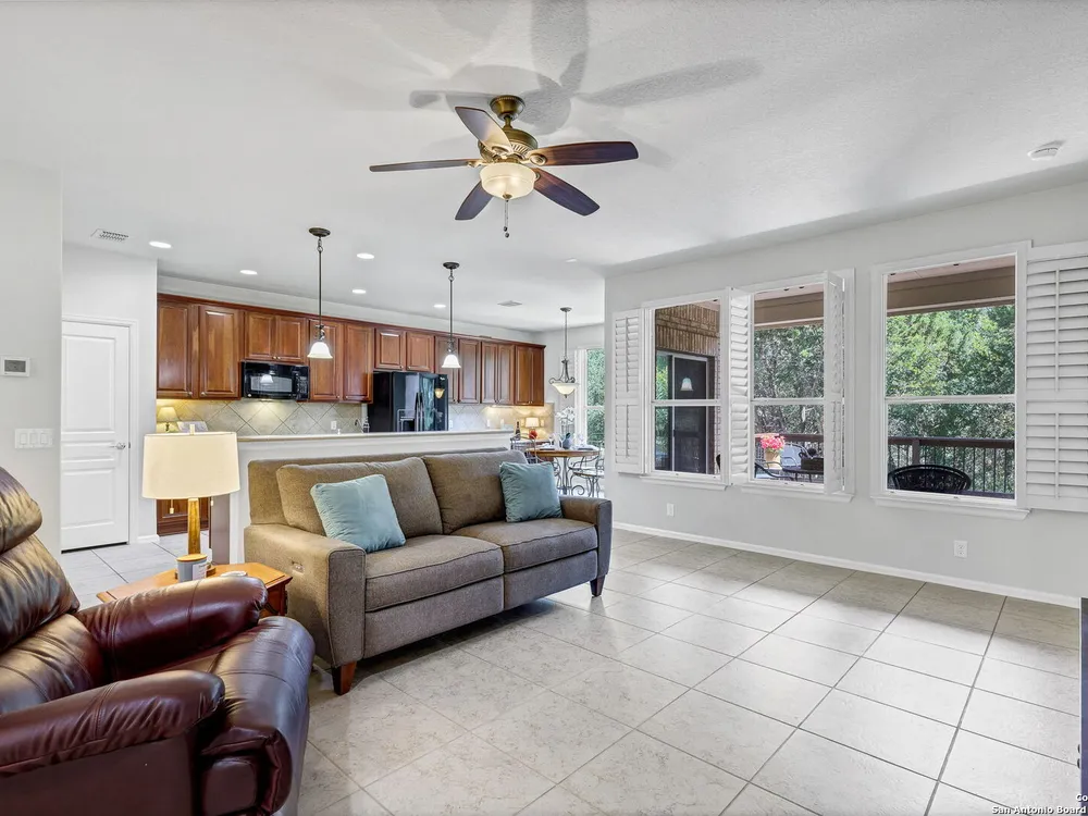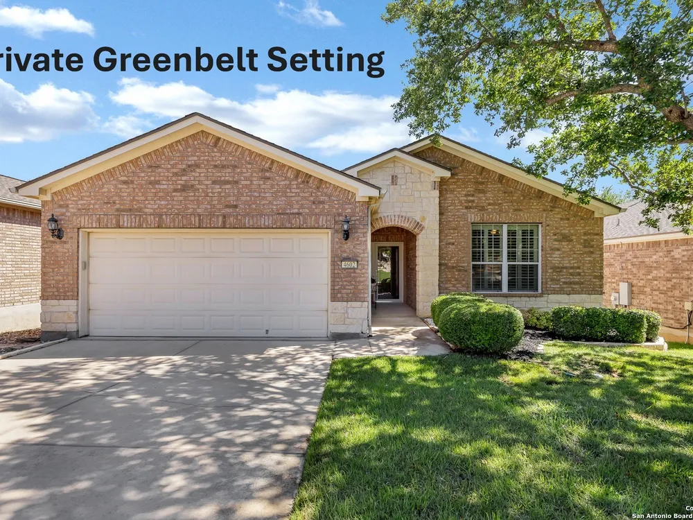 VERNON HILL MODEL NESTLED ON PRIVATE GREENBLET LOT, BOASTING 3BR/2 BA + STUDY AND OVERSIZED GARAGE IN DEL WEBB'S 55+ PREMIUM ACTIVE ADULT COMMUNITY. THIS OPEN FLOOR PLAN WITH EXTENDED KITCHEN FEATURES CORIAN COUNTERTOPS, GAS STOVE, CERAMIC TILE IN LIVING AREAS AND CARPET IN ALL BEDROOMS; ELEGANT PLANTATION SHUTTERS. ENJOY NATURE FROM YOUR SPACIOUS COVERED PATIO AND EXTENDED DECK OVERLOOKING VERDANT GREENBELT. THE COMMUNITY RESORT CENTER FEATURES BALLROOM, MEETING ROOMS, LIBRARY, STATE OF THE ART GYM, INDOOR POOL AND SPA, 2 OUTDOOR POOLS, PICKLE BALL AND MUCH MORE! IT'S TIME TO PACK YOUR BAGS AND GET READY TO ENJOY THE GOOD LIFE AT DEL WEBB SAN ANTONIO HILL COUNTRY RETREAT!