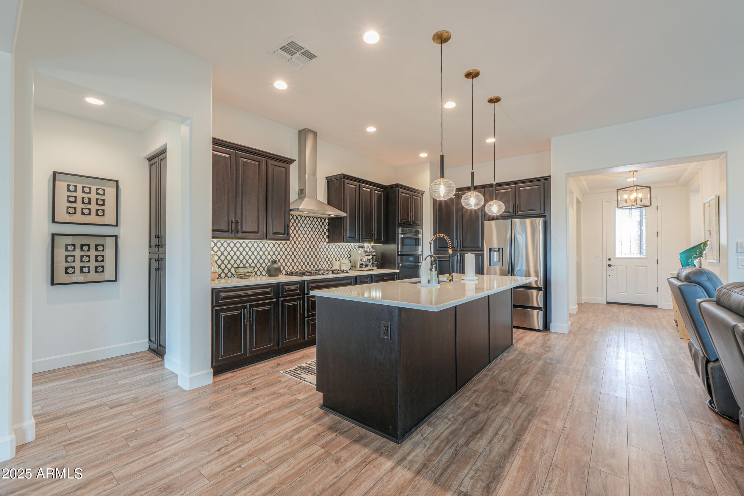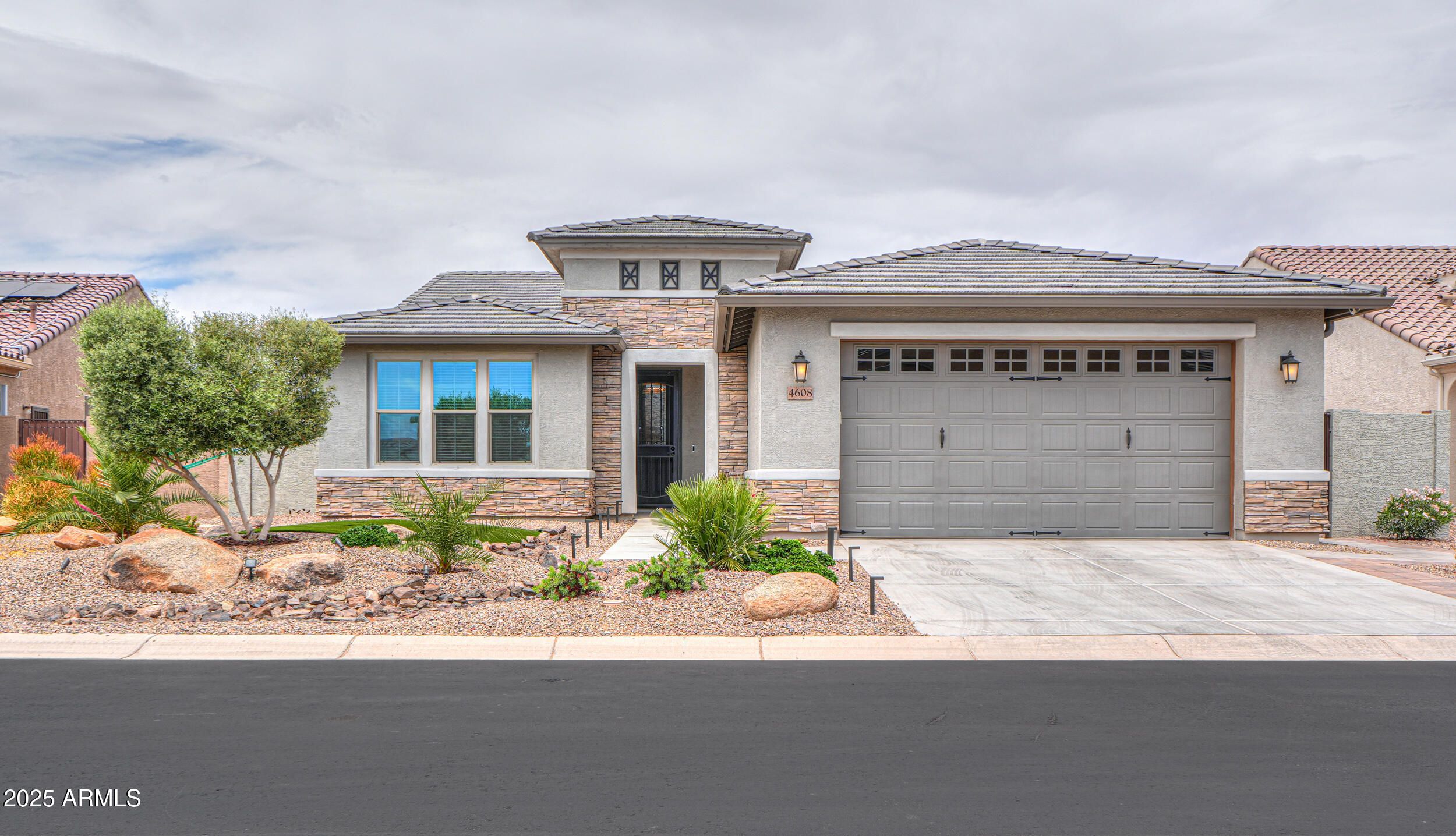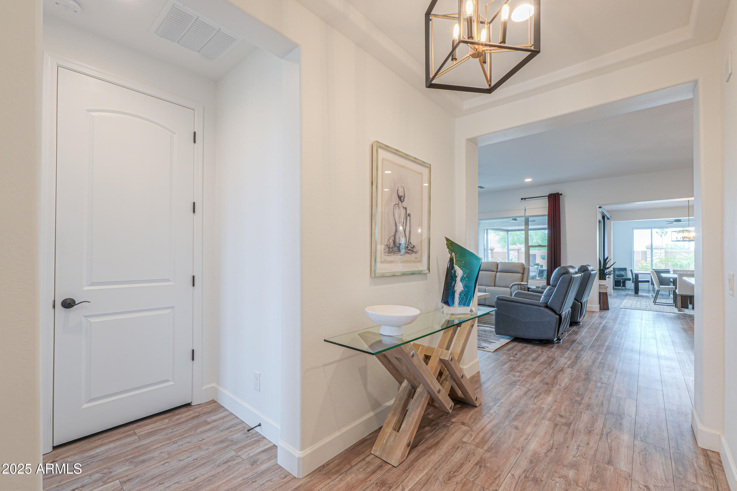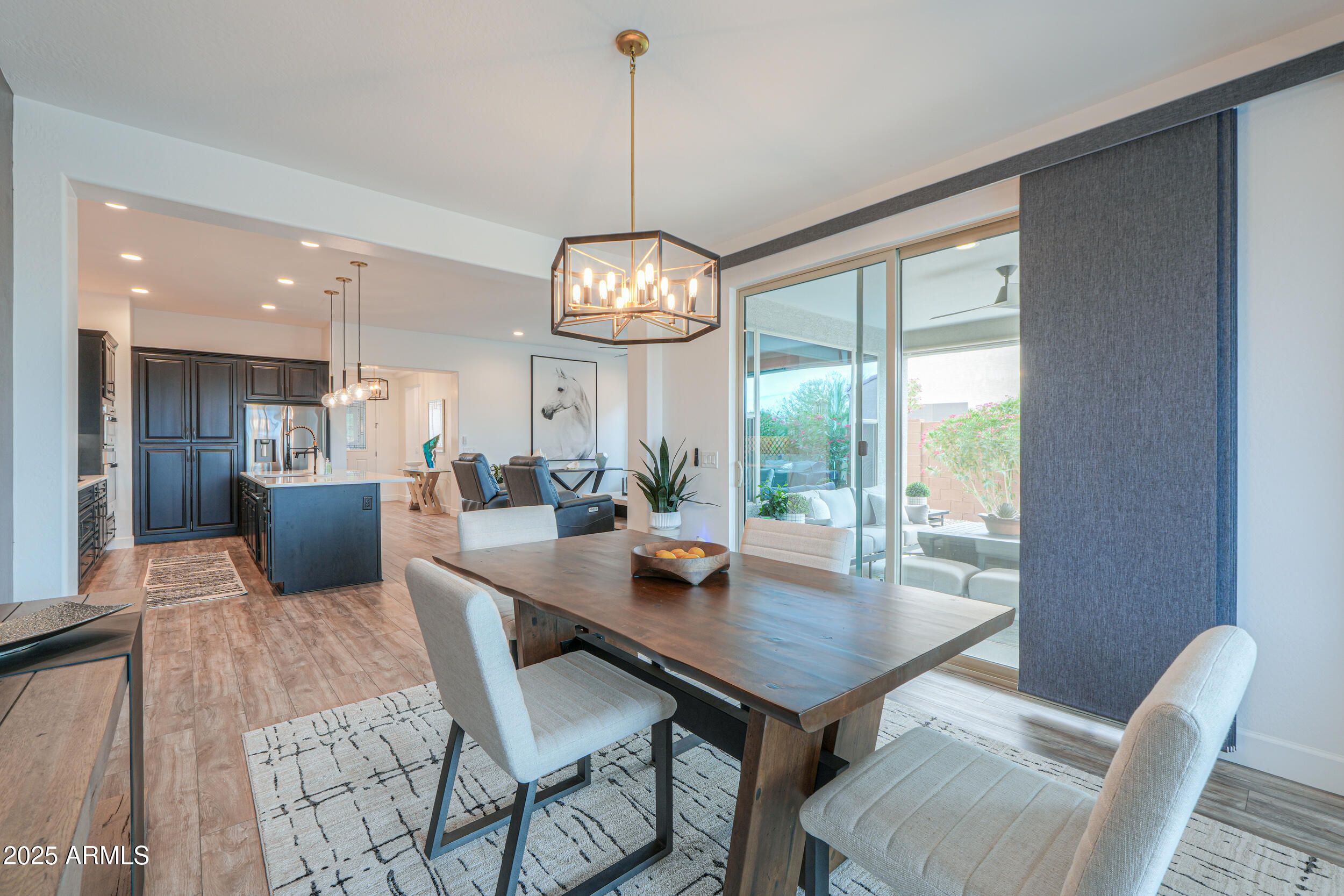 GORGEOUS home w/custom touches throughout! Furniture included a $40,000 value, Sellers have done everything, so you don't have to. Kitchen features 42'' cabinets, gas cooktop, SS chimney hood, under-cabinet lights, backsplash, quartz counters, wall oven & microwave. You'll love the plank flooring, 5.25'' baseboards, glass front door, outdoor tile entry, 8' interior doors, 340 glass windows, quartz vanities, 3'' quartz shelves throughout, 2 full suite bedrooms w/walk-in closets & tile showers. Extended sunroom off dining area w/luxurious bar. The garage has epoxy flooring & utility sink. Step out back to the covered patio w/sunshades, retractable pergola & BBQ prep station. Backyard to the fully fenced professionally landscaped resort like yard (2025)with synthetic grass with inset paver.