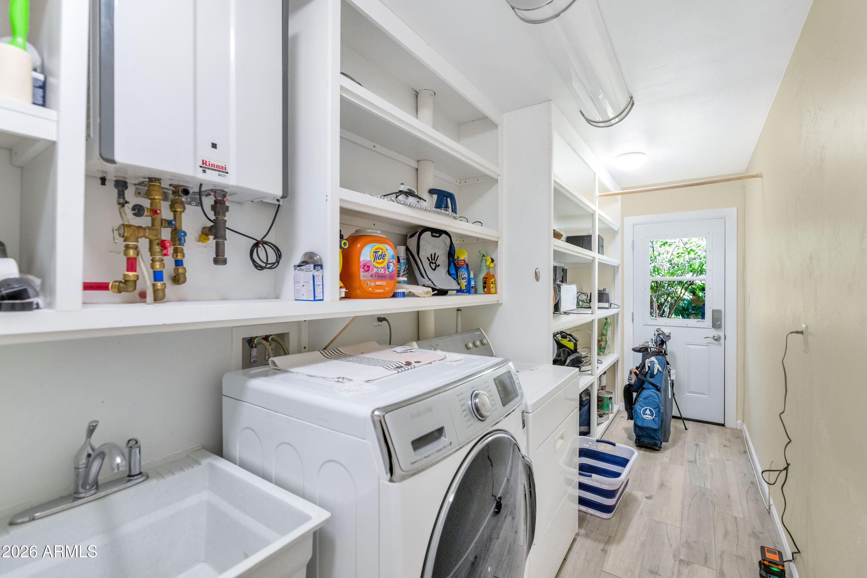 This darling home sits in a stellar location adjacent to Old Town Scottsdale. The open floor plan features a lovely kitchen with granite countertops and stainless-steel appliances next a quaint breakfast room which leads to the spacious family room. Both bedrooms are oversized, both bathrooms are custom designed with glass vessel sinks and unique tile shower surrounds, and the maintenance free backyard offers multiple gathering spots for relaxing and enjoying the beautiful Scottsdale weather. The coveted end unit is an extra spacious lot, and best of all, there's no HOA. This very pretty home makes a wonderful lock and leave, personal getaway or an income producing property. Walking distance from some of the best shopping and dining in the city, this delightful residence offers an exceptional lifestyle!