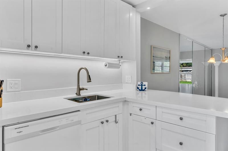 Welcome home to this well maintained first-floor 2/2 in Oriole Gardens—just a 7-min walk to the new Publix Plaza! Offering 990 sq ft with Eastern exposure, this light-filled unit features peaceful canal and garden views for serene living. The renovated kitchen shines with white shaker cabinets, quartz countertops, and modern finishes. The guest bathroom has been updated with a newer shower, and both bathrooms feature newer sinks. Newer carpet in the bedrooms adds comfort, while tiled living areas offer easy maintenance. The primary suite includes a walk-in closet and ensuite bath, while the second bedroom offers dual closets—perfect for guests or home office. Enjoy relaxing on your private patio overlooking the water. Newer carpet in primary bedroom and space for a sitting area.