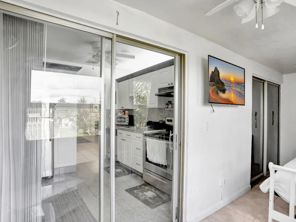 - Built-in Shelving, Entry Level Living Area, Walk-In Closet(s), Family Room, Florida Room, Storage, Breakfast Area, Kitchen/Dining Combo, Impact Glass, Single Hung Metal Window(s), Primary Downstairs