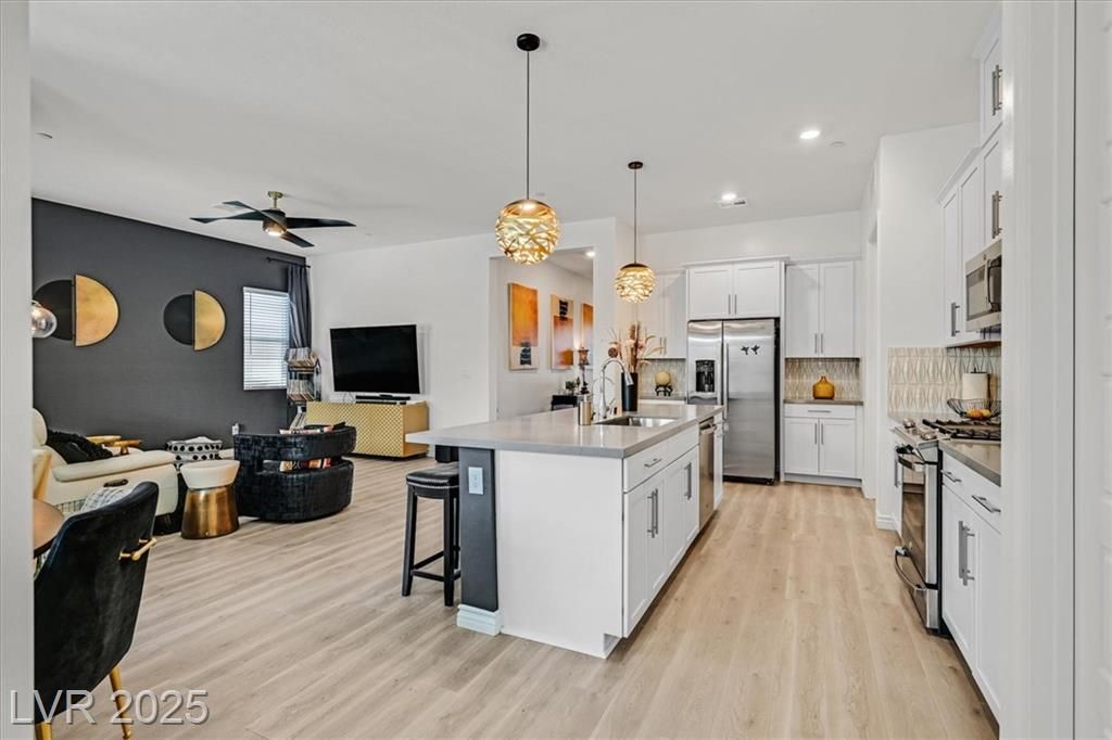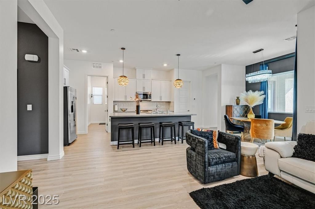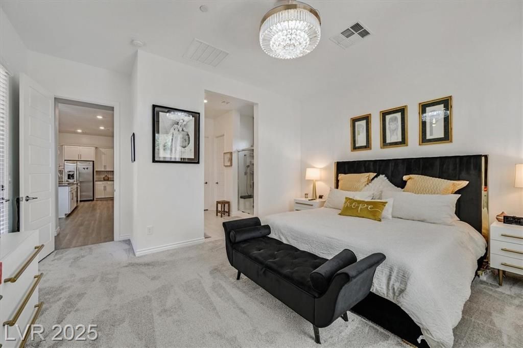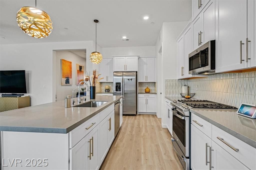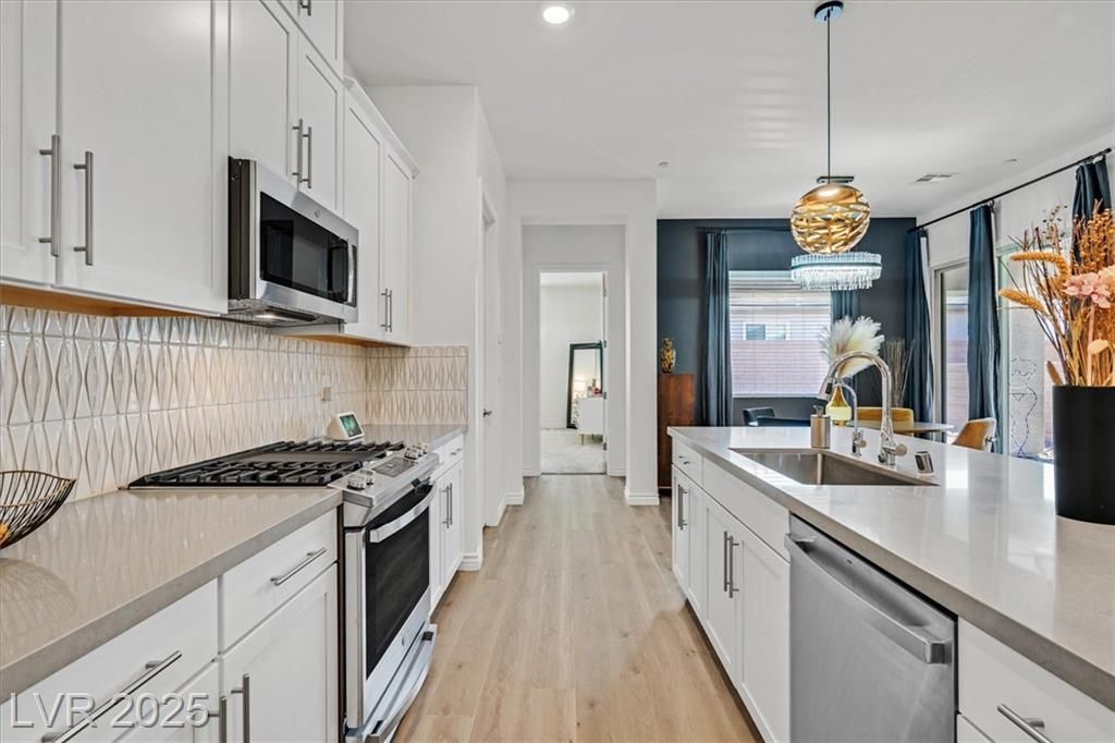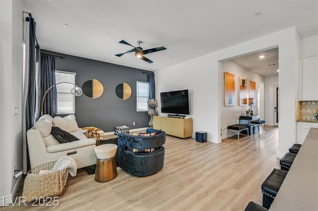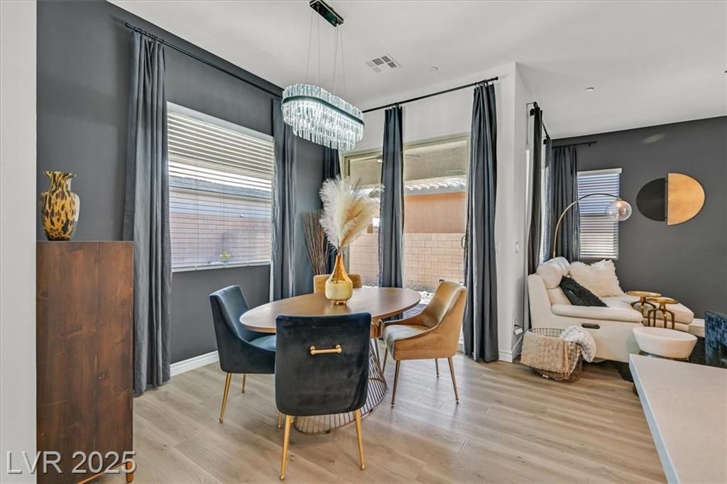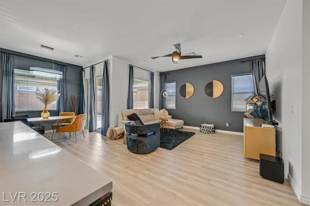 Pristine condition-barely lived in & loaded with upgrades. This beauty is located in the premier 55+ Heritage guard gated community in Cadence, one of the nations top ranked master planned communities. Home features open concept modern design, offering upgraded front door with vented glass, luxury vinyl plank flooring, window covers/curtains, ceiling fans and upgraded pendant lighting throughout. Kitchen boasts designer backsplash tile, pull out drawers and undermount cabinet lights. Touchless faucet, upgraded cooktop-oven, reverse osmosis, large island and quartz countertops. Primary bedroom is separate from other bedrooms & offers access to extended covered patio with pavers. Large walk in closet has a custom organized system. Laundry room has extra storage & all in one washer-dryer combo. Garage with organization system and EV charger. Steps from your new home is the resort style clubhouse with indoor & outdoor pools, fitness center, pickleball, tennis court and so much more.