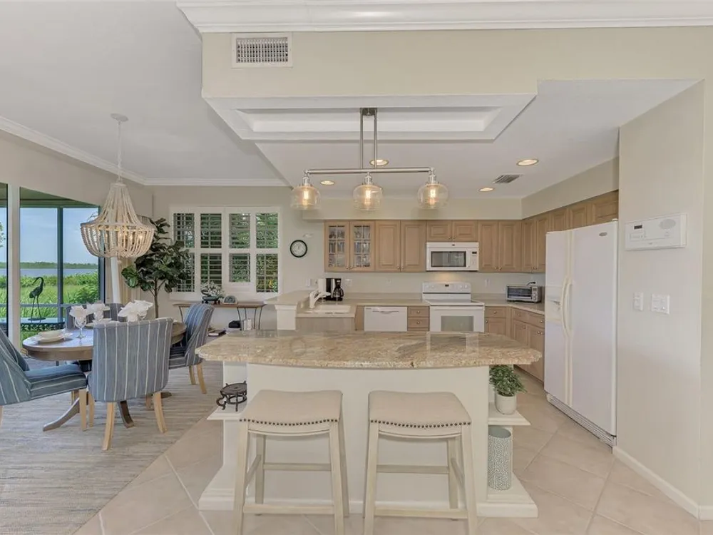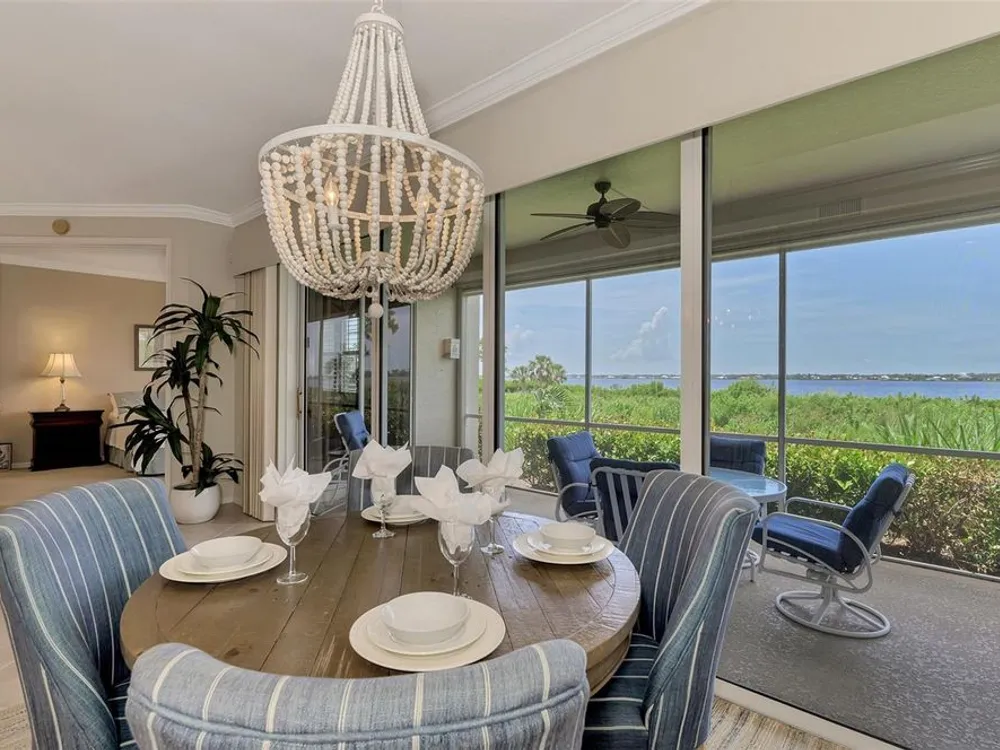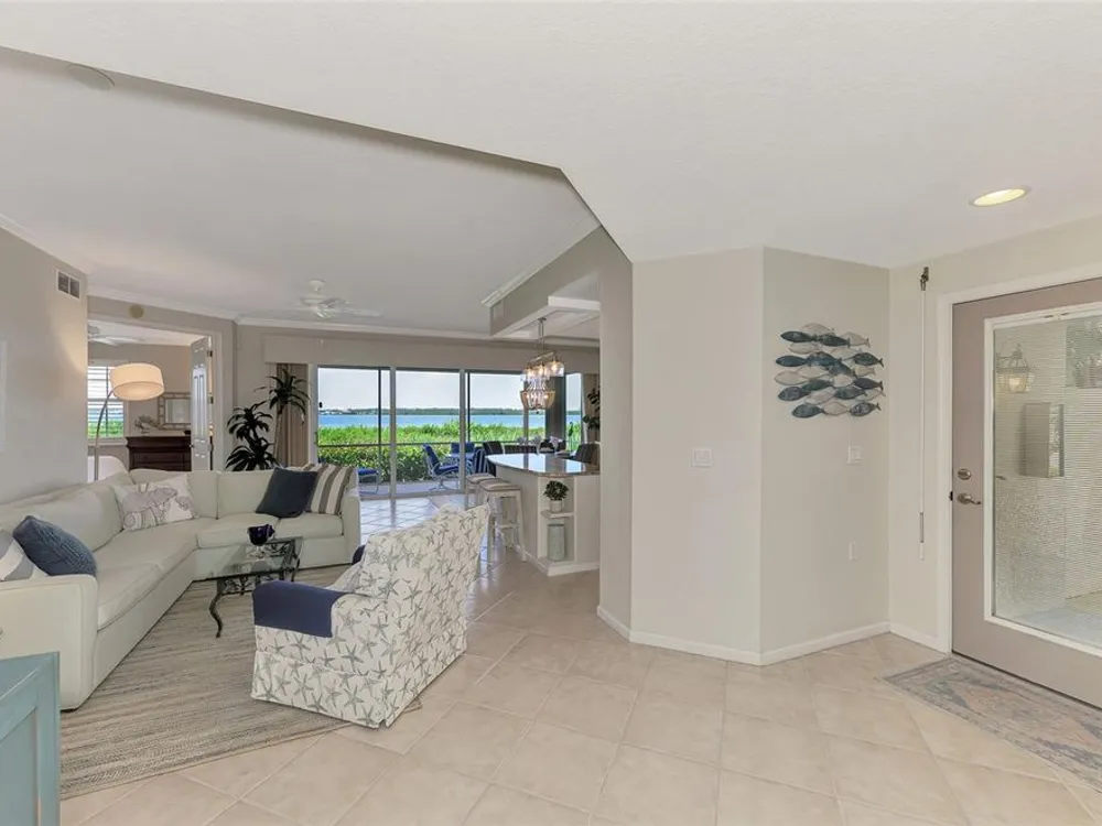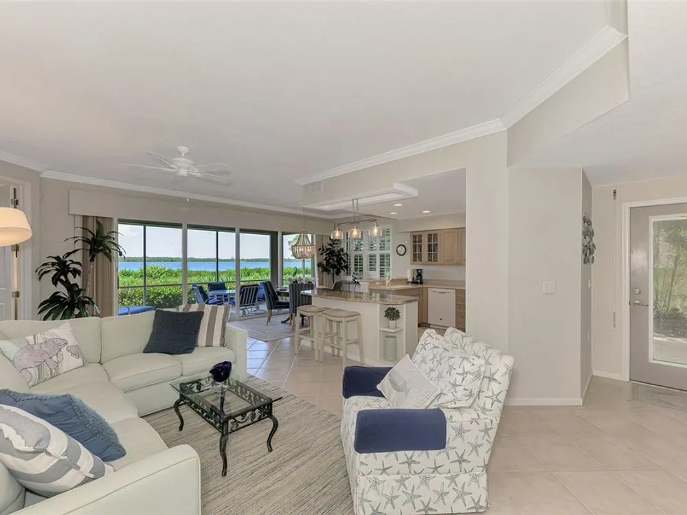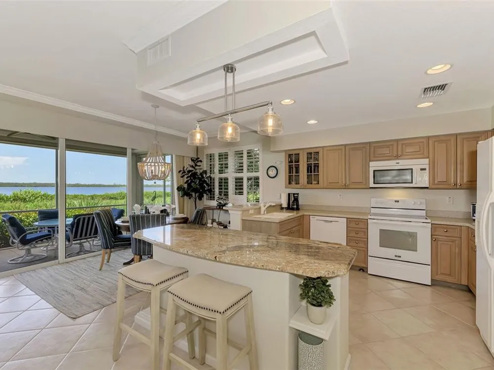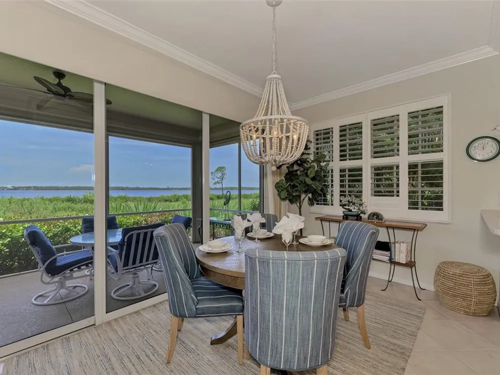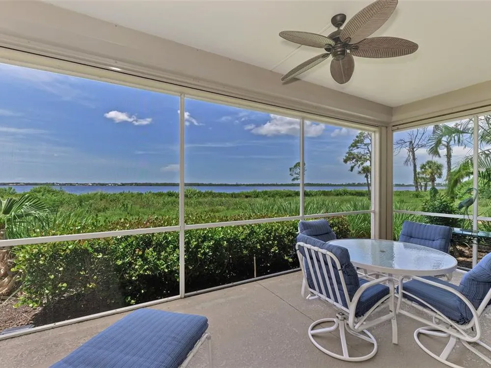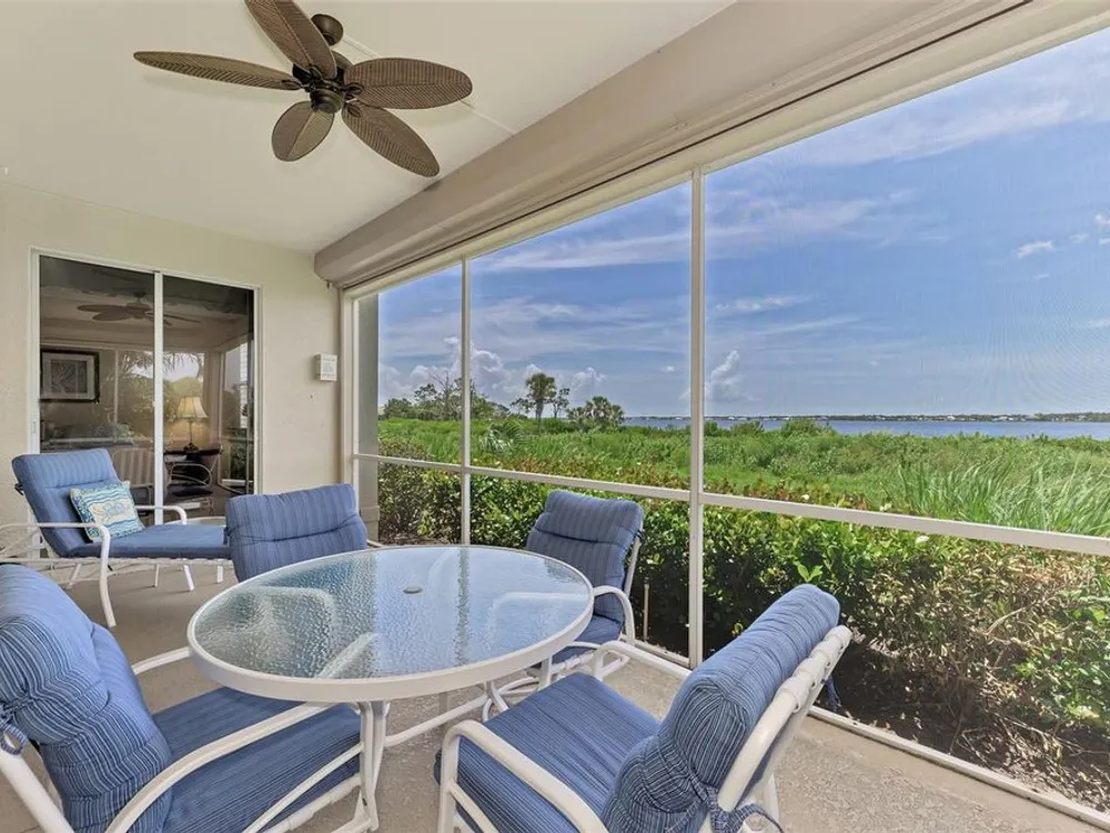 This charming and cozy home in Tarpon Harbor I is situated within the sought-after Riverwood Community. The condo features A NEW ROOF, 2 bedrooms plus a den and 2 bathrooms, with a split floor plan providing guests with the sensation of having their own private wing. Upon entering this first-floor unit, you're welcomed by elegant tile flooring throughout the main living spaces. The kitchen, equipped with granite countertops, includes a handy breakfast bar. The Master Suite boasts a spacious walk-in closet and bathroom, featuring dual sinks, as well as a newly updated shower enclosure and a garden tub. From the screened lanai, you can enjoy serene views of the Myakka River. Experience the best of Florida living! This condo is turnkey, with all furniture and household items included, subject to some exclusions from the owner. For further details, ask the Agent! The Riverwood community boasts exceptional amenities, including a par-72 championship golf course, a state-of-the-art fitness center, a resort-style pool, and both pickleball and Har-Tru tennis courts. Membership to the Private Beach Club on Manasota Key is available based on current availability. Just minutes from fine dining, shopping, boating, and the beautiful Gulf of America beaches, this is your chance to fully embrace the ultimate Florida lifestyle. Don’t miss out on this stunning home—schedule a showing today and discover unparalleled luxury and tranquility.