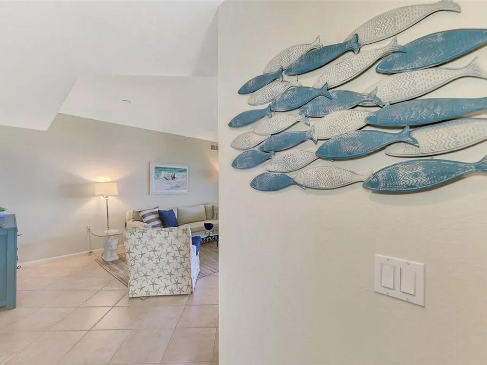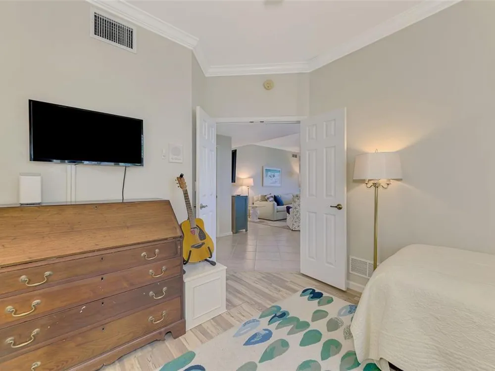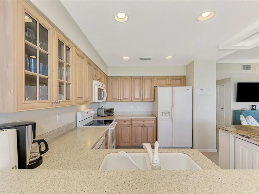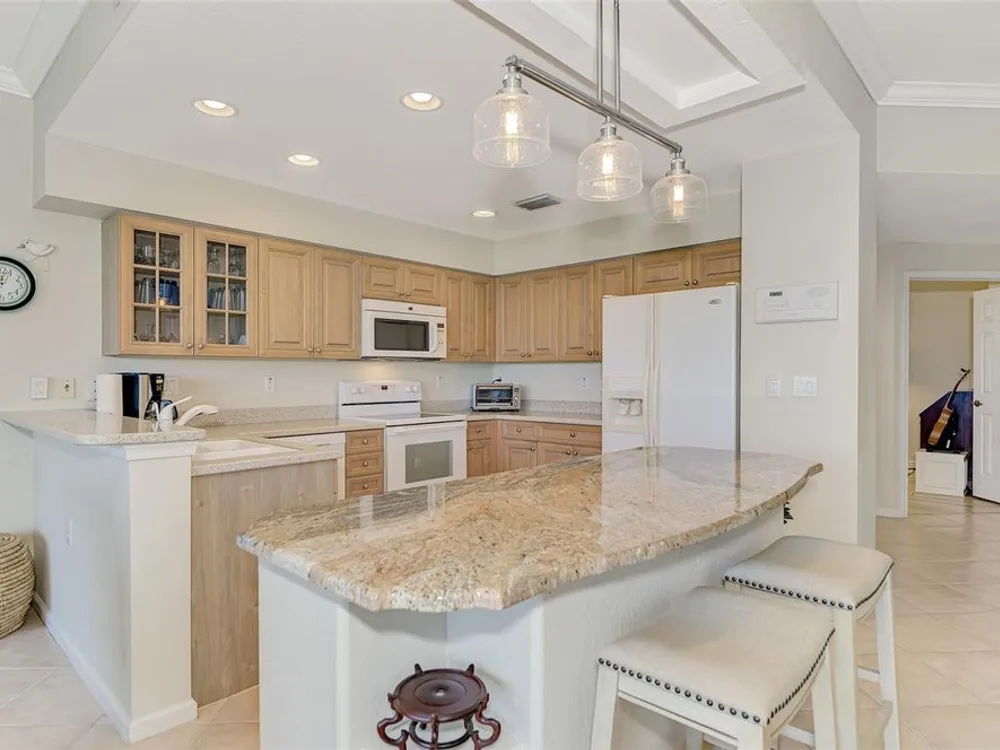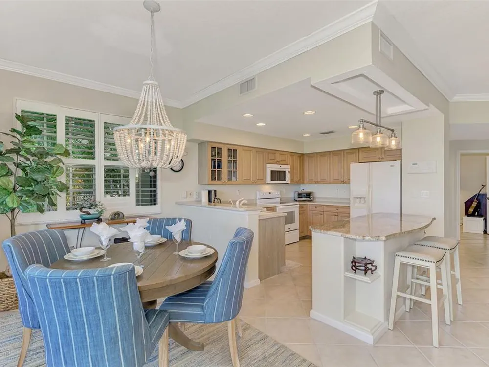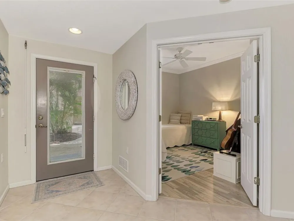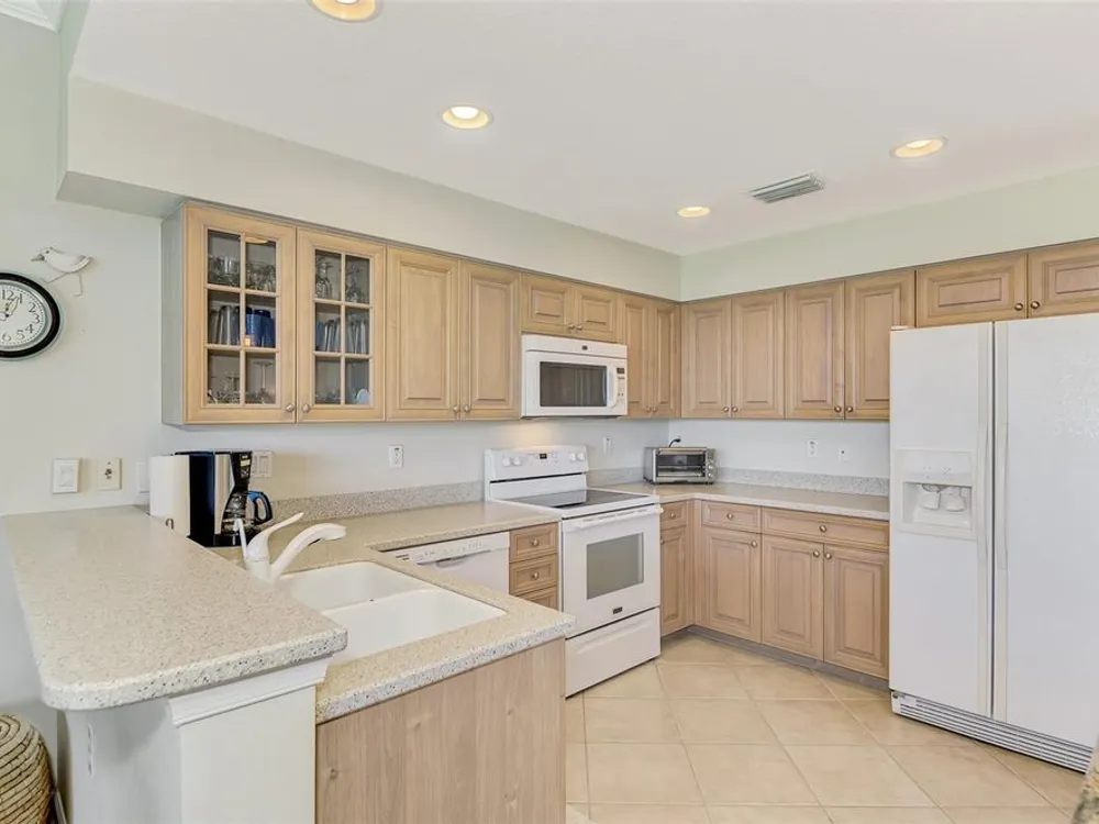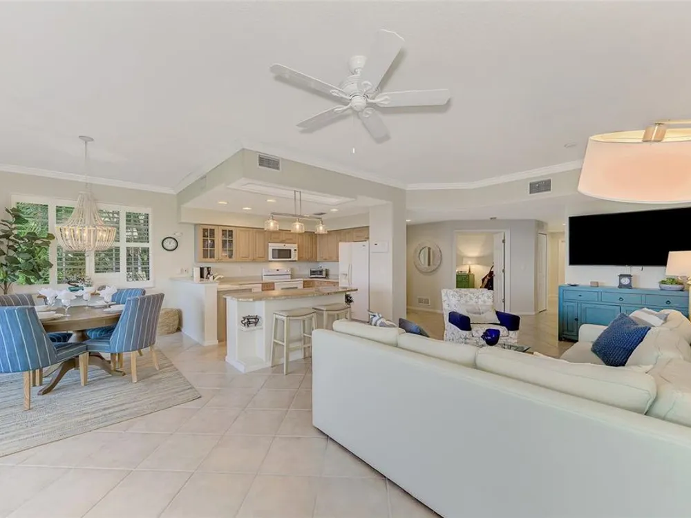 This charming and cozy home in Tarpon Harbor I is situated within the sought-after Riverwood Community. The condo features A NEW ROOF, 2 bedrooms plus a den and 2 bathrooms, with a split floor plan providing guests with the sensation of having their own private wing. Upon entering this first-floor unit, you're welcomed by elegant tile flooring throughout the main living spaces. The kitchen, equipped with granite countertops, includes a handy breakfast bar. The Master Suite boasts a spacious walk-in closet and bathroom, featuring dual sinks, as well as a newly updated shower enclosure and a garden tub. From the screened lanai, you can enjoy serene views of the Myakka River. Experience the best of Florida living! This condo is turnkey, with all furniture and household items included, subject to some exclusions from the owner. For further details, ask the Agent! The Riverwood community boasts exceptional amenities, including a par-72 championship golf course, a state-of-the-art fitness center, a resort-style pool, and both pickleball and Har-Tru tennis courts. Membership to the Private Beach Club on Manasota Key is available based on current availability. Just minutes from fine dining, shopping, boating, and the beautiful Gulf of America beaches, this is your chance to fully embrace the ultimate Florida lifestyle. Don’t miss out on this stunning home—schedule a showing today and discover unparalleled luxury and tranquility.