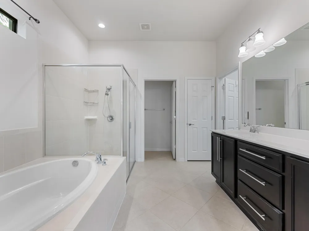 - Kitchen Island, Pantry, Split Bedrooms, Walk-In Closet(s), Home Office, Family Room, Living/Dining Room, Drapes, Impact Glass, Dual Sinks, Primary Downstairs, Separate Shower, Bathtub, Washer/Dryer Hookup