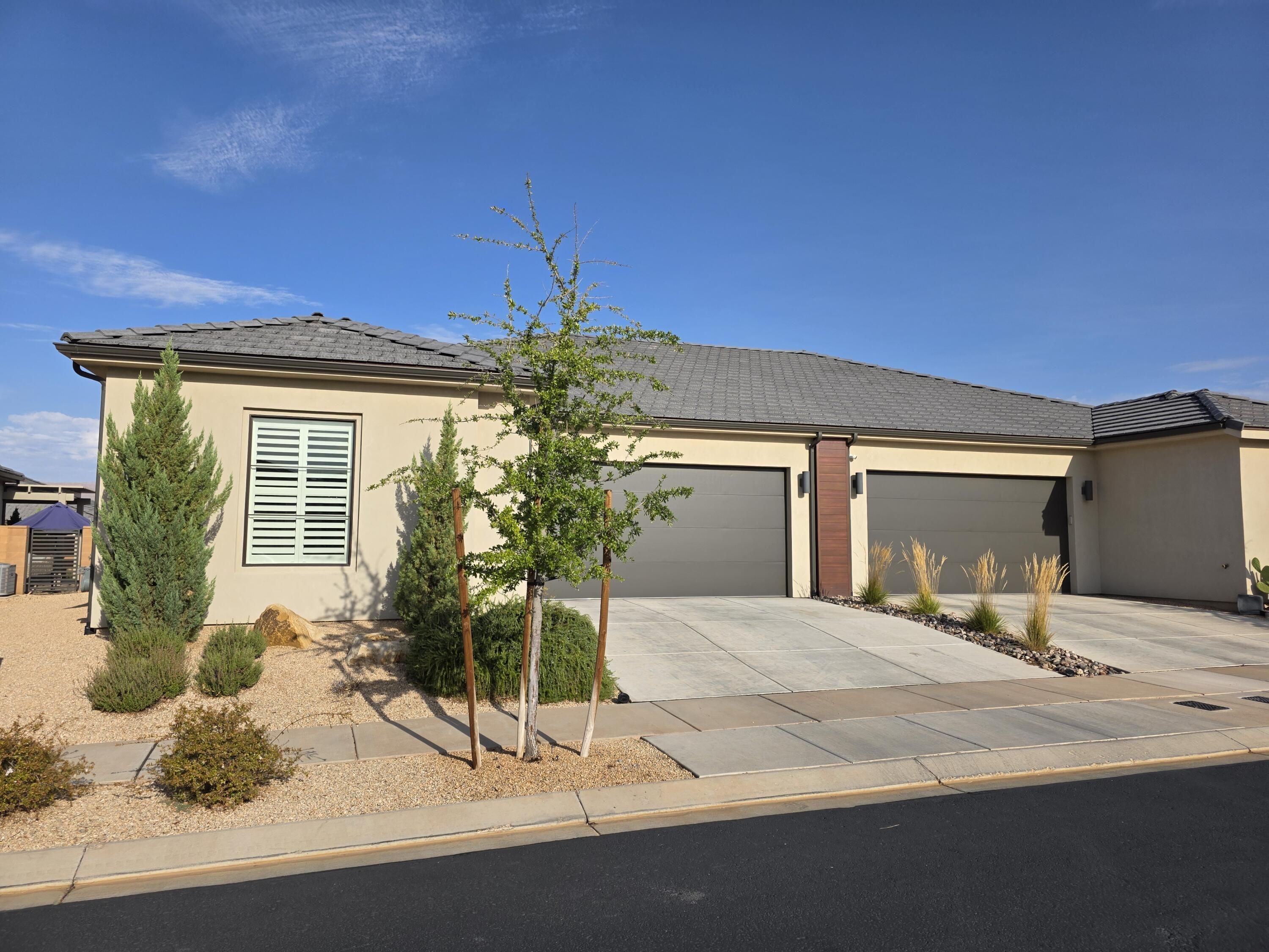 Welcome Home to this beautiful Luxury Villa in sunny Sun River St George. This 55+ Community offers an impressive amenities package for active adults including a Community Center, Outdoor Pool and Spa, Pickleball Courts and More! From the moment you enter this homes Iron Gated Entry you can feel that something special is to come. Open the door and you are greeted with a beautiful foyer that leads to a wide open Great Room. All windows are appointed with Plantation shutters. The custom cabinets have soft closures, beautiful hardware and 42'' uppers with large crown. The Island has an apron sink and wonderful ''Village View''. This home sits a little higher than some and the block wall perimeter is a normal height. You have privacy with the ability to see out. It's beautiful! Continued The cabinets in the kitchen have under cabinet task lighting and beautiful backsplash. All appliances are GE and remain with the home including the Washer and dryer. There is also a Water Softener that will remain with the home. The "Ring" Doorbell, as well as, the "Tesla Charger" in the Garage are "exempted" from this sale and will be removed prior to occupancy. The ceilings in this home are 10' Tall and the doors are 8' Tall. Moving from the Great Room to the right you have the Laundry Room which exits into the garage. The garage has storage galore! It also has a workbench and room to keep all of your tools organized. Coming back in from the garage into the hall and beyond is the Primary Suite. This owner has a full suite of King size furniture and it flows beautifully. The Primary bath has a double sink vanity, walk-in shower, separate water closet, linen closet and a generous walk-in wardrobe closet. On the opposite side of the home there is a beautiful Guest Room and Guest Bath with glass enclosure. Finally, the perfect backyard beckons you to come and rest a while in the cascading sound of the amazing water feature with pond. This feature gives the home a restorative vibe that can be felt and heard. The Patio has a decorative cover for shade. Sun River Villas Community is next door to Atkinville Wash Park and is down the street from Sun River Golf Course. This seller is a licensed Broker in the State of Utah. The Listing Agent is related to the Seller.