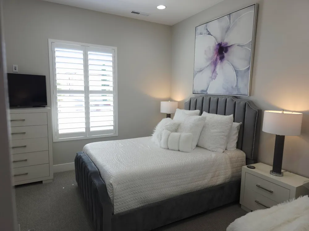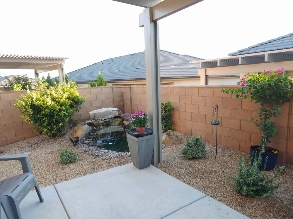 Welcome Home to this beautiful Luxury Villa in sunny St George. This 55+ Community offers an impressive amenities package for active adults including a Community Center, Outdoor Pool and Spa, Pickleball Courts and More! From the moment you enter this homes Iron Gated Entry you can feel that something special is to come. Open the door and you are greeted with a beautiful foyer that leads to a wide open Great Room. All windows are appointed with Plantation shutters. The custom cabinets have soft closures, beautiful hardware and 42'' uppers with large crown. The Island has an apron sink and wonderful ''Village View''. There is a Reverse Osmosis Water Purification System that has a loop at the sink, as well as, runs purified water into the Refrigerator for pure water and ice. Continued . The cabinets in the kitchen have under cabinet task lighting and beautiful backsplash. All appliances are GE and remain with the home including the Washer and dryer. There is also a Water Softener that will remain with the home. The "Ring" Doorbell, as well as, the "Tesla Charger" in the Garage are "exempted" from this sale and will be removed prior to occupancy. The ceilings in this home are 10' Tall and the doors are 8' Tall. Moving from the Great Room to the right you have the Laundry Room which exits into the garage. The garage has storage galore! It also has a workbench and room to keep all of your tools organized. Coming back in from the garage into the hall and beyond is the Primary Suite. This owner has a full suite of King size furniture and it flows beautifully. The Primary bath has a double sink vanity, walk-in shower, separate water closet, linen closet and a generous walk-in wardrobe closet. On the opposite side of the home there is a beautiful Guest Room and Guest Bath with glass enclosure. Finally, the perfect backyard beckons you to come and rest a while in the cascading sound of the amazing water feature with pond. This feature gives the home a restorative vibe that can be felt and heard. The Patio has a decorative cover for shade. Sun River Villas Community is next door to Atkinville Wash Park and is down the street from Sun River Golf Course. This seller is a licensed Broker in the State of Utah. The Listing Agent is related to the Seller.