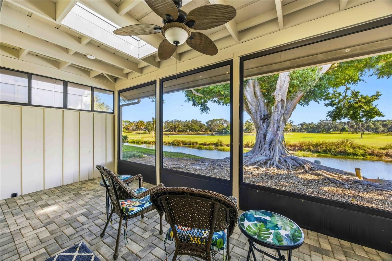 PICTURESQUE LAKE & GOLF COURSE VIEWS! Nature Lover’s Delight. Situated behind the secure gates of Bent Tree. Offering an Active 55+ Maintenance Free lifestyle with grounds maintenance; exterior painting; exterior maintenance; irrigation; pest control; roof; full time management & community pool. Updated, ready to move in open floor plan. Spacious dining room with sliding glass doors to your own private Courtyard with fire pit; perfect for entertaining. Living room with vaulted ceiling & custom built-in bar with wine cooler. Laminate & Tile floors throughout-2021. Totally new 2018 kitchen with granite countertops & custom built ins and new Stainless Appliances-2020.. Primary Bedroom with gorgeous lake views; access to screened lanai; plantation shutters; walk-in closet; ensuite with separate vanities. Separate guest bedroom with adjoining, updated bath with new cabinet; granite countertop; fixtures & hardware. Enjoy quiet moments, panoramic, and tranquil golf course and water views from your spacious screened lanai complete with Paver deck & Vinyl panels to enjoy year round outdoor living. Extra outside paver deck too. 2-Car Garage with storage. Other notable upgrades include: Freshly Painted Interior-2018; Brand New AC & Hot Water Heater-2025; Interior doors 2021; Plantation Shutters-2021 and New Washer & Dryer-2024. Recent Condo upgrades include: New Roof-2024; Skylights on Lanai-2024; & Freshly painted exteriors-2023. The Hammocks offers lush Florida foliage; serene lakes dotting the community; abundance of wildlife with plenty of places to walk and explore. Golf Memberships at Bent Tree are Optional. Conveniently located to shopping, restaurants, grocery, hospital; LA Fitness; and I-75. Perfect winter getaway or year-round residence.
