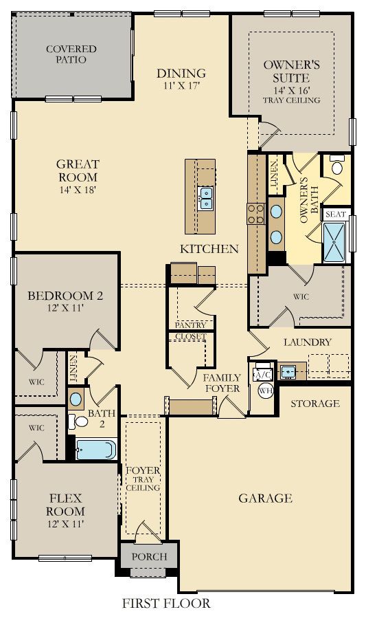 Grey Hawk is a community offering new single-family homes with onsite trails now selling in Plainfield, IN. Grey Hawk residents are less than a mile from a major highway, grocery story and medical facility for everyday essentials. 16 miles away is downtown Indianapolis, home to a vibrant shopping, dining and entertainment scene. The elegant foyer in this new single-story home leads to a contemporary open-concept layout among a kitchen with a center island, a Great Room and a dining area. An adjacent covered patio is a tranquil spot to entertain guests and relax and enjoy the outdoors. Flex space with a walk-in-closet is an excellent spot for a home office, crafting studio, workout room or even a third bedroom. Offering both luxury and convenience, the generously sized owner's suite features a spa-inspired bathroom and a large walk-in closet directly connected to the laundry room. A two-car garage with a bump-out and extra storage space is included. *Photos/Tour of model may show features not selected in home.