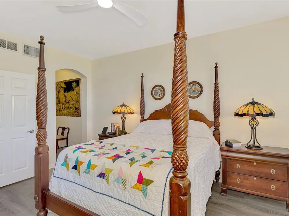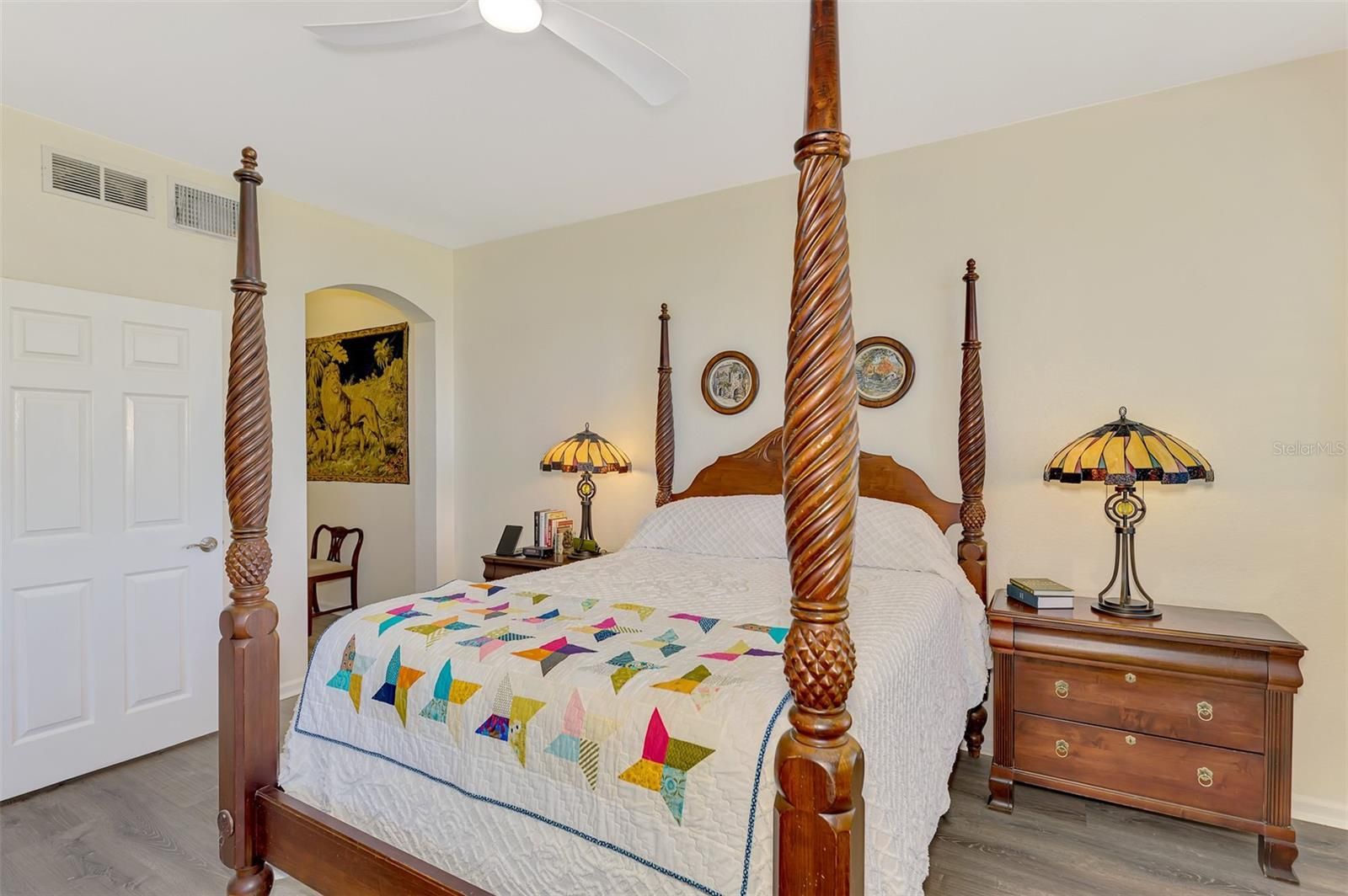 - Ceiling Fan(s), Main Level Primary, Stone Counters, Window Treatments
