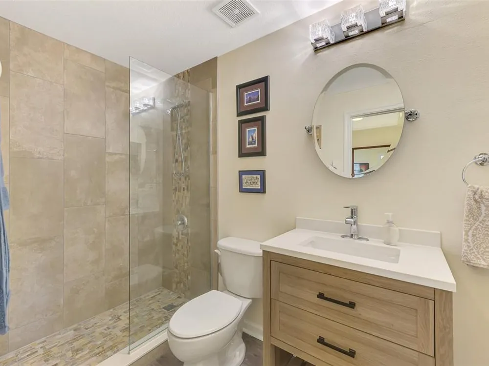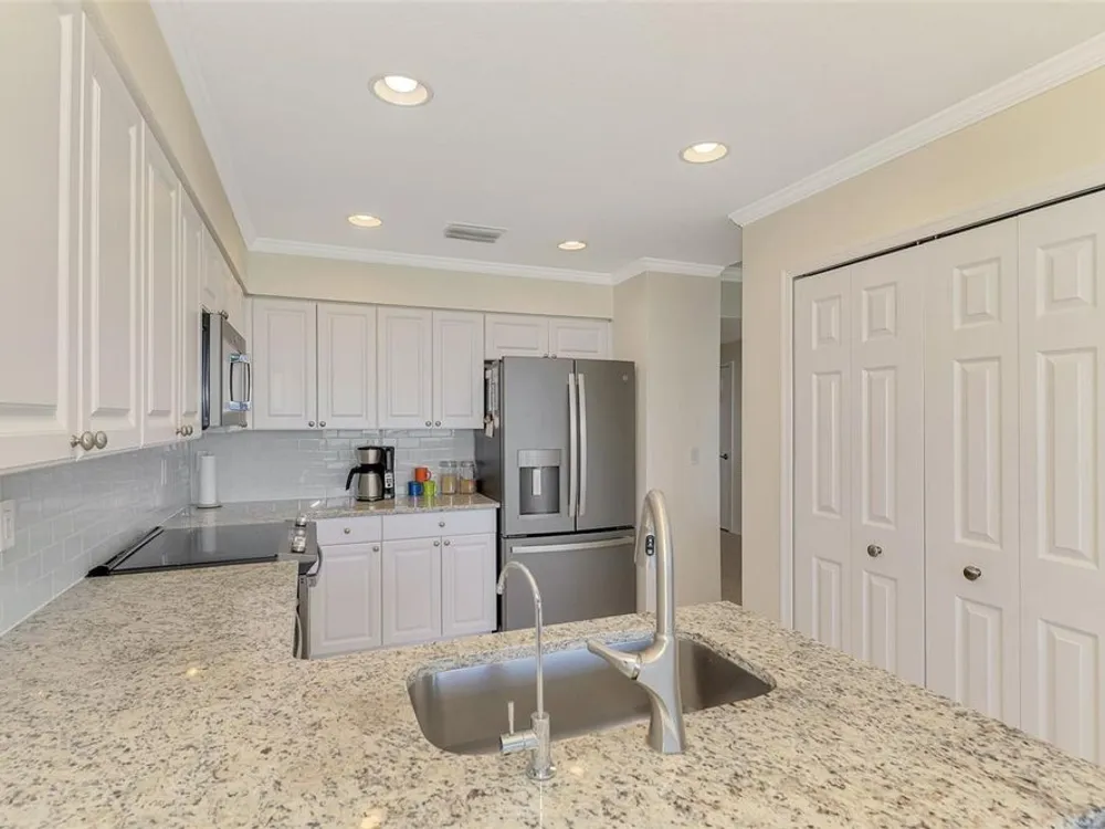 Serene Riverfront Living in Riverwood – Elegance, Privacy & Resort-Style Comfort Discover this beautifully renovated 2-bedroom condo with den, nestled in this sought- after gated community of Riverwood in Port Charlotte, FL. Overlooking the tranquil Myakka River through a stunning picture window lanai, this home offers a rare combination of natural serenity and luxurious upgrades. Interior Highlights: • Spacious great room seamlessly flows into the dining and open-concept kitchen • 10-foot ceilings with crown molding for an airy, refined feel • All-new appliances (2024), granite counters, and tiled backsplash creating both beauty and function • Generously sized den perfect for a home office, guest overflow, or quiet retreat • Primary bathroom fully renovated with: * Seamless glass shower enclosure * Elegant tile work throughout (tub surround, and shower) * Granite countertops, modern cabinet doors, mirrors, lighting, and hardware * Guest bathroom updated with luxury vinyl flooring, waterfall-tiled shower and seamless glass enclosure, plus modern finishes Outdoor & Structural Features: * NEW ROOF 2023 • Picture window screened lanai with motorized Kevlar hurricane screens providing both protection and sun filtering. • Kevlar hurricane shutters throughout—lightweight, easy to use, and allows natural light during storms. • Condo building set back from the main road with berm privacy—your peaceful oasis awaits. • 2-car garage with additional storage for seasonal gear, bikes, or hobbies Riverwood Lifestyle Perks: Live in a community known for its resort-style amenities, picturesque nature views, and impeccable landscaping. Whether you’re lounging riverside, enjoying clubhouse events, or teeing off at the golf course, Riverwood elevates every day into an experience. Riverwood offers resort lifestyle amenities, including a par-72 championship golf course (separate memberships available), a state-of-the-art fitness center, a resort-style pool and lap pool, large and small dog off leash parks, 6-pickleball and 6-Har-Tru tennis courts. Private Beach Club on Manasota Key (Memberships based on availability) - Located minutes from fine dining, shopping, boating, and the pristine Gulf of Mexico beaches, this is your opportunity to embrace the ultimate Florida lifestyle. Don’t let this magnificent home slip away. Schedule a showing today and experience a level of luxury and serenity that is simply unmatched.
