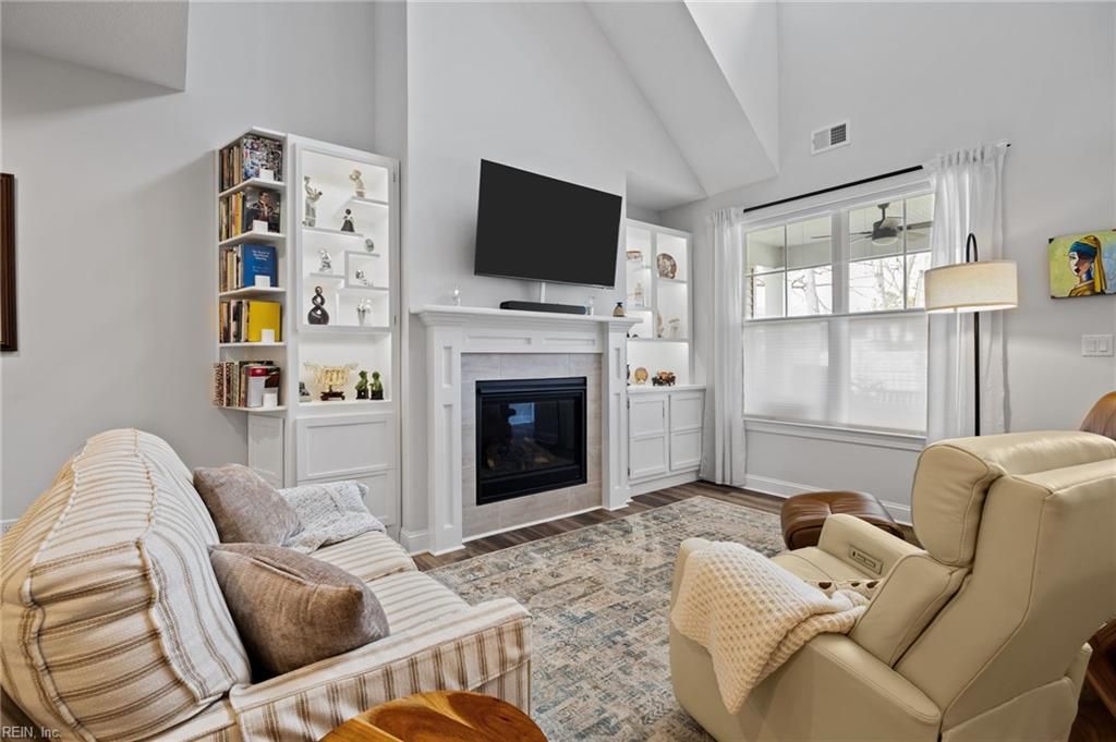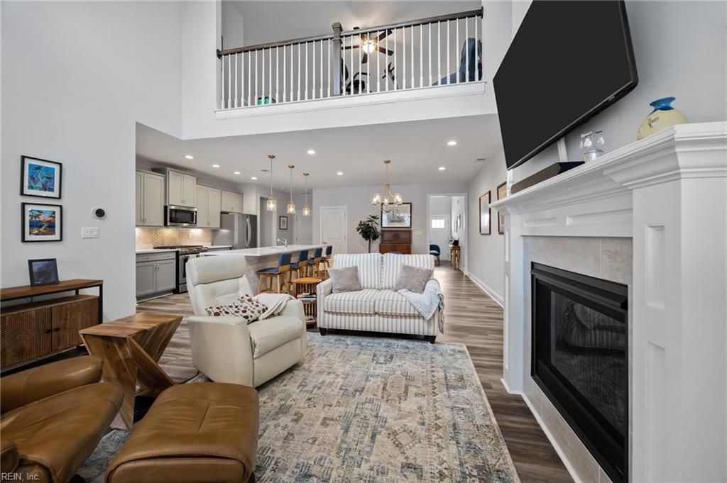 Prepare to fall in love with this Beauty in the 55+ community of Retreat at Western Branch. You will be impressed as you move through the Entry Way and into the spacious and flowing Lafayette Floorplan that boasts a vaulted Great Room with gas fireplace that opens to the Dining Room and quartz Kitchen with large center island and upgraded appliances including gas range. You will find a 1st flr Owner's Suite, another 1st flr bedroom ensuite, and 2nd flr with a Loft and two more bedrooms with direct access to a full bath. Additional Details: Great Room with custom built lighted display cabinets and gas fireplace with heatilator, two Kitchen pantries including large walk in pantry, 1st flr Laundry Room, LVP on first flr, whole house water filtration system, lots of storage space, custom blinds, zoned HVAC, covered porch with fan, fenced backyard, 2 car garage with opener, & more! Amenities: pool, fitness center, dog park, walking paths, fire pits, grilling area, garden, and clubhouse.