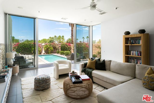 Discover elevated desert living in one of the most coveted homes at Escena the stunning "Forte" model by renowned architect Anthony Poon for Alta Verde. Rarely available and highly sought-after, this modern home is designed for artful living with soaring 10.5' gallery-style ceilings, creating a perfect backdrop for your art collection.Inside, smart home technology integrates seamlessly with designer finishes. Control your home remotely with advanced features including a smart door lock and camera, AirPlay-enabled ceiling fans, automated irrigation and pool/spa systems, and a Wi-Fi garage door opener all powered by upgraded 10-gig fiber hardware.The gourmet kitchen features sleek Italian cabinetry by Modulo Cucina, a professional-grade BlueStar gas range top, and premium Bosch and KitchenAid appliances. Every detail reflects efficiency and luxury: owned solar panels, tankless water heater, low-E double-glazed windows, and dual-zone A/C for ultimate comfort.Step outside into your private oasis a tranquil, fully gated yard with no rear neighbors, updated drought-tolerant landscaping, new LED lighting, and a sparkling saltwater pool and spa. Relax by the firepit or entertain guests in complete privacy under the stars. Plus, enjoy the convenience of a Tesla EV charger already installed.All of this is just a short stroll from the Escena Bar & Grill and the first tee of the acclaimed public golf course. With low HOA dues of just $240/month, this is the ideal blend of style, sustainability, and lifestyle.