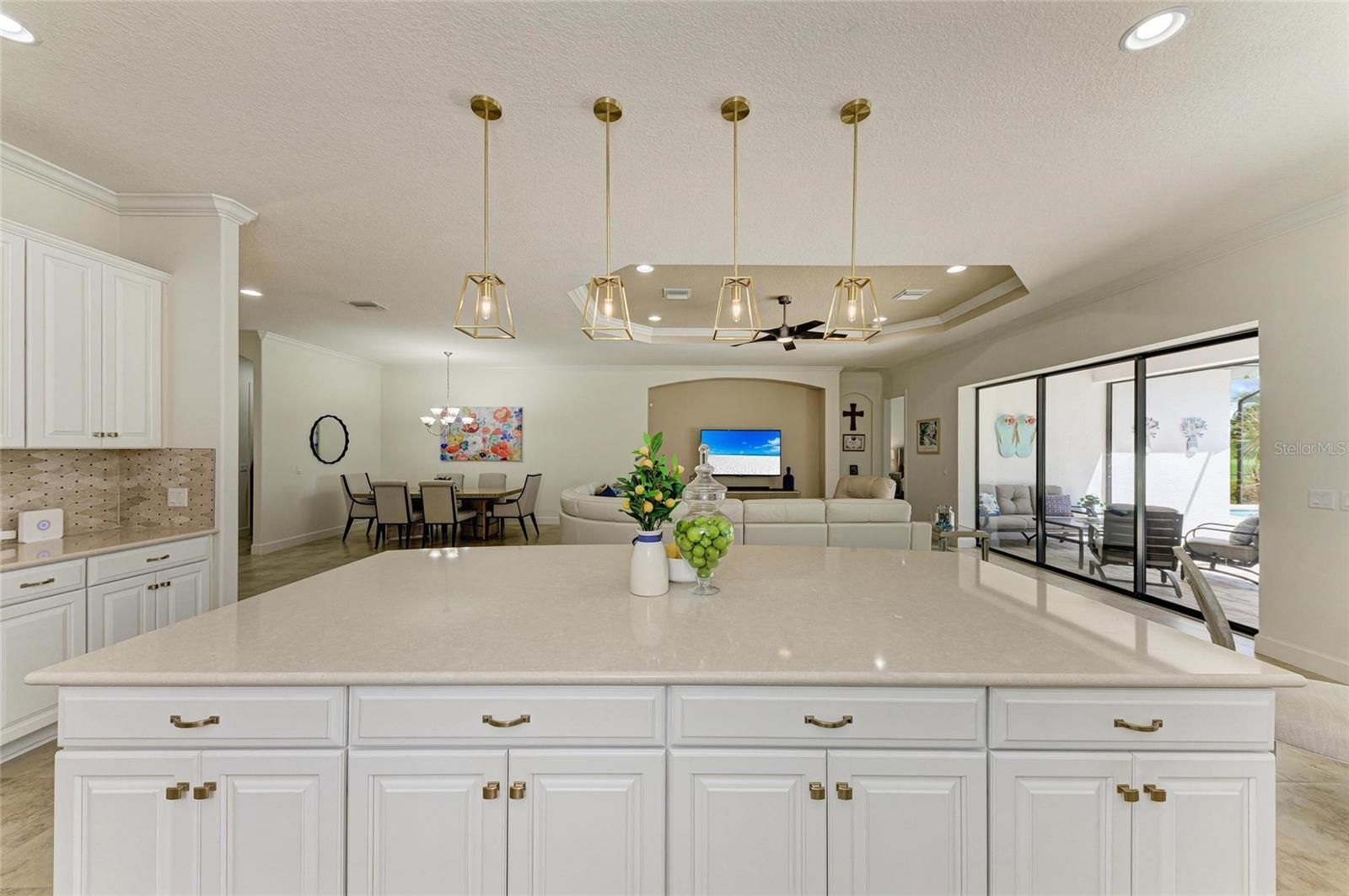 - Ceiling Fan(s), Crown Molding, Eat-in Kitchen, Kitchen/Family Room Combo, Open Floorplan, Thermostat, Tray Ceiling(s), Walk-In Closet(s), Window Treatments
