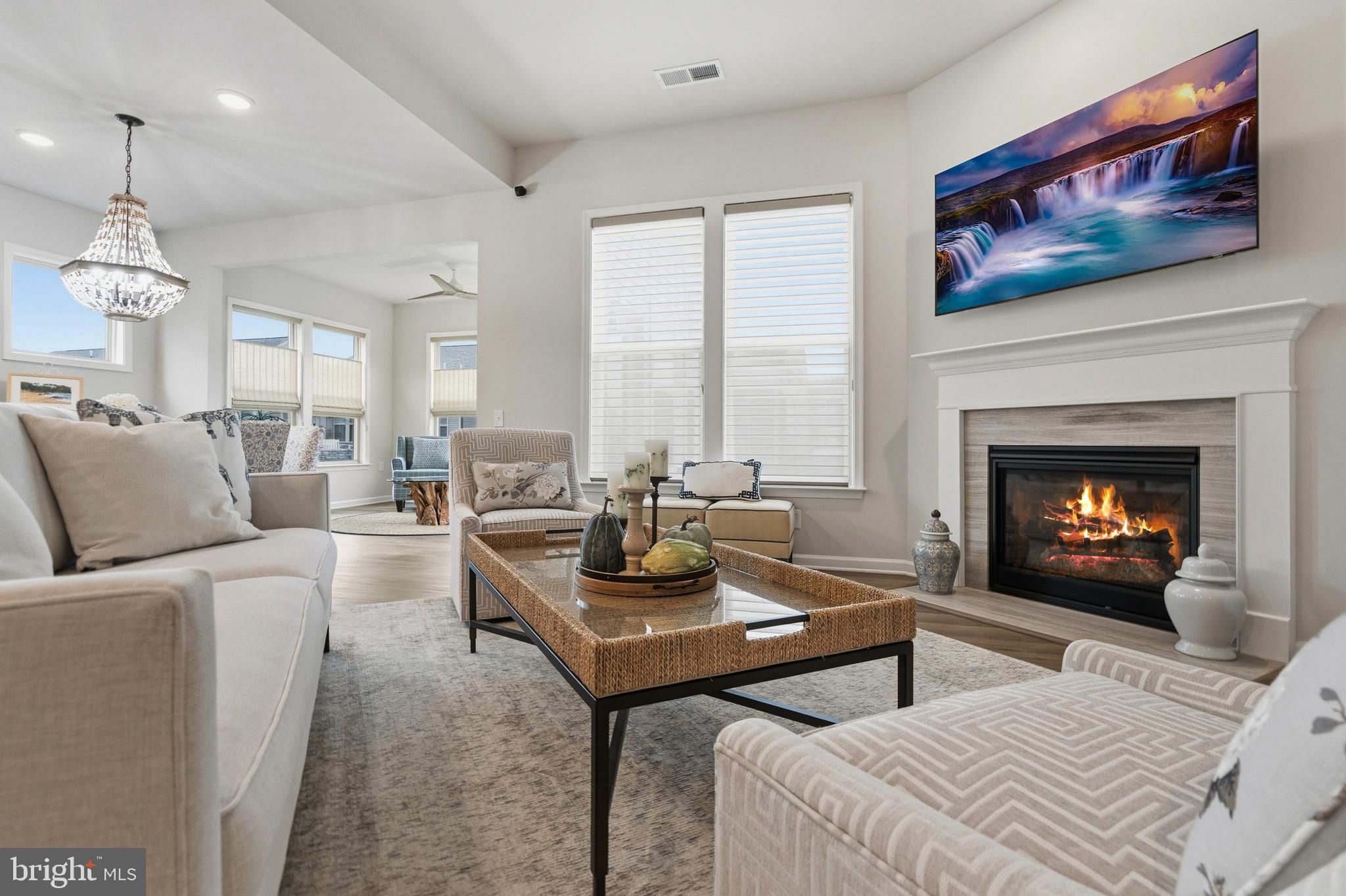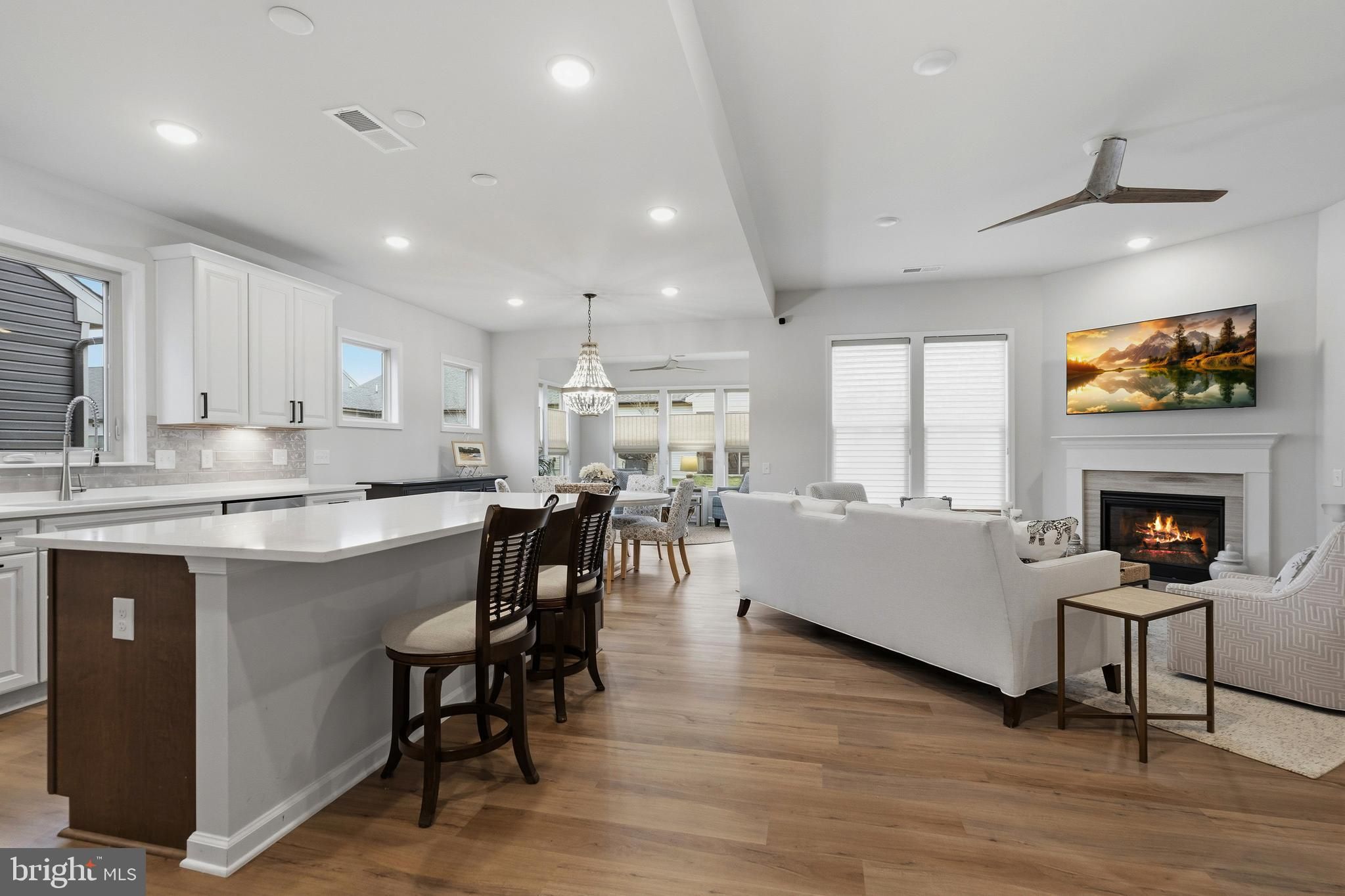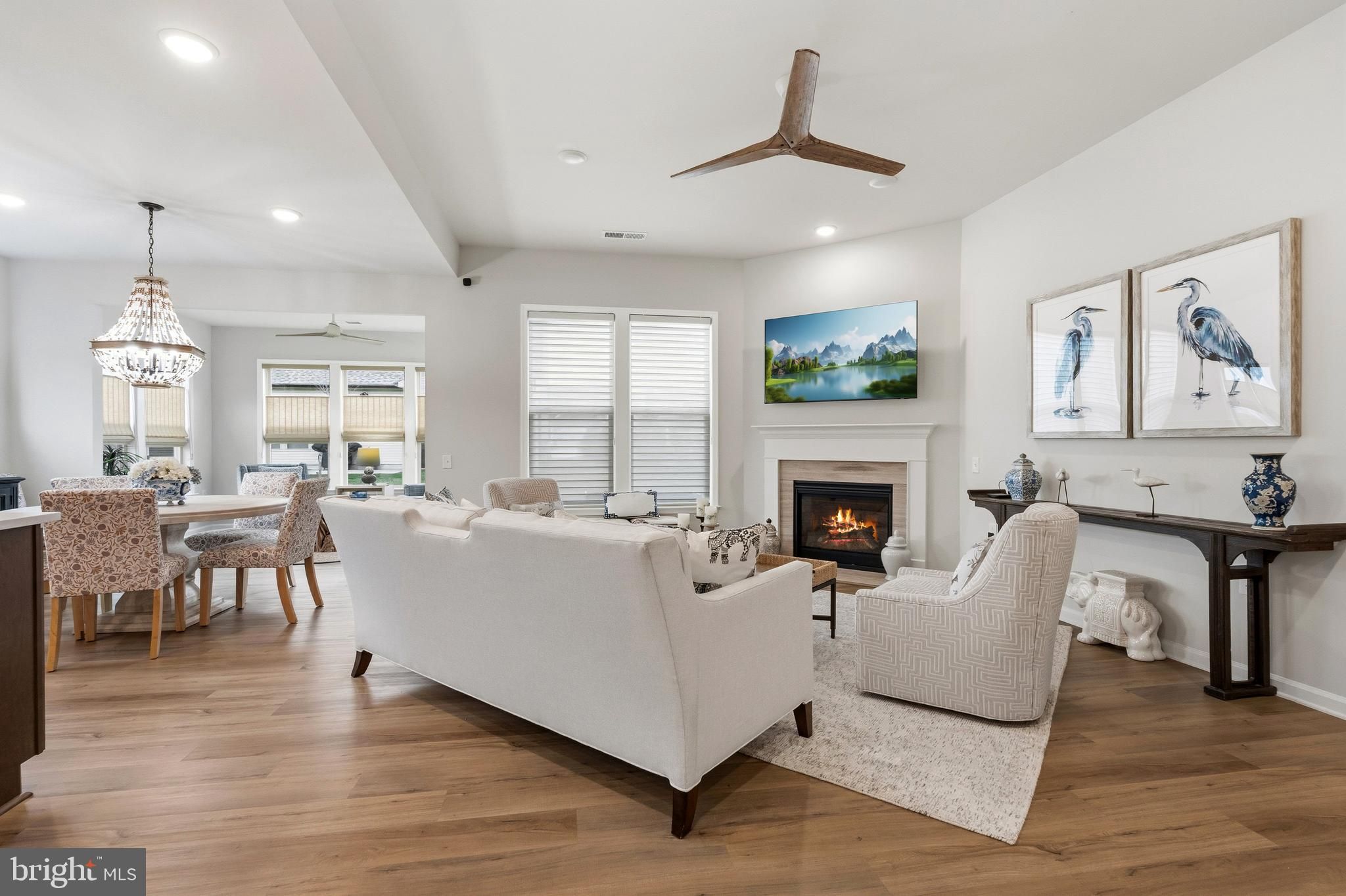 This gorgeous single-family home beautifully showcases the sought-after Abbeyville floor plan at Montebello Farm an exclusive 55+ gated Del Webb community designed for elegant, low-maintenance living. Thoughtfully enhanced with custom designer upgrades, the home features a beautifully designed kitchen pantry, a spacious custom walk-in closet in the Primary Suite, and custom window treatments throughout, creating a refined and inviting atmosphere. Designed for both comfort and effortless entertaining, the home offers a seamless flow between the well-appointed kitchen, dining area, and gathering room, making it ideal for everyday living as well as holiday gatherings. Just off the gathering room, a bright unmatched sunroom provides a relaxing space filled with natural light. A versatile flex room offers the perfect setting for a hybrid home office, library, or cozy den, while a private guest suite at the front of the home ensures comfort and privacy for visiting family and friends. This 1,816-square-foot residence features 2 bedrooms and 2 bathrooms, thoughtfully designed for single-level convenience and modern living. Living in Montebello means embracing an active and vibrant lifestyle. Residents enjoy a variety of clubs, social opportunities, and resort-style amenities centered around the 14,000-square-foot Guilford House, the heart of the community. Amenities include an outdoor pool with shaded cabanas and lounge seating, an indoor pool and spa, social hall with demonstration kitchen, game room, movement studio, fitness center, craft room, and cards room with bar area. An onsite Lifestyle Director curates engaging activities and events, helping residents build connections and enjoy everything the community has to offer. At Montebello, new friendships, new passions, and an exceptional lifestyle await.