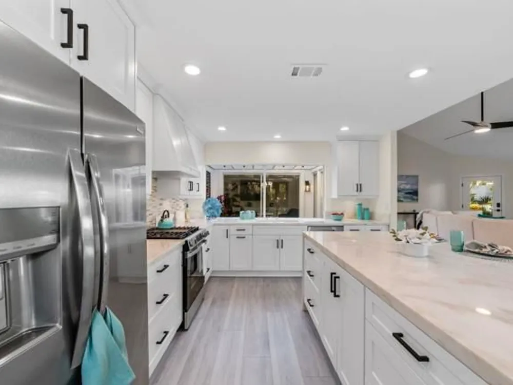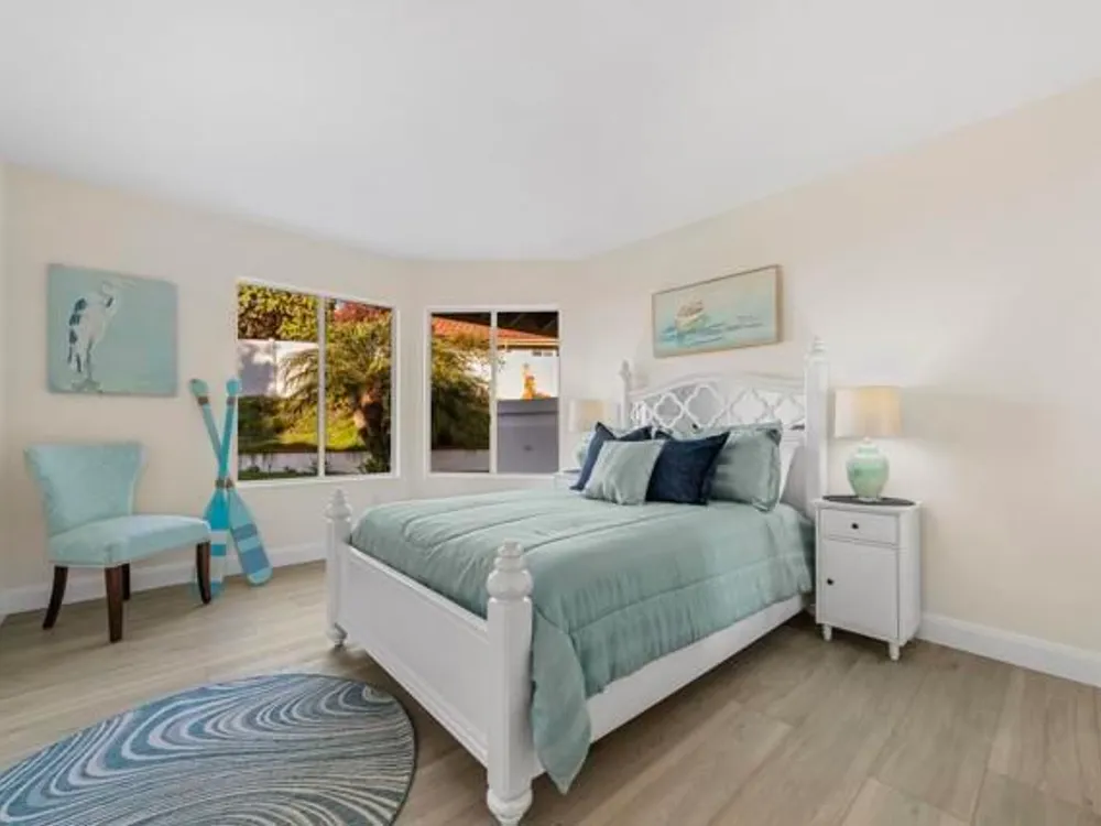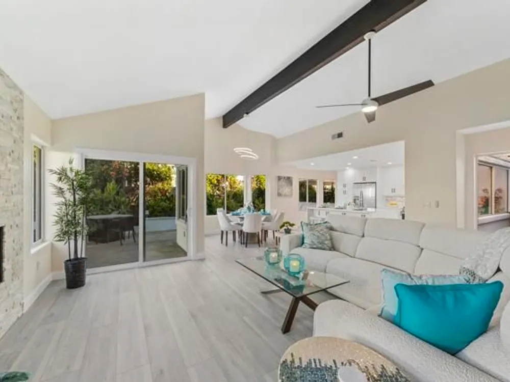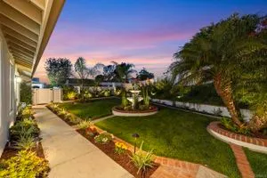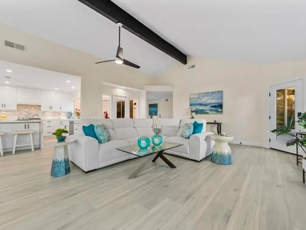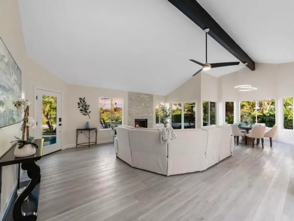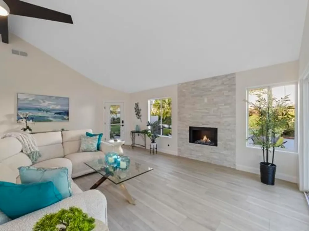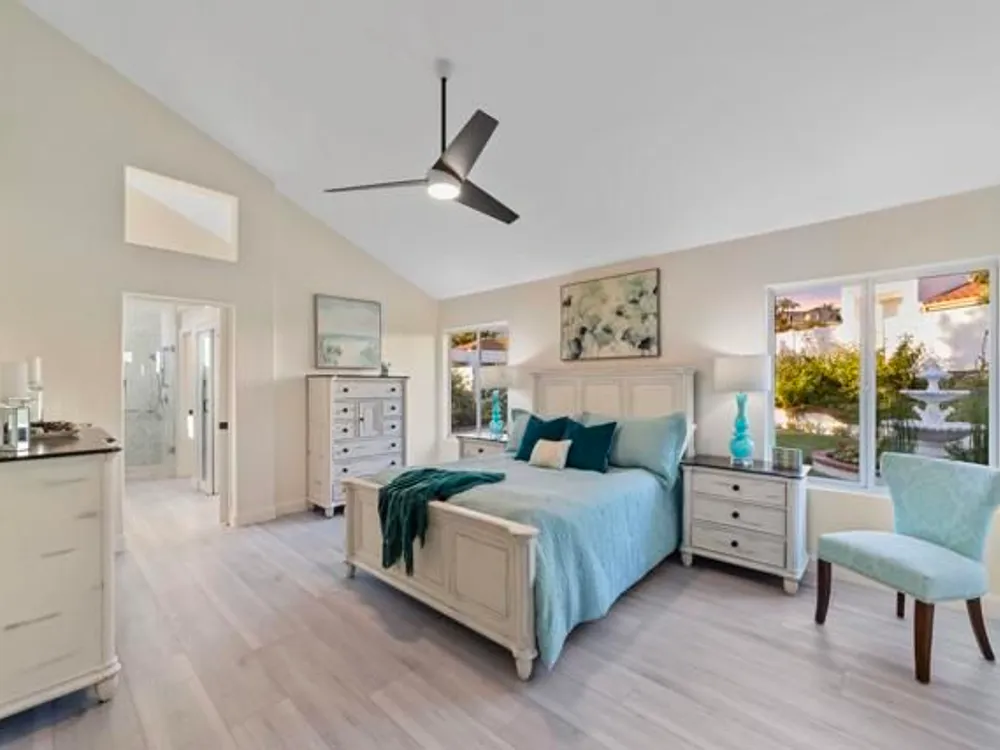 ABSOLUTELY STUNNING COASTAL ELEGANCE: COMPLETELY REVITALIZED RETREAT! NO EXPENSE SPARED! St. Tropez Model. 2 Beds | 2 Baths | Office | One of the Largest, Most Beautiful Yards in the OHCC Community. Welcome to your very own Oasis in the heart of Oceanside! This remarkable property has been revitalized into a glamorous showstopper, blending luxury, modern comfort, and timeless coastal charm. Your Private Shangri-La Awaits—From the moment you arrive, you're greeted by one of the most captivating front yards in the area--Set on an expansive 84’ x 102’ lot, this lush tropical paradise features: • A stunning array of mature tropical palms, vibrant flowers, and succulents • A grand centerpiece fountain • Cooling (pool-sized!) lush green lawn • Raised vinyl privacy fencing for total seclusion • Recently showcased on the Garden Tour, this space is not only serene, but truly extraordinary! • HOA maintains the front yard Interior Elegance & Open Concept Living Inside, natural light floods this fully reimagined open floor plan with panoramic garden views from every window—blurring the lines between indoor luxury and outdoor beauty. A central atrium adds to the peaceful ambiance. The living room is anchored by a bold black beam, modern fan, and striking chandelier, adding depth and drama to the vaulted ceiling. Relax in front of the new floor-to-ceiling stacked stone gas fireplace. The Kitchen Steals the Show: Entertain in style with this chef-inspired masterpiece: • Oversized 8’ island topped with glowing translucent quartzite • Stainless steel appliances & sleek white shaker cabinets • Slide-in gas range with custom hood • Single basin white ceramic sink • Recessed & under-cabinet lighting • Custom layout with incredible flow & functionality Luxury Retreat-Style Primary Suite The spacious primary suite is a tranquil haven, featuring: • Dramatic ceilings with a black beam & modern fan • Peaceful garden views • Huge walk-in custom closet • Spa-inspired ensuite with oversized marble-look shower, bench seat, glass doors, and a double-sink vanity with designer lighting More than Just a Bedroom: The sunny second bedroom overlooks the fountain through two corner windows—guests won’t want to leave! The hall bath is equally refined with: • Deep soaking tub • Rain shower head + handheld spray • Marble-look tile & elegant finishes Community Living at Its Best! Located in a vibrant 55+ community offering: • 18-hole executive golf course with no green fees • Jr. Olympic saltwater pool • Fitness center, 40+ social clubs & events • Activities include crafts, cards, billiards, art, SAILING & RV clubs, RV parking • All for incredibly $10-$15 yearly low fees! Nearly Everything is New • Newer HVAC • Newer Copper Plumbing Throughout • Fresh custom interior & exterior paint • Commercial-grade “beachy” luxury vinyl plank floors • Custom lighting & finishes throughout Live the Coastal Lifestyle Without Lifting a Finger--This home is more than just move-in ready—it’s an elevated way of life in a community where it feels like the cruise ship never leaves the dock. Don't miss your chance to own one of the most breathtaking and unique homes in Ocean Hills Country Club.