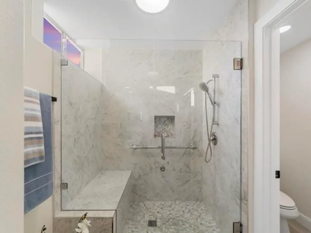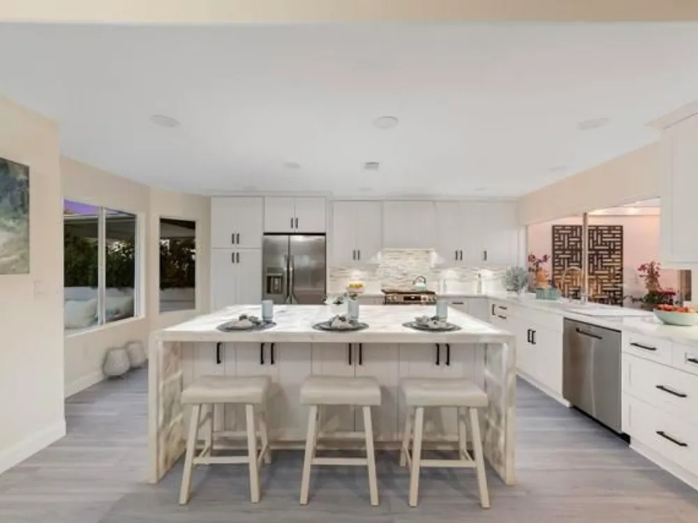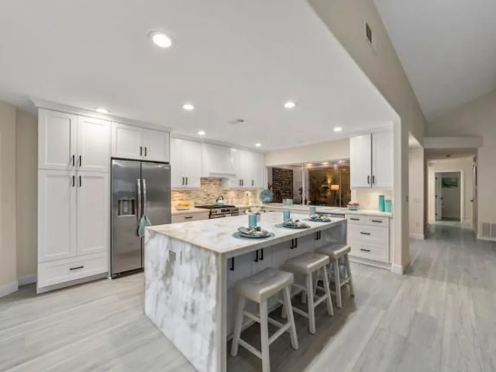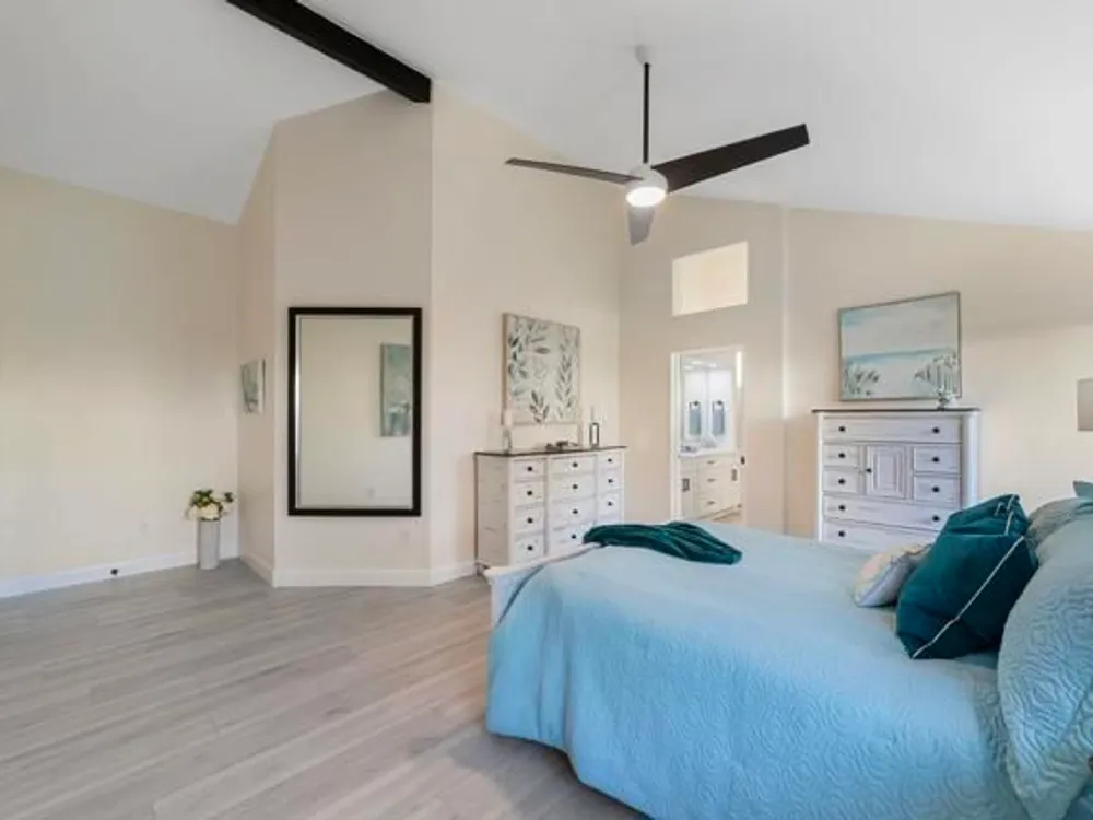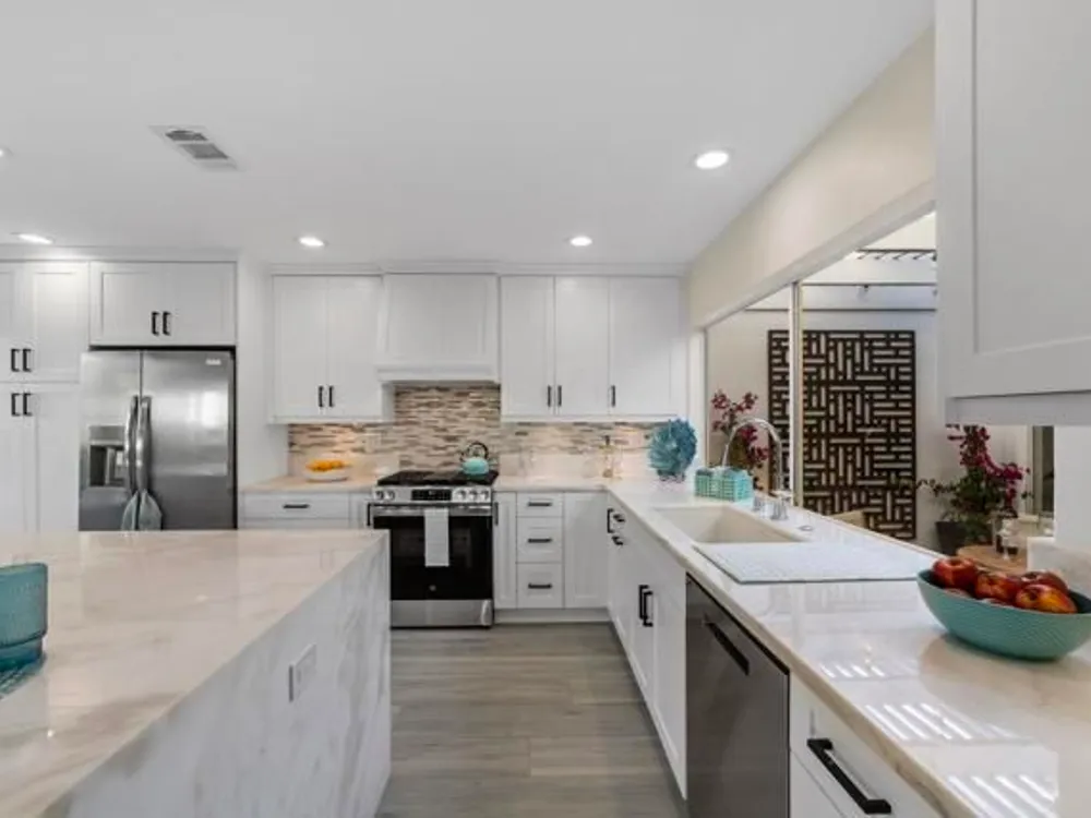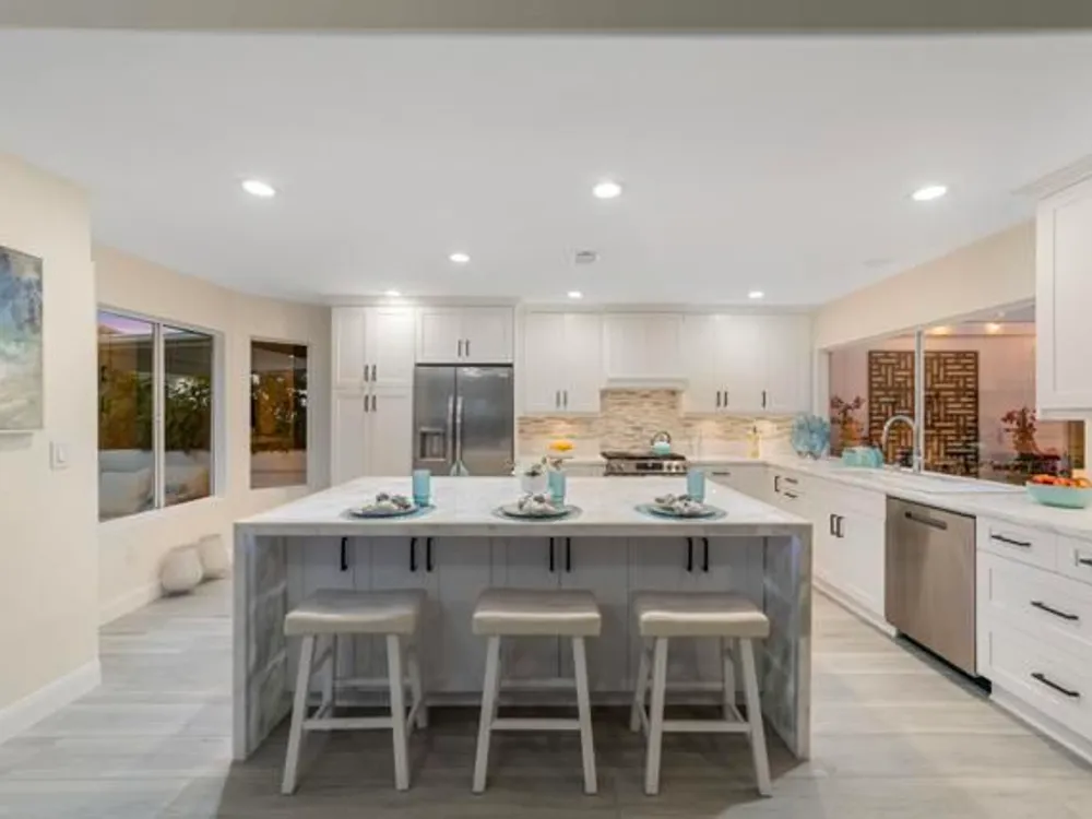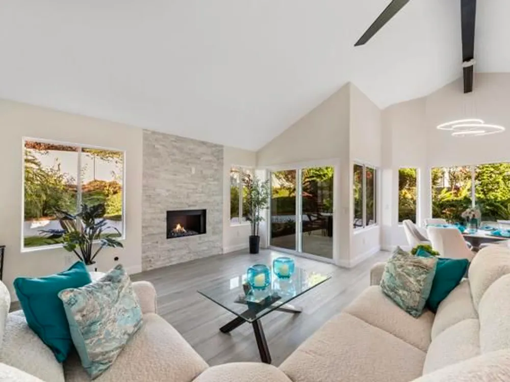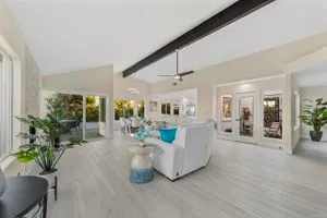ABSOLUTELY STUNNING COASTAL ELEGANCE: COMPLETELY REVITALIZED RETREAT! NO EXPENSE SPARED! St. Tropez Model. 2 Beds | 2 Baths | Office | One of the Largest, Most Beautiful Yards in the OHCC Community. Welcome to your very own Oasis in the heart of Oceanside! This remarkable property has been revitalized into a glamorous showstopper, blending luxury, modern comfort, and timeless coastal charm. Your Private Shangri-La Awaits—From the moment you arrive, you're greeted by one of the most captivating front yards in the area--Set on an expansive 84’ x 102’ lot, this lush tropical paradise features: • A stunning array of mature tropical palms, vibrant flowers, and succulents • A grand centerpiece fountain • Cooling (pool-sized!) lush green lawn • Raised vinyl privacy fencing for total seclusion • Recently showcased on the Garden Tour, this space is not only serene, but truly extraordinary! • HOA maintains the front yard Interior Elegance & Open Concept Living Inside, natural light floods this fully reimagined open floor plan with panoramic garden views from every window—blurring the lines between indoor luxury and outdoor beauty. A central atrium adds to the peaceful ambiance. The living room is anchored by a bold black beam, modern fan, and striking chandelier, adding depth and drama to the vaulted ceiling. Relax in front of the new floor-to-ceiling stacked stone gas fireplace. The Kitchen Steals the Show: Entertain in style with this chef-inspired masterpiece: • Oversized 8’ island topped with glowing translucent quartzite • Stainless steel appliances & sleek white shaker cabinets • Slide-in gas range with custom hood • Single basin white ceramic sink • Recessed & under-cabinet lighting • Custom layout with incredible flow & functionality Luxury Retreat-Style Primary Suite The spacious primary suite is a tranquil haven, featuring: • Dramatic ceilings with a black beam & modern fan • Peaceful garden views • Huge walk-in custom closet • Spa-inspired ensuite with oversized marble-look shower, bench seat, glass doors, and a double-sink vanity with designer lighting More than Just a Bedroom: The sunny second bedroom overlooks the fountain through two corner windows—guests won’t want to leave! The hall bath is equally refined with: • Deep soaking tub • Rain shower head + handheld spray • Marble-look tile & elegant finishes Community Living at Its Best! Located in a vibrant 55+ community offering: • 18-hole executive golf course with no green fees • Jr. Olympic saltwater pool • Fitness center, 40+ social clubs & events • Activities include crafts, cards, billiards, art, SAILING & RV clubs, RV parking • All for incredibly $10-$15 yearly low fees! Nearly Everything is New • Newer HVAC • Newer Copper Plumbing Throughout • Fresh custom interior & exterior paint • Commercial-grade “beachy” luxury vinyl plank floors • Custom lighting & finishes throughout Live the Coastal Lifestyle Without Lifting a Finger--This home is more than just move-in ready—it’s an elevated way of life in a community where it feels like the cruise ship never leaves the dock. Don't miss your chance to own one of the most breathtaking and unique homes in Ocean Hills Country Club.