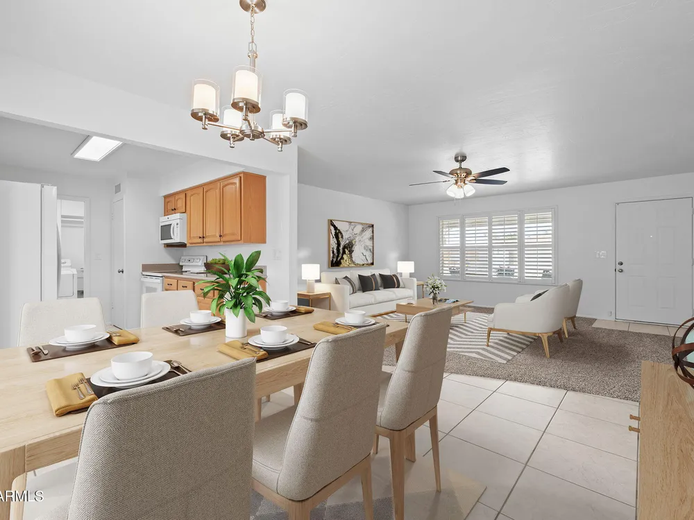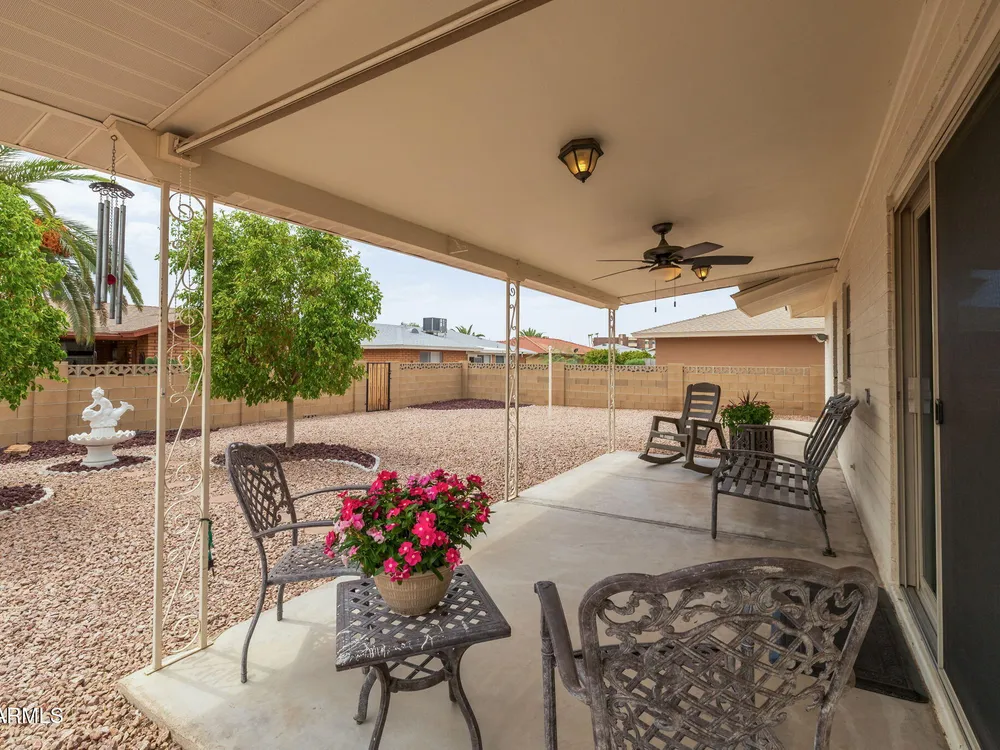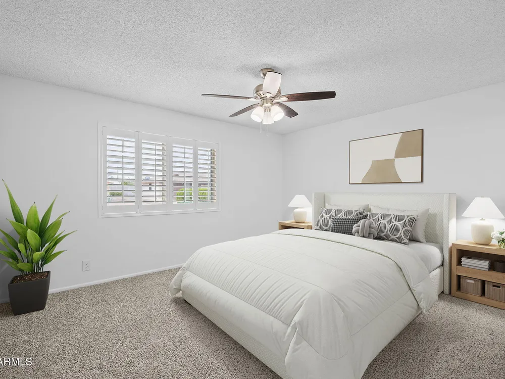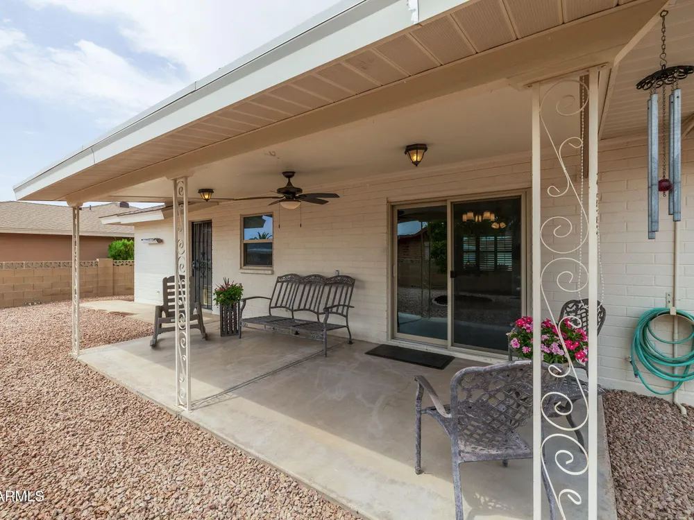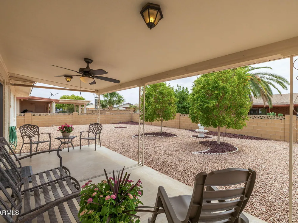 Welcome to your next chapter in the highly sought after Sunland Village. This well-maintained, CLEAN home is MOVE IN READY with brand new carpet, fresh interior paint throughout, BRAND NEW HVAC and newer windows, some with plantation shutters. The North/South facing lot allows you to enjoy the newer full block-fenced backyard or covered front patio perfect for quiet mornings or relaxed evenings. Whether you're looking to stay active or enjoy peaceful surroundings, this home offers the perfect blend of comfort, convenience, and community. Sunland Village is an adult 55+ community known for its resort-style living and unbeatable amenities including 3 swimming pools, pickleball and tennis courts, golf course, fitness center, woodworking shop, and a full calendar of social events and clubs. Home is located in a great location, close to the Golf Course, Restaurant and the Club House, and a very short walking distance to one of the pools and pickleball courts. No major roads to cross to get to the amenities.
