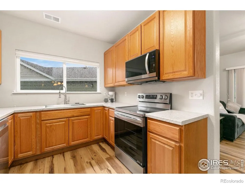 This like new 2-bedroom, 2-bath condo offers a great mix of comfort and convenience. It features brand new luxury flooring, brand new countertops, and brand new cabinets throughout, plus a full set of stainless steel appliances that are just a year old. The open layout makes the space feel roomy and functional. Being on the ground floor allows for easy access with no stairs. You also have unbeatable access to trails around Equalizer Lake and Houts Reservoir - it's a great spot for simply just getting outside. Take advantage of the community amenities including a pool and relaxing hot tub. The convenience of being near I25, your favorite shopping spots and great restaurants makes for quick commutes to these everyday destination. Whether you're looking for a low maintenance place to live or a great investment, this move-in ready condo is worth checking out. MOTIVATED SELLER WHO WOULD LOVE TO PUT A DEAL TOGETHER!