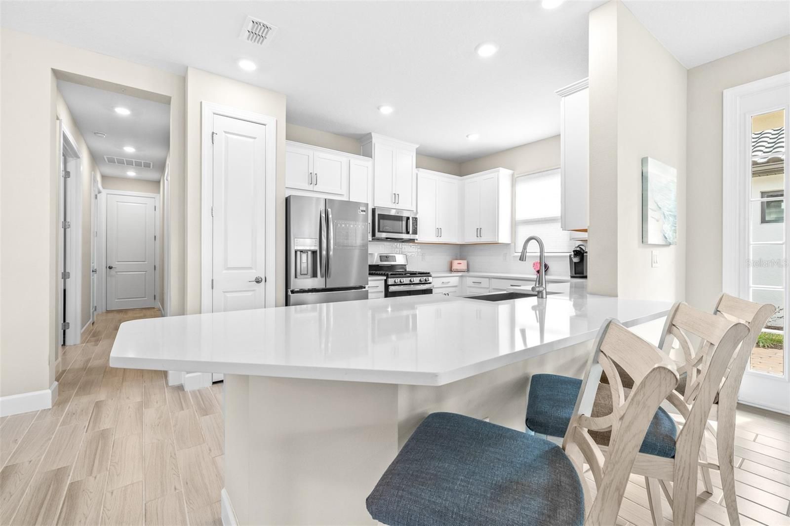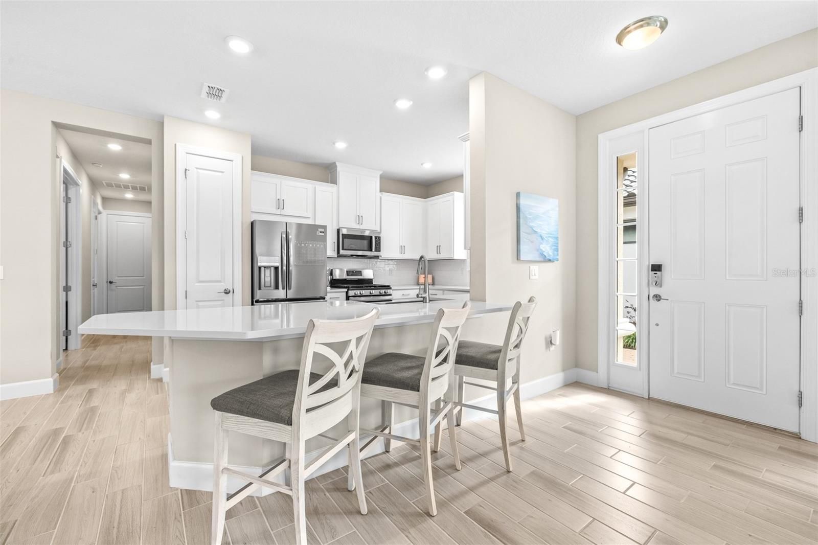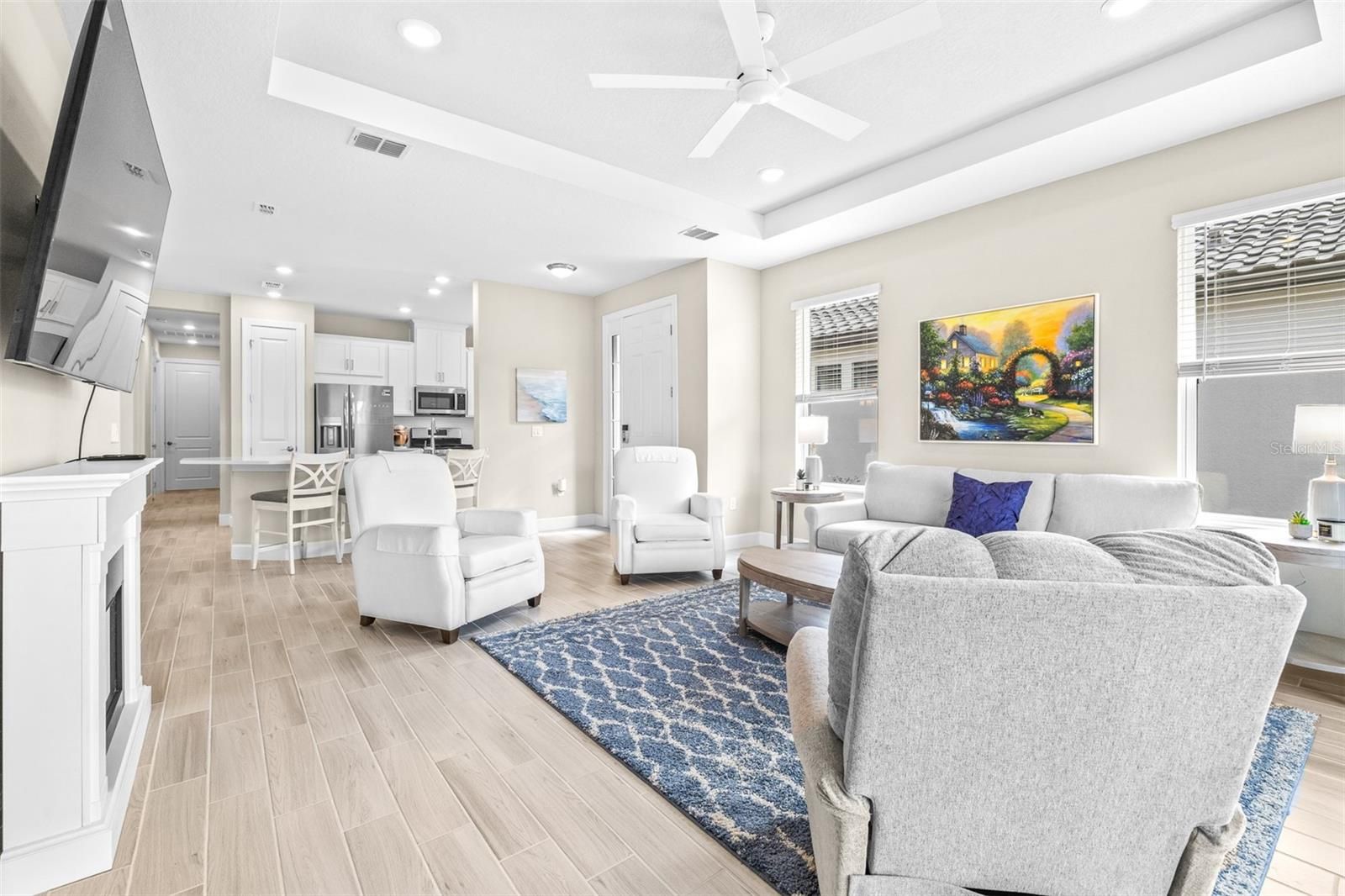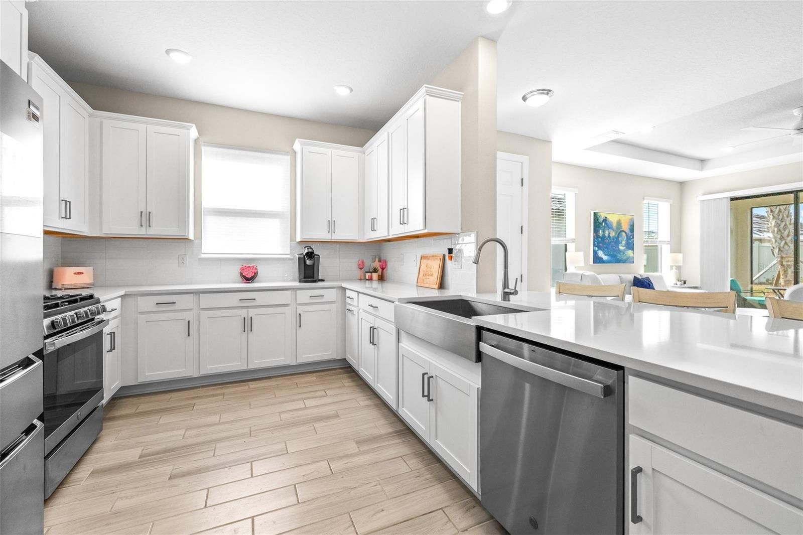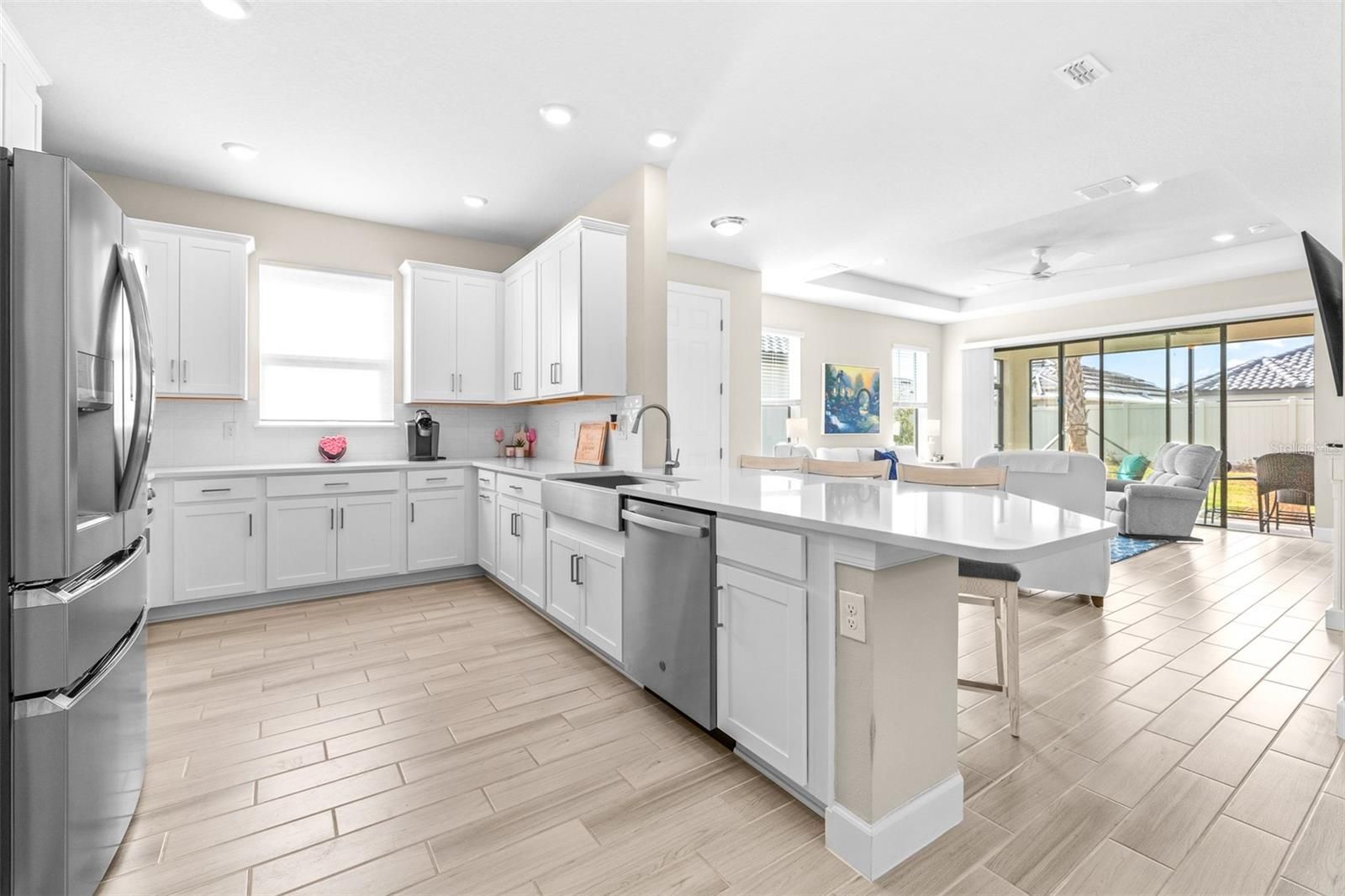 Short Sale. ***Short Sale Opportunity*** The previous buyer chose not to move forward while awaiting short sale approval, creating a fantastic opportunity for a new buyer to step in! Welcome to a life of comfort, convenience, and community in this beautifully upgraded, Mediterranean-inspired home located in the highly sought-after Esplanade at Wiregrass Ranch -- a gated 55+ active adult neighborhood designed for easy, low-maintenance living. This is a short sale, offering a rare chance to own a nearly new home at exceptional value. Built less than two years ago, this home features an open-concept floor plan with soaring 9-foot ceilings, neutral tones, and stylish wood-look tile flooring throughout the main living areas. Elegant tray ceilings in the living room, dining area, and primary suite add a custom, elevated touch. The gourmet kitchen is ideal for entertaining, complete with quartz countertops, a designer backsplash, farmhouse sink, high-end stainless appliances, and a gas range. A French door refrigerator with flex drawer and spacious freezer makes everyday living a pleasure. The generous primary suite offers a peaceful escape, featuring a large walk-in closet and spa-like bath with dual quartz vanities and a glass-enclosed shower with built-in bench. A bright flex room behind French doors can serve as a home office, craft space, or third bedroom. Enjoy your morning coffee on the screened lanai overlooking a private, beautifully landscaped backyard. Additional highlights include upgraded 8-foot doors throughout, a tankless water heater, water softener, laundry room with utility sink, and custom blackout shades. At Esplanade, every day feels like vacation. Residents enjoy resort-style amenities including a clubhouse, heated pool, tennis and pickleball courts, fitness center, café, social events, and a dog park. HOA fees include full exterior maintenance, cable, and internet so you can spend less time on chores and more time living life to the fullest. Just minutes from top-rated healthcare, shopping, dining, and entertainment, and a short drive to Tampa, the Gulf Coast beaches, and Orlando's attractions, this is the perfect place to call home. Don't miss this limited opportunity to secure a stunning home in one of Wesley Chapel's premier 55+ communities. Schedule your private showing today!