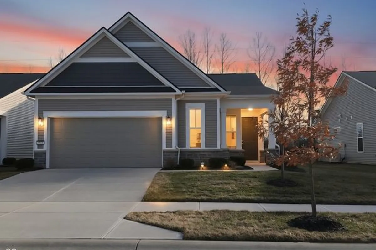 Hang up that snow shovel and live the 55+resort life. Take the winter to settle in so you will be ready to enjoy that morning coffee and evening cocktails relaxing on your patio, as you enjoy nature on your tree lined lot. Then step inside to a luxurious, turn-key home. The gourmet kitchen is complete with built-in oven, loads of Quartz countertops, upgraded 42" white cabinets with pull-out shelving add a touch of classic charm, accented with a neutral backsplash. The large kitchen island is ready for everything from casual breakfasts to elaborate feasts or chatting over a cup of coffee with friends. Electric cooktop, built-in oven and microwave stand ready to handle all your Chef's adventures. Designer hood fan adds a classy touch. New light fixtures over the kitchen island and in the dining room add to the character of this amazing home. The primary bathroom is your own personal spa, featuring a double vanity where morning routines become a breeze and a walk-in shower that promises a refreshing start or a relaxing end to your day. Guests will enjoy their own area of relaxation in their own bathroom with tall vanity and tub/shower combo. Corner windows in the den lets the sun stream in to brighten your work or leisure. Garage lovers will enjoy the extra bump-out storage area. It's perfect for bike storage, or workshop. Outside, the porch whispers promises of lazy afternoons with lemonade, while the patio is practically begging for barbecues and starlit conversations. The laundry Room would make Joanna Gaines proud. If you're craving a dip, the community pool is just a splash away! The Del Webb lifestyle comes to life here with a Clubhouse where there are a multitude of clubs, activities & friends. Outside is a heated pool, pickleball, tennis & bocce courts. Fee includes all lawn care, including trimming, mulch, weeding and fertilizer, and snow removal. Home borders a golf course with walking and biking trail down the street. Del Webb is a lifestyle not just a home.