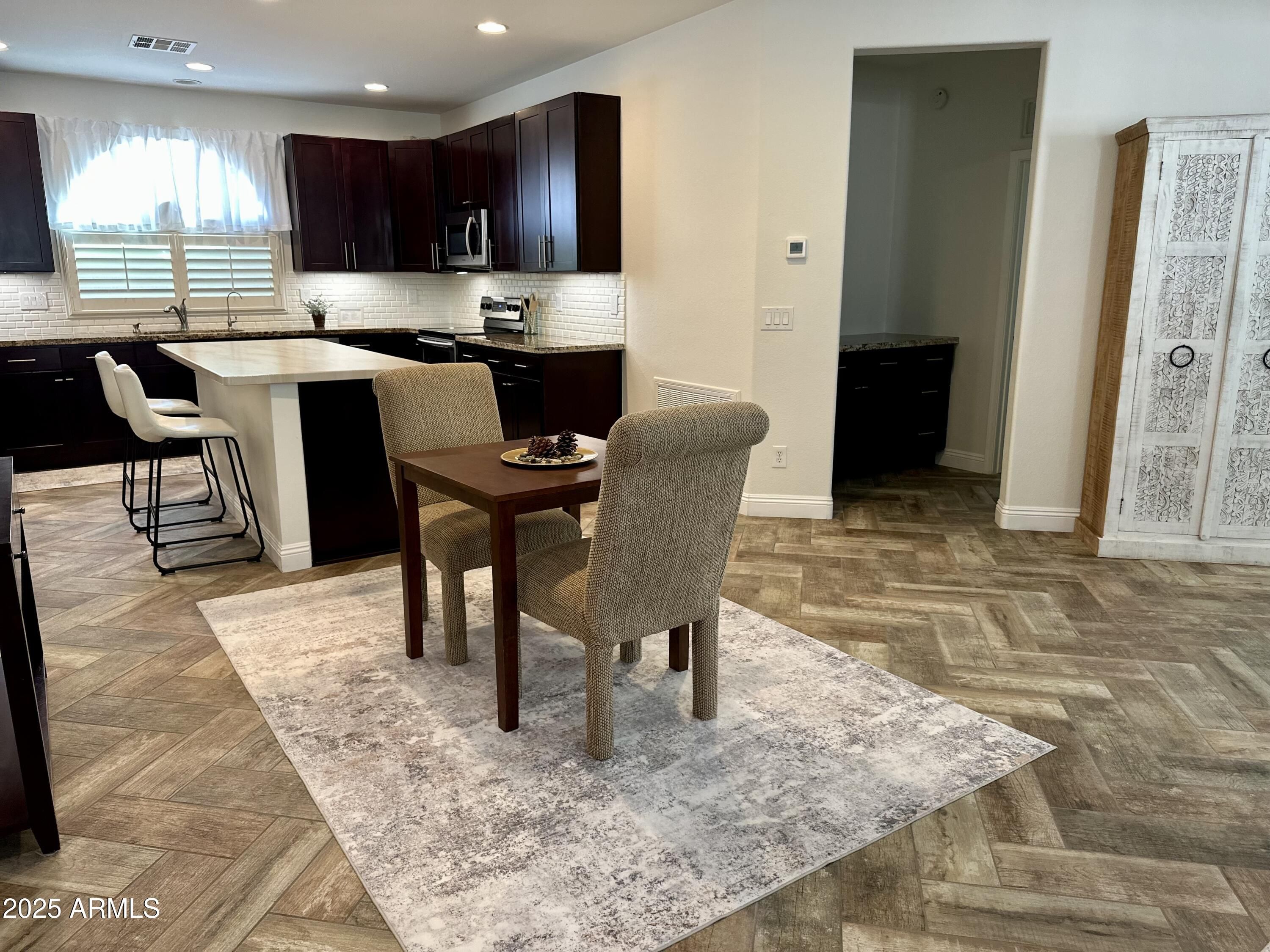 Welcome to Luxury 55+ Living in Trilogy at Power Ranch! This beautifully updated 2 bedroom + den, single-level home offers the perfect blend of comfort, functionality, and resort-style living in one of Gilbert's most desirable active adult communities. Step inside to an open-concept floorplan featuring tile and luxury vinyl flooring, fresh interior and exterior paint, and an extended living room space perfect for entertaining or relaxing. The kitchen is a chef's dream, showcasing pull-out cabinet trays, modern appliances, and plenty of storage, while power shades and custom farmhouse shutters add a touch of elegance throughout. Enjoy peace of mind with a new roof installed in 2025, newer HVAC system, and a drinking water filtration system. The garage has been upgraded with an epoxy-coated floor, ideal for both storage and clean functionality. Step outside to your 400 sq ft covered patio, ideal for year-round outdoor dining or enjoying Arizona's beautiful sunsets. Trilogy at Power Ranch is an award-winning gated 55+ golf community offering an unmatched lifestyle. Residents enjoy access to championship golf, heated resort-style pools, pickleball and tennis courts, fitness centers, and a wide array of clubs, classes, and community events. Whether you're into yoga, woodworking, wine tasting, hiking, or culinary classes, there's something here for everyone. Located in the heart of Gilbert, Arizona, Trilogy offers easy access to shopping, dining, and medical facilities, while maintaining a quiet, resort-style atmosphere. Don't miss this rare opportunity to own a turnkey home in one of the East Valley's most sought-after 55+ communities.