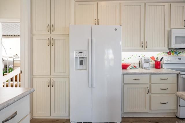 Wecome to Rancho Monserate Country Club! This charming 3 bedroom two bath home features light-filled living space on a beautifully landscaped corner lot with sweeping views. The open concept kitchen and dining area create a warm, welcoming space...perfect for entertaining or enjoying peaceful meals with family and friends. Step outside to a spacious covered deck and inviting patio surrounded by lush gardens. The thoughtfully designed yard features mature fruit trees, colorful shrubs and flowers, a vegetable garden, potting area and a tranquil waterfall...an ideal setting for relaxation. Additional highlights include a large storage shed, multiple sitting areas, covered carport, and solar power. Residents enjoy exceptional amenities including free golf, tennis, pickle ball, pool, spa, clubhouse and RV parking. Experience cool costal breezes, picturesue scenery in an active 55 + community. This is one of the community's premier lots, and a home that is a true work of art, lovingly created and maintained now ready for its next owner to enjoy!