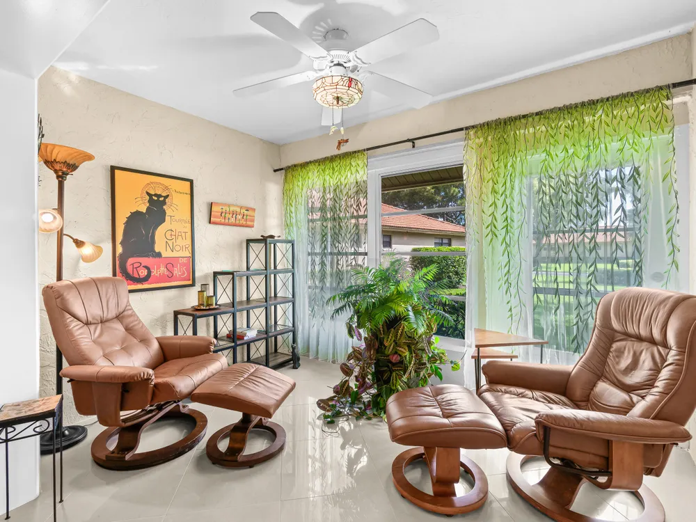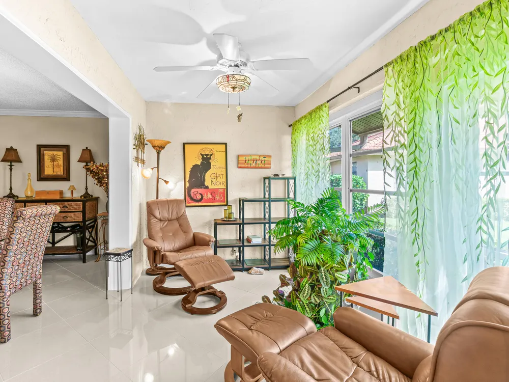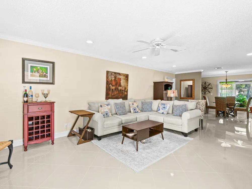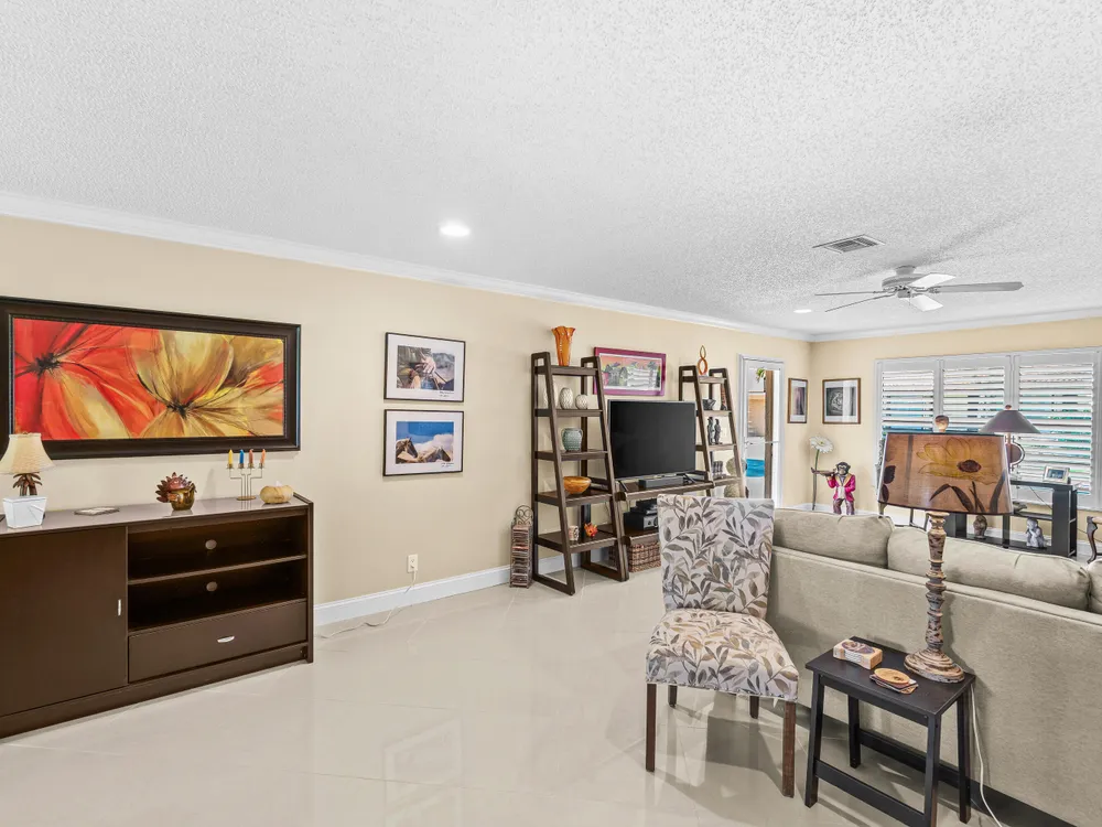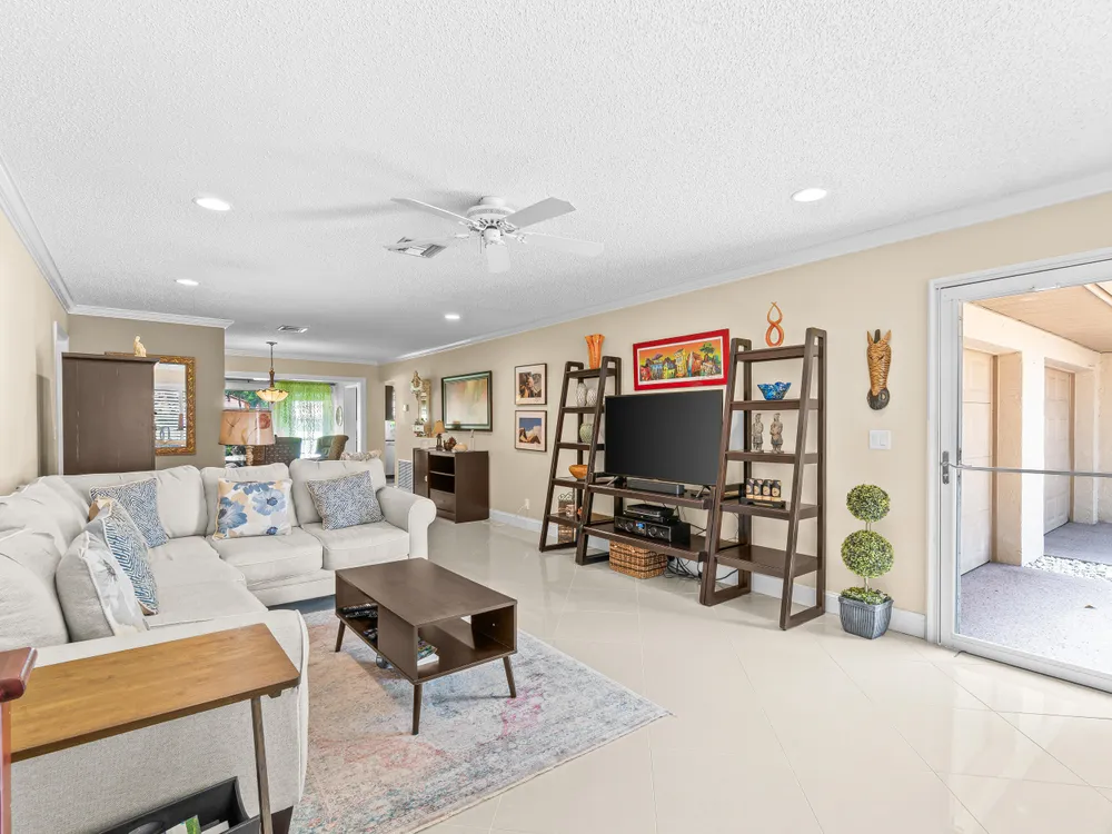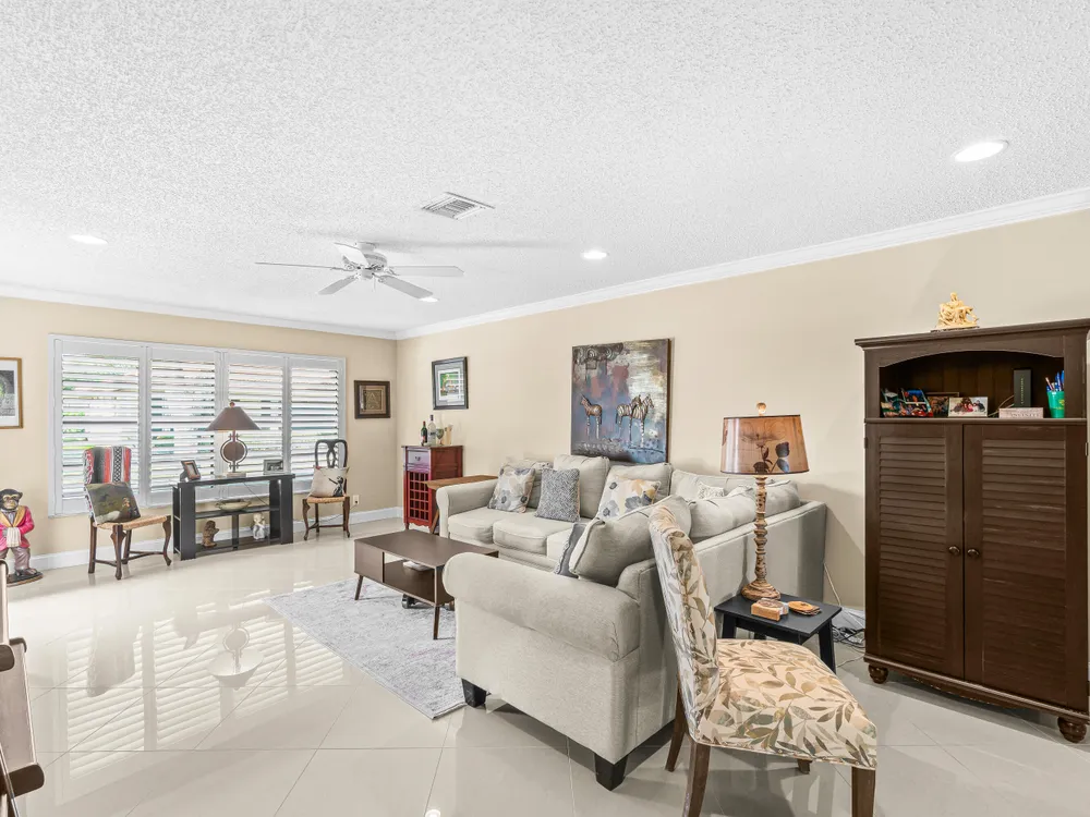 This one won't last long--priced to sell quickly! Beautiful tile flooring flows throughout the main living areas, and the Florida room has been opened up to provide additional living space. The updated kitchen features modern finishes, while both bathrooms offer stylish walk-in showers. Bedrooms include custom built-out closets for added convenience and organization. Elegant details such as plantation shutters, 5-inch baseboards, crown molding, and recessed lighting enhance the home's charm. Just steps from the clubhouse and community pool, this villa offers the perfect blend of comfort and convenience. Enjoy a sparkling saltwater pool, clubhouse with library and billiards, and a welcoming, active social atmosphere. The association fee covers cable, water, sewer, trash, roof maintenance,
