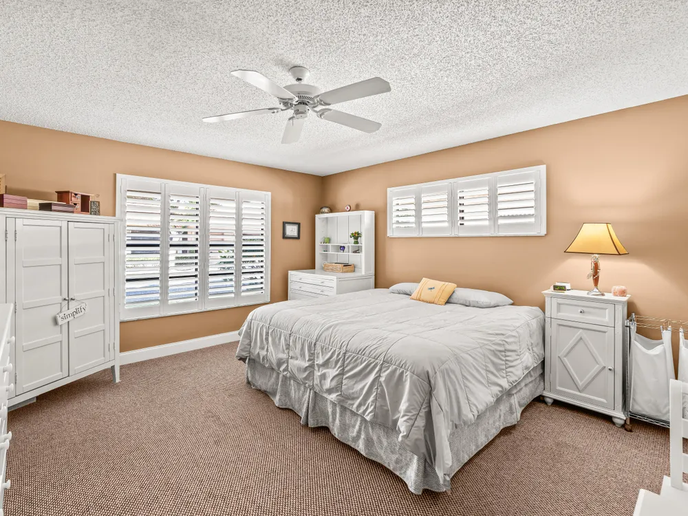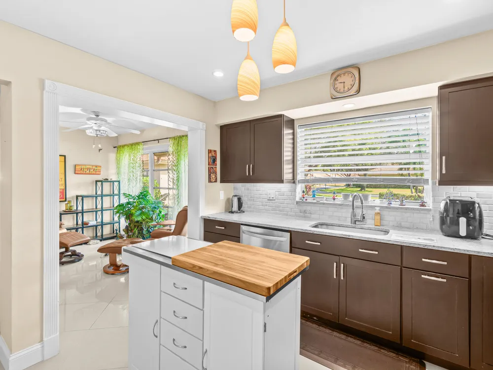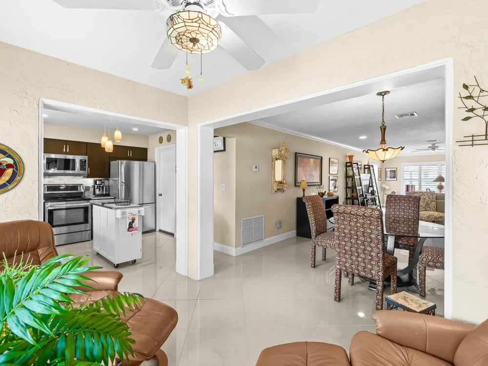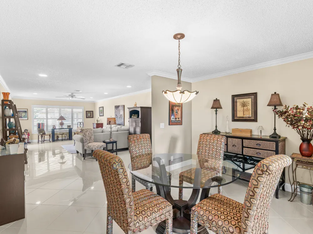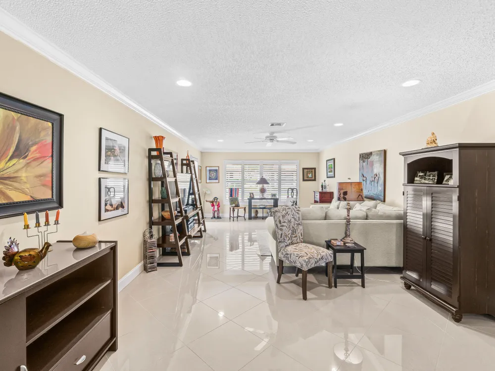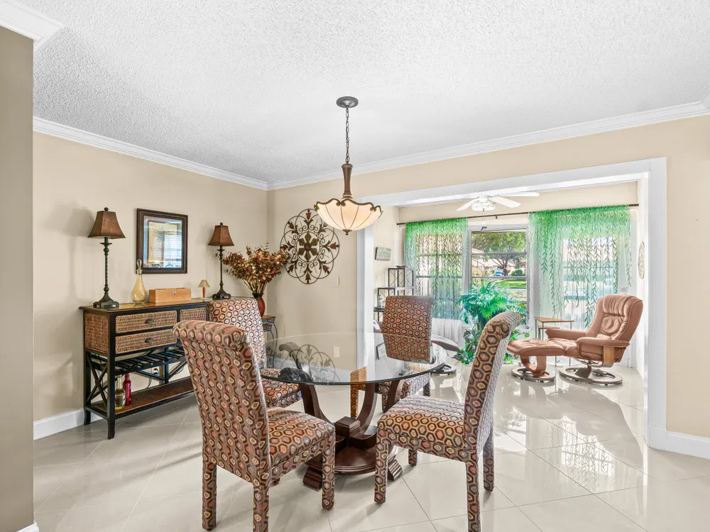 This one won't last long--priced to sell quickly! Beautiful tile flooring flows throughout the main living areas, and the Florida room has been opened up to provide additional living space. The updated kitchen features modern finishes, while both bathrooms offer stylish walk-in showers. Bedrooms include custom built-out closets for added convenience and organization. Elegant details such as plantation shutters, 5-inch baseboards, crown molding, and recessed lighting enhance the home's charm. Just steps from the clubhouse and community pool, this villa offers the perfect blend of comfort and convenience. Enjoy a sparkling saltwater pool, clubhouse with library and billiards, and a welcoming, active social atmosphere. The association fee covers cable, water, sewer, trash, roof maintenance,