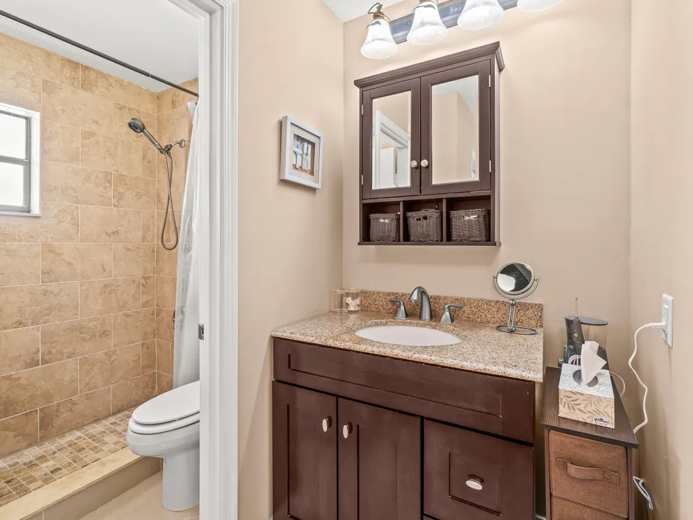 - Pantry, Pull Down Attic Stairs, Walk-In Closet(s), Florida Room, Living/Dining Room, Blinds, Plantation Shutters, Separate Shower