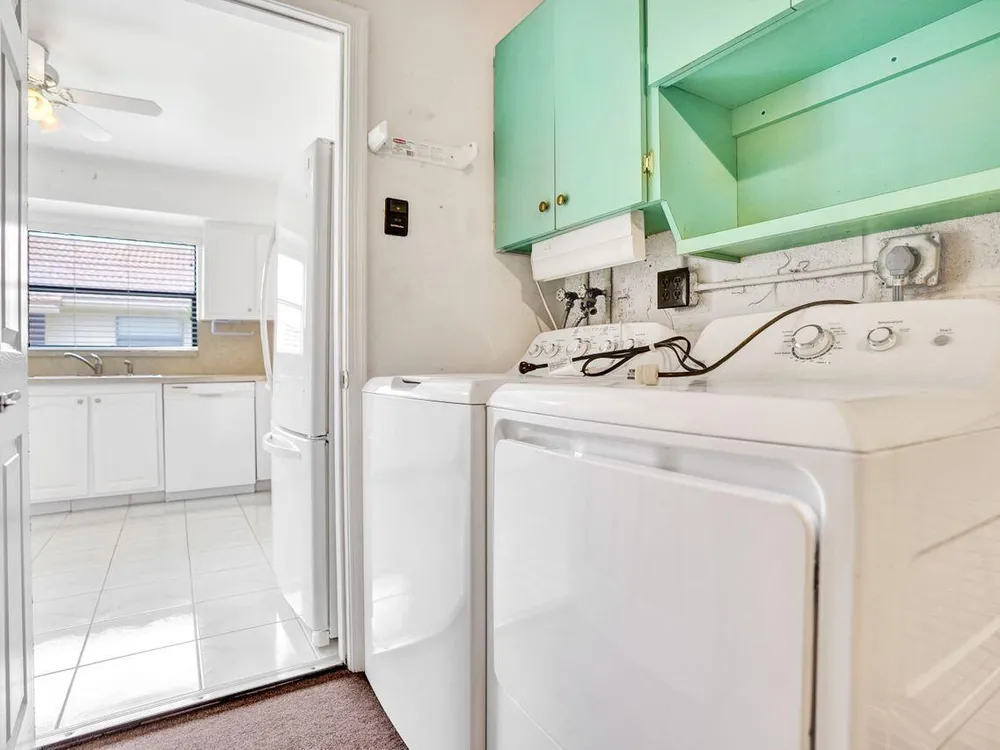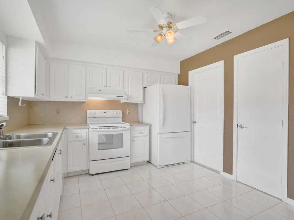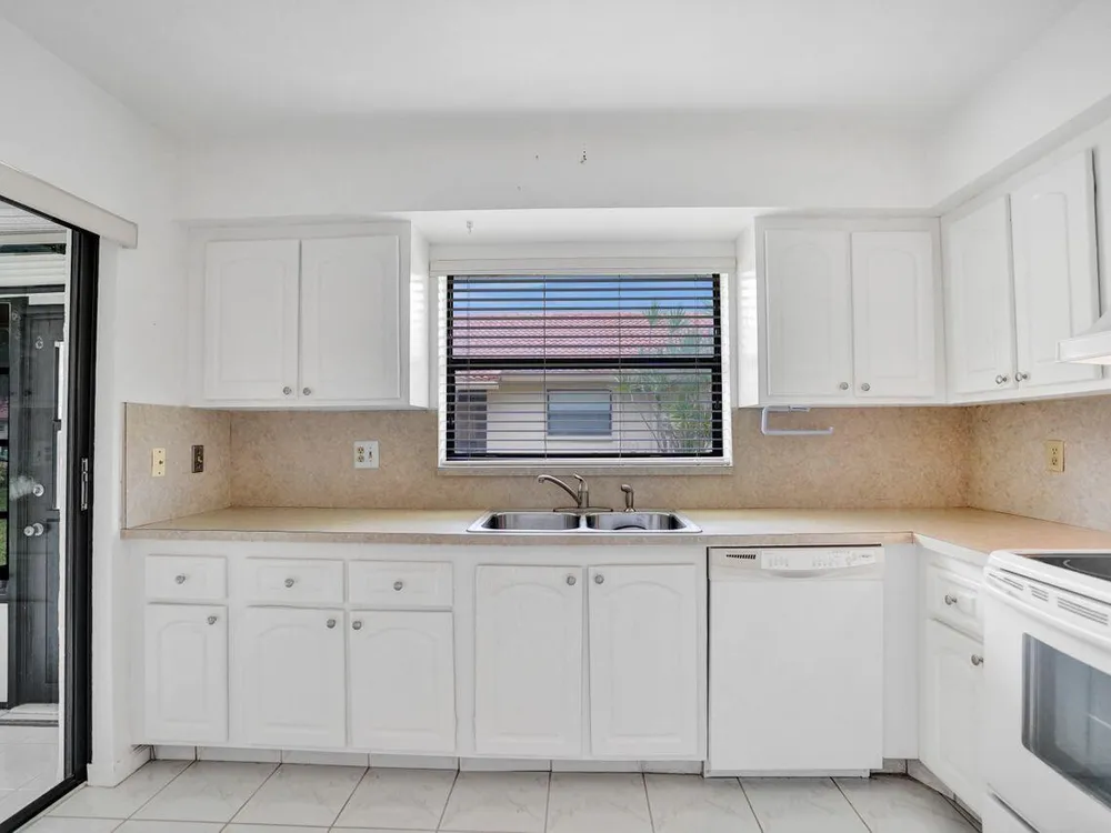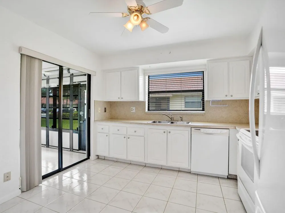 Bright & Immaculate 2 Bed / 2 Bath Corner Villa in the Desirable 55+ Community of Bent Tree. This exceptionally clean corner villa offers 2 bedrooms and 2 baths in one of the area's most sought-after 55+ communities. Step into a light-filled kitchen featuring crisp white cabinetry and matching white appliances, creating a cheerful space for cooking and entertaining. Freshly painted walls and ample natural light enhance the home's welcoming atmosphere. Both bathrooms have been stylishly updated with granite-topped vanities, and the newer washer and dryer provide modern convenience. The cozy carpeted living room flows seamlessly into a private lanai--perfect for your morning coffee or an evening wind-down.
