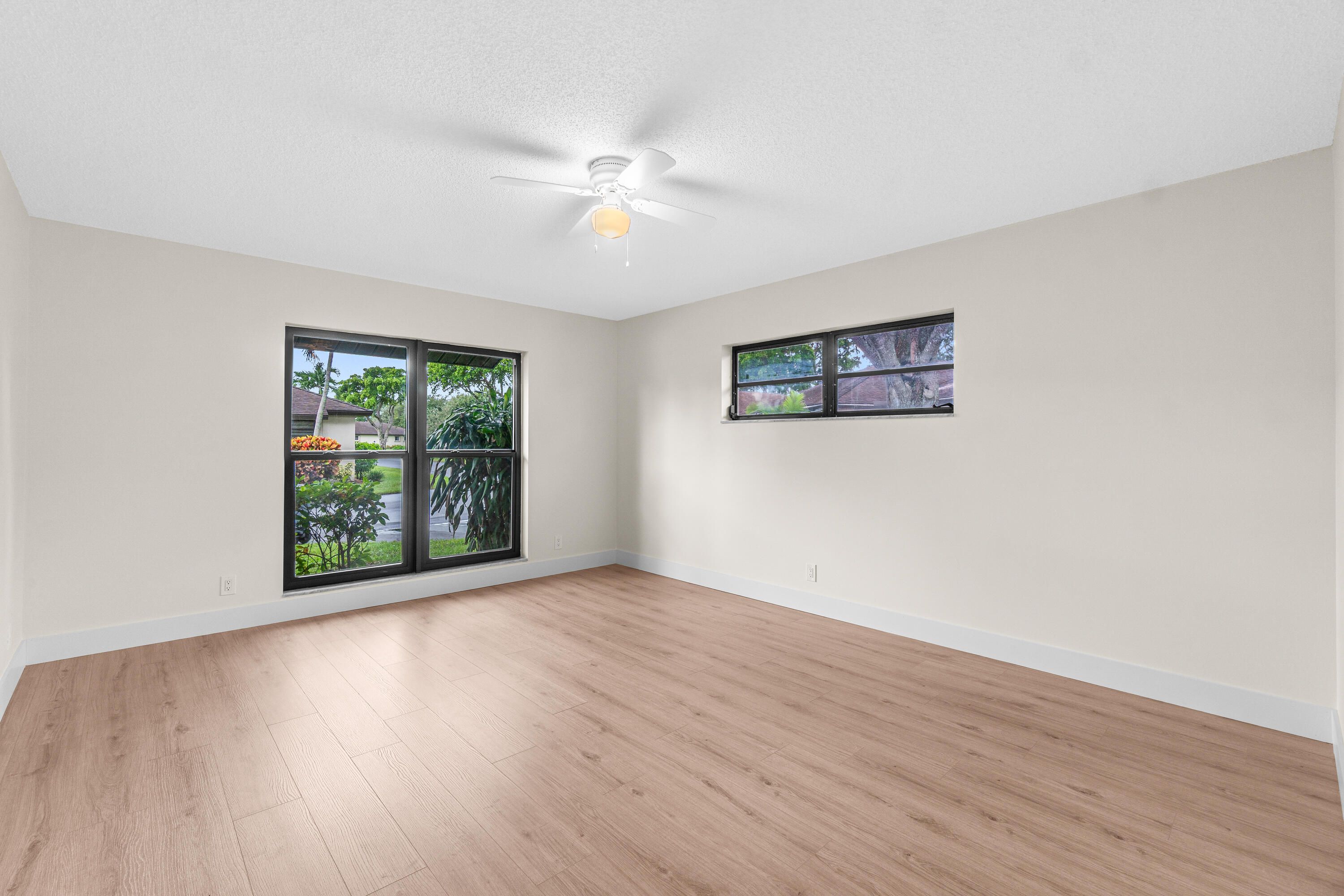 PRICED TO SELL & BEST VALUE IN THE COMMUNITY! This home was purchased as the owner's forever home and renovated top to bottom with no corners cut. A family relocation back to New York creates a rare opportunity for the next buyer to step into a truly turnkey, fully upgraded villa. This brand new, fully renovated 2 bedroom, 2 bath villa blends modern design, comfort, and peace of mind. Every detail has been thoughtfully selected from sleek 2'x4' ceramic tile flooring and custom soft-close cabinetry to brand new stainless steel appliances, new high hats, and contemporary finishes throughout. Enjoy the confidence of hurricane impact windows, and a brand new 2026 Water Heater and AC, ensuring years of worry-free living! Step outside to a private backyard with no rear neighbors, framed by tall, mature trees that create a serene, secluded setting. Located in a highly social, active community with a full calendar of events, this home offers an unbeatable lifestyle. Walk to the pool, enjoy a vibrant neighborhood atmosphere, and live just minutes from the mall, shopping, dining, and the beach. His forever home became your opportunity, your gain is his loss. Move-in ready. Exceptionally upgraded. Motivated seller!