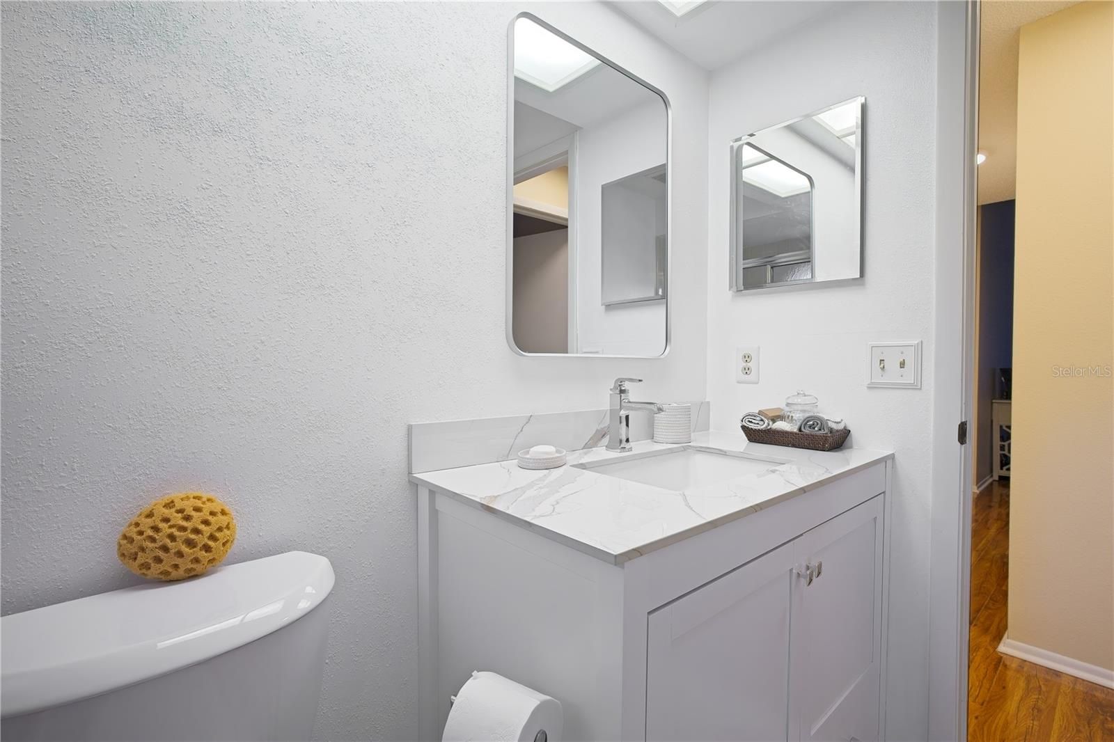 Find yourself in this bright and cheerful home, with a plethora of amenities, and a serene setting that will capture your heart. As you pull into your private driveway and park your car in your own garage, you are greeted by warm wood floors in your spacious living room. When you retreat to your welcoming bedroom, you can enjoy access to your tinted and newly tiled enclosed porch to decompress and enjoy the green views of the backyard. Your new kitchen is well equipped with stainless steel appliances, clean surfaces, and a cozy eating area. Luckily, you have a well spaced and laid out second bedroom, with a fully equipped bathroom across the way. Never again, will you have to worry about a community washer or dryer, since yours is in your private attached garaged, even with a convenient utility sink. Features include amazing floors, updated bathroom features, 2022 A/C installed, upgraded windows with easy tilt opening for cleaning, new carpets, a pull-down attic ladder, new ceramic tile and solar guard tinted enclosed porch, outdoor space and sitting area to grill, ability to rent, many storage spaces, and a security system. Your community features and amenities include a fitness center, pool, tennis court, bocce ball, shuffleboard, clubhouse, lake, activities, walking area, and include: cable, internet, trash, grounds keeping and upkeep. Enjoy quick access to restaurants, shopping centers, medical care, parks, and nature areas.