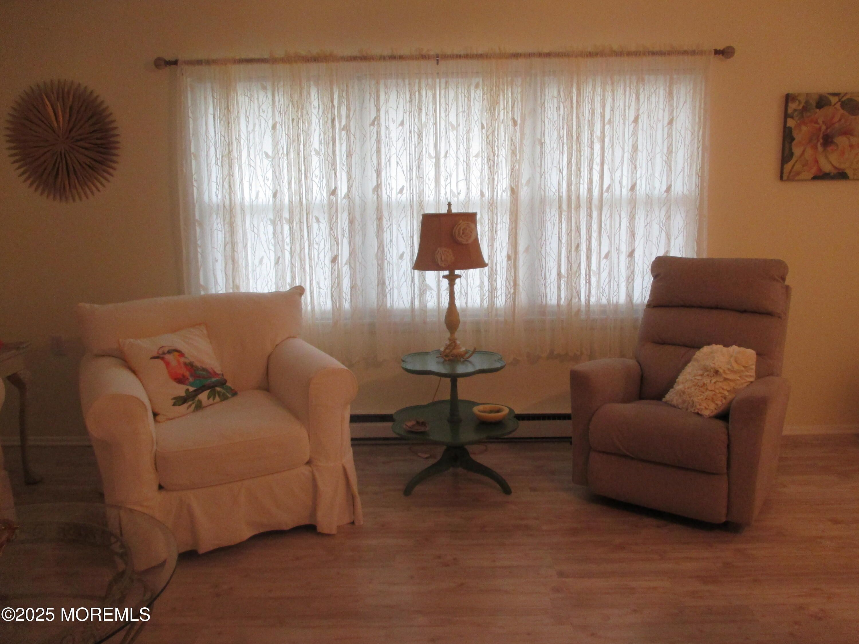 Move right in this well-kept Baronet. The front porch is ready for relaxing. The living room/dining is spacious perfect for dining and entertaining. The bath has a stall shower tub replacement, newer vanity and commode. Master bedroom is large and will acommadate queen or king size bed, dresser and bureau. Laundry includes washer and dryer with shelves for storage. The kitchen has glass top range, newer fridge and wall oven with counter, cabinets and storage closet. The a.c. has been updated along with thermostats and windows. Perfect!