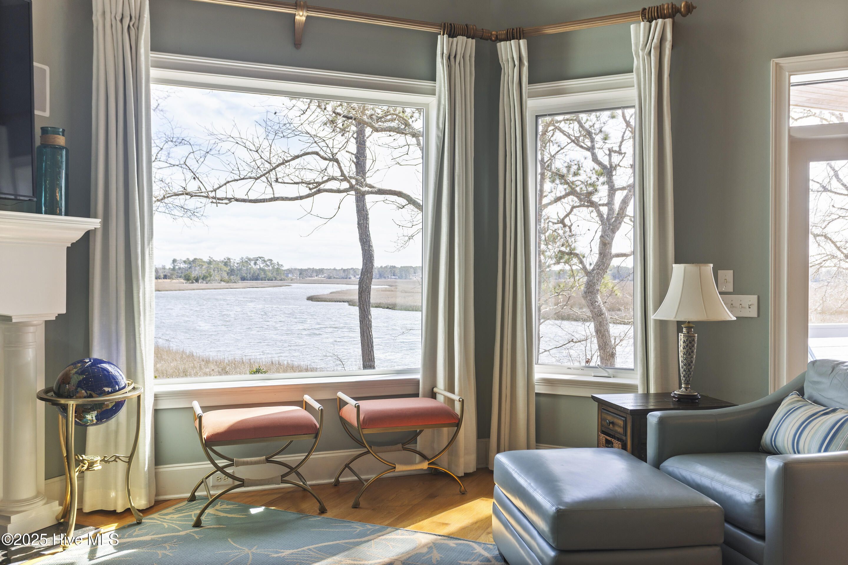 Welcome to this exquisite riverfront property, located in a golf course community with a beach house, tennis, pools, boat launch, marina and more! Nestled on a cul-de-sac, this spacious home offers over 4,000 htd sq ft of meticulously designed living space. Enjoy sweeping river and marsh views from every room that create an ever-changing backdrop of natural beauty. Step inside to a grand, open great room with soaring ceilings, cozy fireplace and wet bar, perfect for both relaxation and entertaining. An enclosed sunroom features floor-to-ceiling windows, allowing you to fully appreciate stunning water views while enjoying the comfort of an indoor setting. The chef's kitchen is a true masterpiece, boasting custom cabinetry, large breakfast bar and informal dining space. It is equipped with top-of-the-line appliances including a gas stovetop with a convenient pot filler, double oven and an etched glass pantry door for added charm. A formal dining room provides an elegant space for special occasions. The owner's suite is a sanctuary in itself, featuring a huge walk-in closet and spa-inspired bath that is the epitome of relaxation. Unwind in the whirlpool tub or indulge in the large tiled walk-in shower with multiple jets & handhelds. Upstairs, an additional living area awaits, complete with a kitchenette, 2 additional bedrooms & a versatile bonus room, offering space for guests and family. This home is packed with modern amenities, including remote-controlled hurricane shutters, Halo whole house water purifier, Navian tankless water heater and dehumidifier in the crawl space. The entire second floor was updated with luxurious LVT flooring in 2021. For car enthusiasts, a spacious 3-car garage provides ample storage & parking. Outside, enjoy the perfect balance of luxury & nature with a private boat dock and lift, ideal for riverfront living.