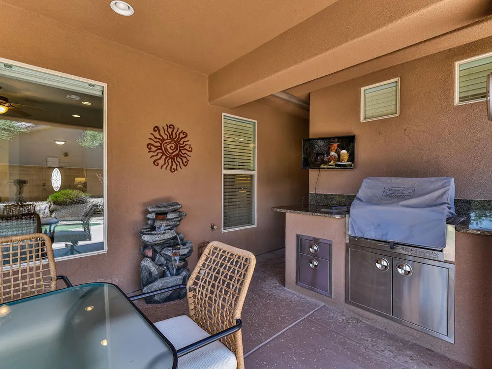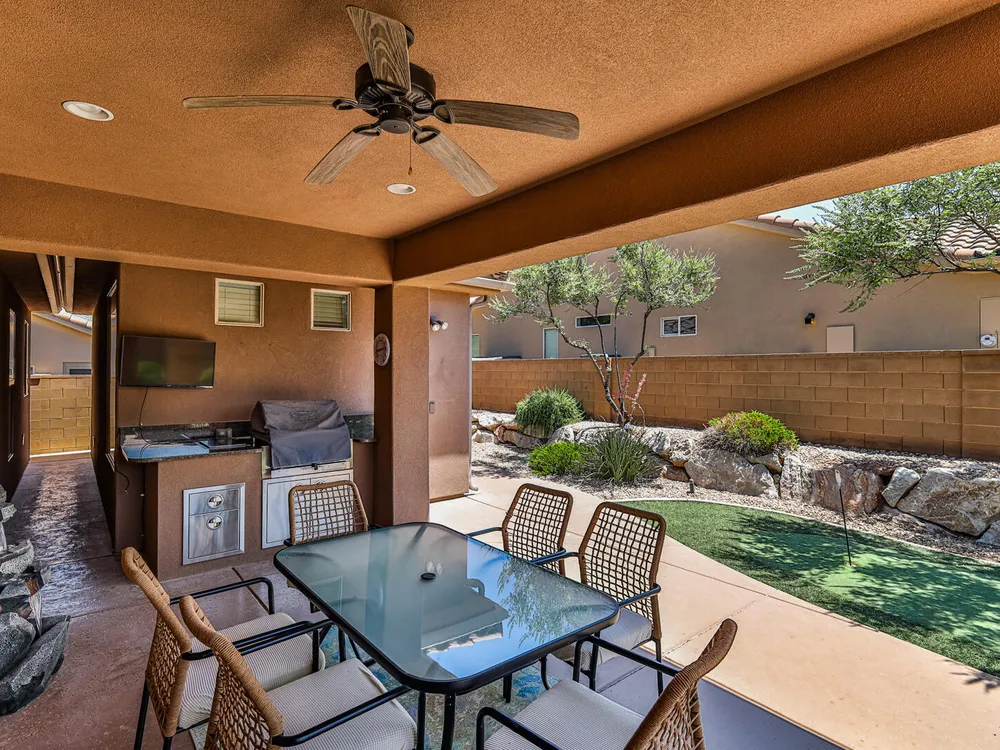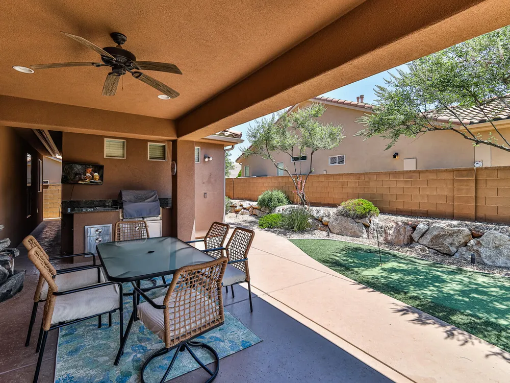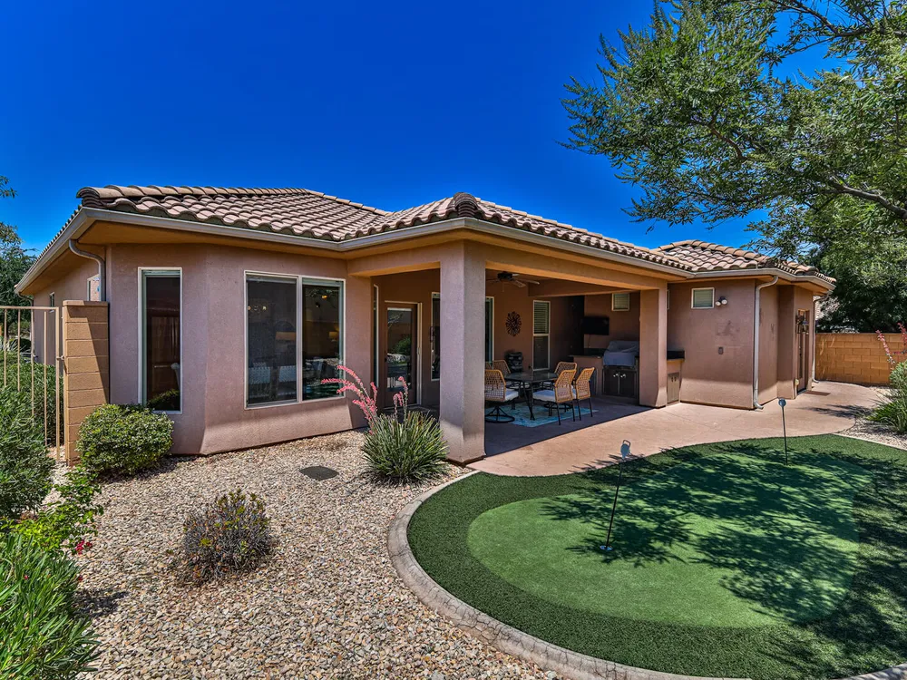 Rare Find in SunRiver! This exceptional home includes a private casita with its own exterior entrance—ideal for guests, a home office, or hobby space. Located on a quiet street in the highly desirable 55+ SunRiver community, the property features a fully fenced backyard with an outdoor kitchen, private putting green, and a covered patio—perfect for relaxing or entertaining. Inside, the open and bright floor plan is thoughtfully designed for comfort and easy living. Enjoy 300 days of sunshine and the vibrant, active lifestyle that makes SunRiver one of the area's most sought-after communities!