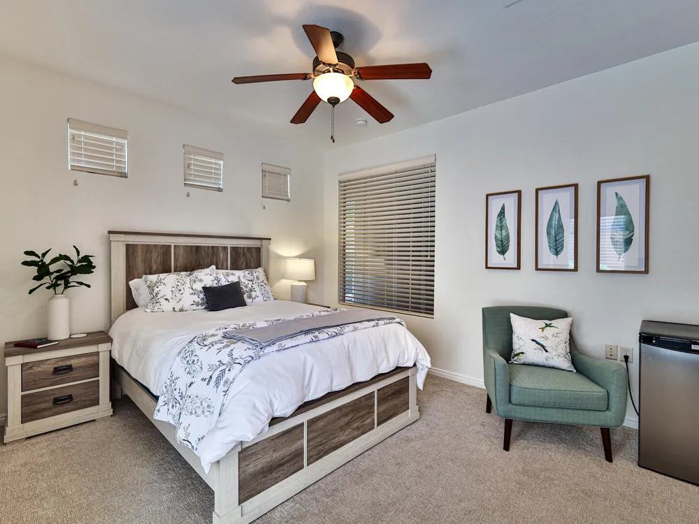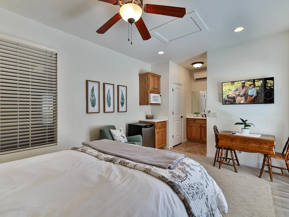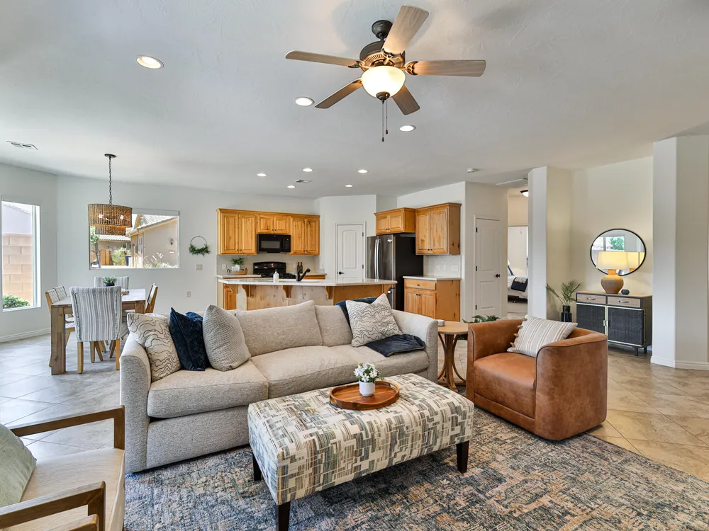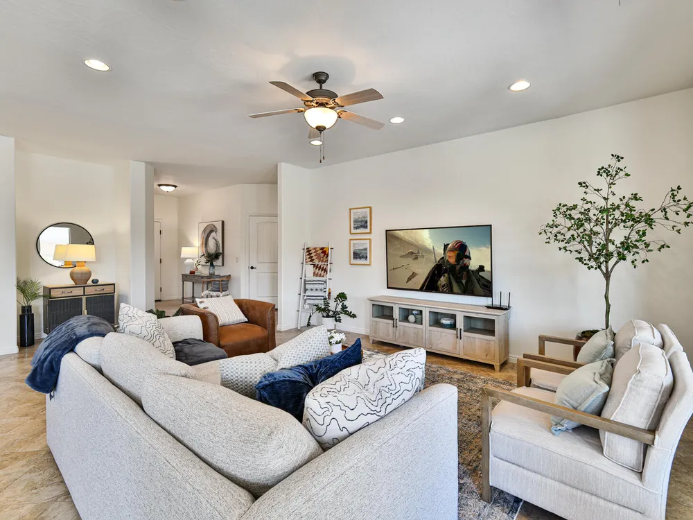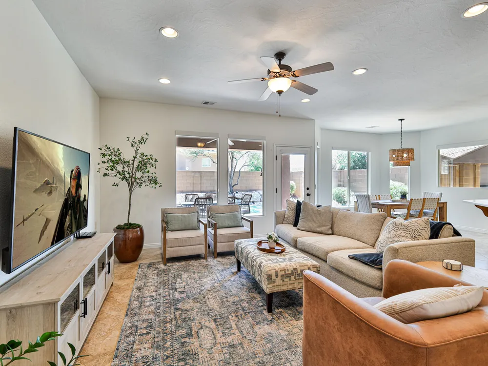 Rare Find in SunRiver! This exceptional home includes a private casita with its own exterior entrance—ideal for guests, a home office, or hobby space. Located on a quiet street in the highly desirable 55+ SunRiver community, the property features a fully fenced backyard with an outdoor kitchen, private putting green, and a covered patio—perfect for relaxing or entertaining. Inside, the open and bright floor plan is thoughtfully designed for comfort and easy living. Enjoy 300 days of sunshine and the vibrant, active lifestyle that makes SunRiver one of the area's most sought-after communities!