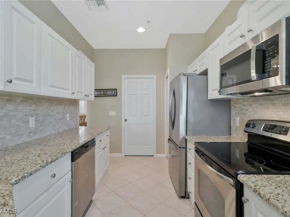 Welcome to your charming, well-appointed second-floor condo! Step inside to discover an updated kitchen complete with beautiful granite countertops and stainless steel appliances. You'll love the peaceful location with its private views, perfect for enjoying the beauty of nature. Imagine spending your days birdwatching over the stunning, unobstructed southwest-facing preserve and winding down in the evenings with breathtaking sunsets from your lanai. The Fiddler's Creek Club & Spa is just around the corner, offering a fantastic resort-style community that has it all! Enjoy the expansive clubhouse, award-winning golf, tennis courts, four refreshing pools, a fitness center with spa facilities, and two wonderful restaurants. There’s also a vibrant social calendar packed with activities, plus optional memberships for golf and beach clubs or marinas! This lovely, fully furnished Hawk's Nest condo is vacant and ready to show! If you’re searching for a cozy, lock-and-leave condo, this is the perfect place for you!