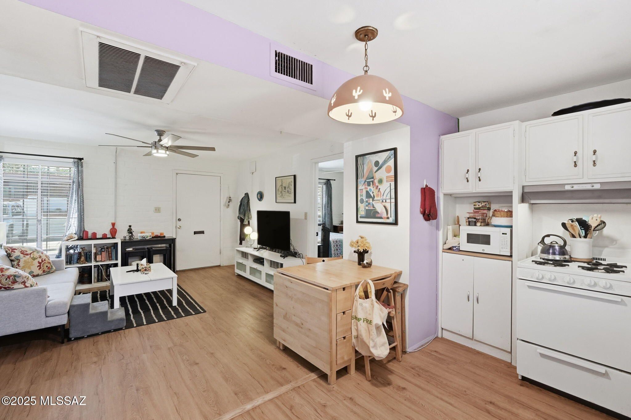 This 1 bedroom, 1 bath villa is situated between 2 HOA/COA parks on a quiet street with Designated parking space in front of Villa. Screened security front and back doors to allow air to flow through Villa. Front patio set stays. Newer quality blinds. Newer Washer in Villa stays. Some furniture available via SBOS; see inventory on MLS docs. Roof and HVAC new in 2024 are covered by HOA/COA. Exterior Maintenance, Water Heater & Pest Control are covered by HOA/COA. HOA/COA monthly dues inc. water sewer and trash. HOA/COA amenities inc. 2 heated pools and laundry facilities. Numerous amenities at the GVR facilities nearby. Golf courses are nearby. Farmers Market, Shopping, & Restaurants are within walking distance.